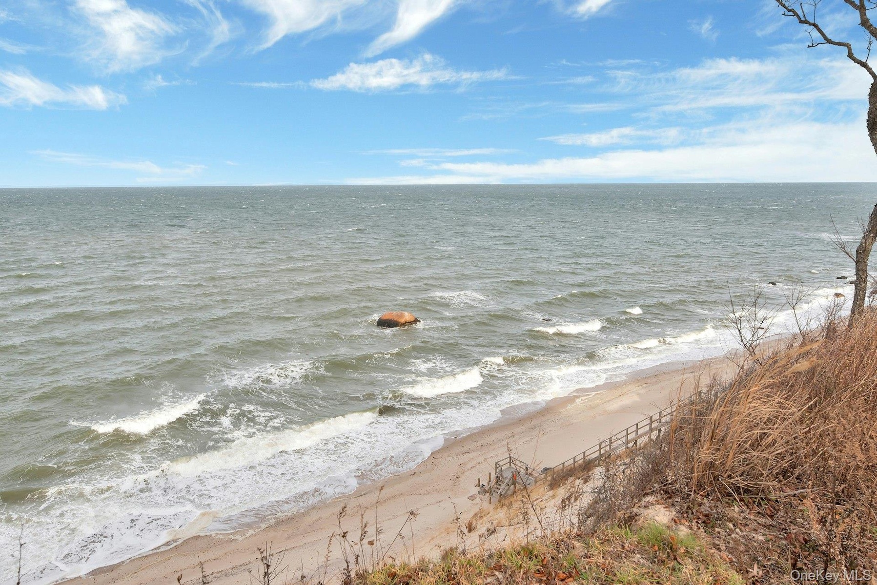Outdoor living is enhanced by a beautiful mahogany waterside deck and the home’s incredible vantage point over the Long Island Sound. The property enjoys membership in Baiting Hollow Estates, which provides a gated and maintained staircase to 150 feet of private Sound beach shared by only fourteen homes. HOA dues are just $750 per year and include beach access, gate and lock maintenance, and upkeep of the community circles.