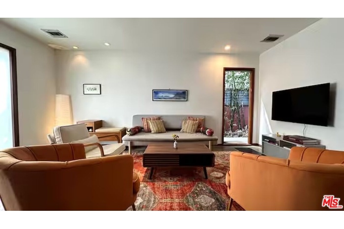 Enchanting organic modern artist's retreat in the coveted "Woods" neighborhood of Mar Vista. This creative mini-compound includes an upgraded 3 bed/2 bath front house plus a detached studio/studio/office/4th bedroom with bath. Available fully furnished (or not), this property features a delightful open plan front house with spacious living, dining & kitchen space with polished concrete floors and vaulted ceilings w/vintage beams reclaimed from the old Ocean Park pier. Cook's kitchen w/sleek concrete countertops, breakfast bar, Wolf & Bosch appliances. Inviting dining area surrounded by lush garden windows. Honey bamboo floors in master & 2 addtl bedrooms. Generous master suite overlooking the garden w/spa tub, skylight & walk in closet. Artistic light fixtures & master bath glass sink, creative details throughout. French doors from master to enchanting entertainer's backyard w/outdoor Moroccan Room/lanai, hot tub & peaceful sitting areas. Fabulous bonus guest studio/office/w/bath, high ceilings, skylight. Mature citrus & fruit trees, palms & a canopy of green creates a private oasis just over the Venice border in this desirable pocket of Mar Vista. Perfect for families, artists & soulful types who appreciate organic architecture, design & lush living near the beach. Tesla charger too! Move in ready fully furnished or negotiable. Avail Feb 1st or possibly sooner.