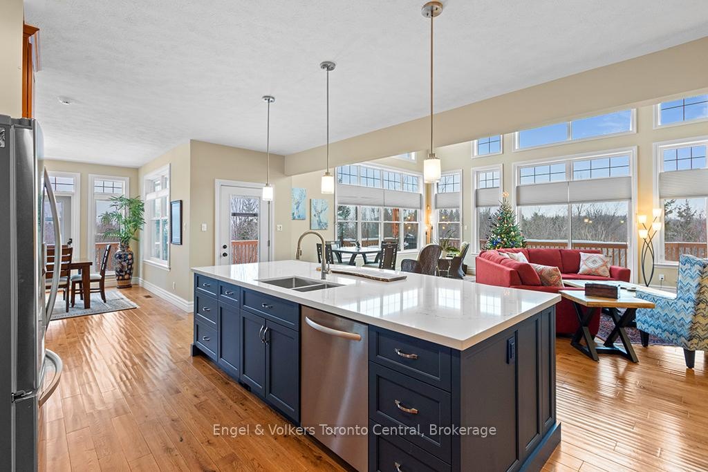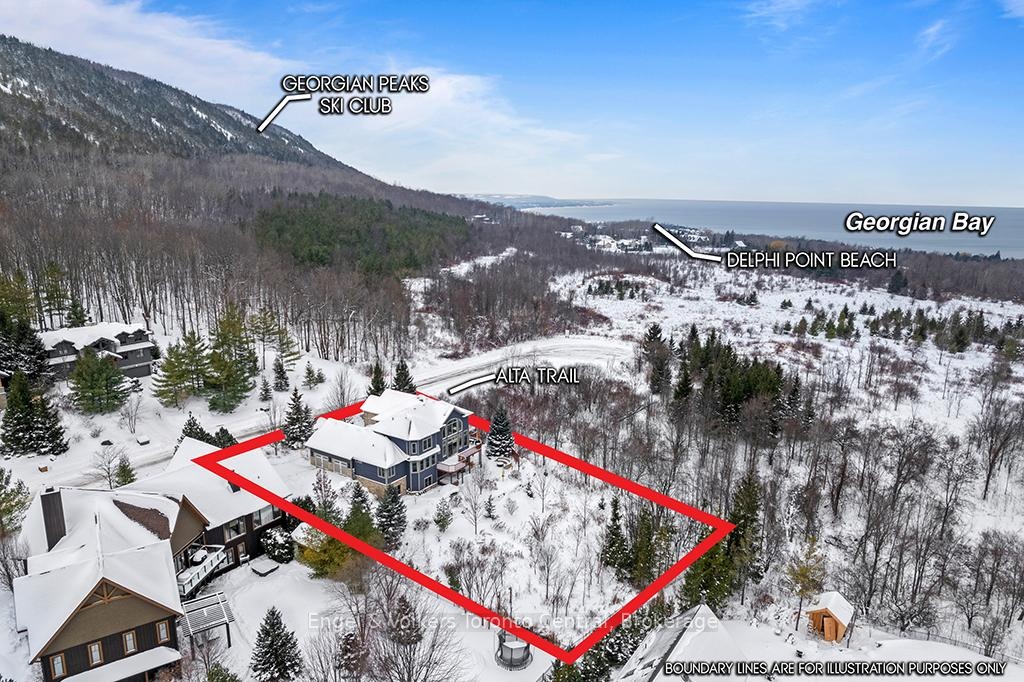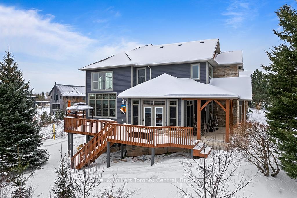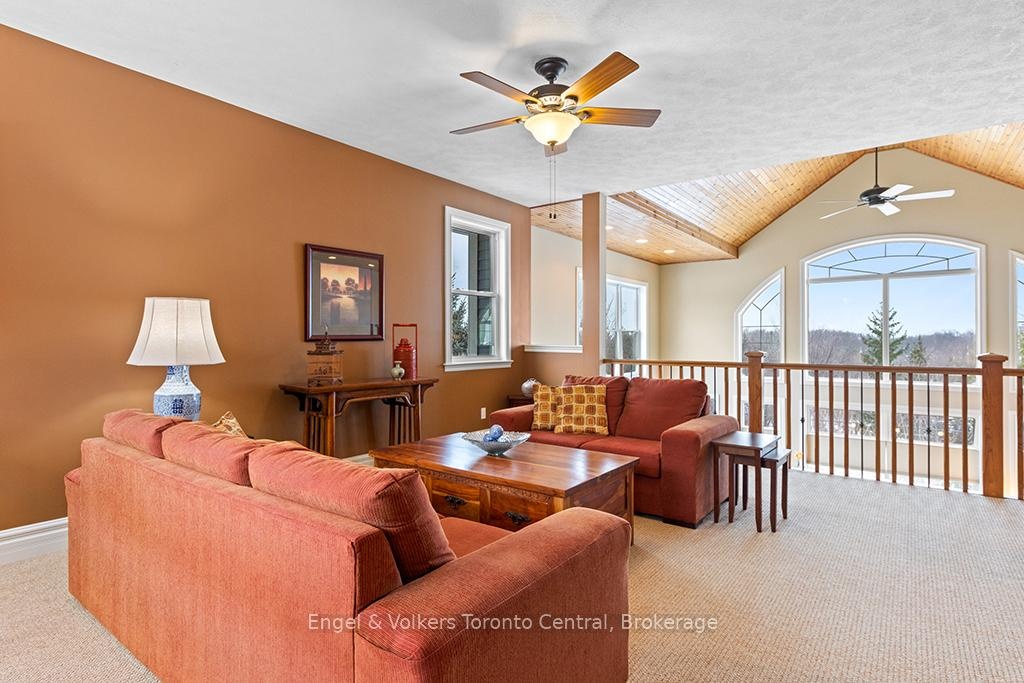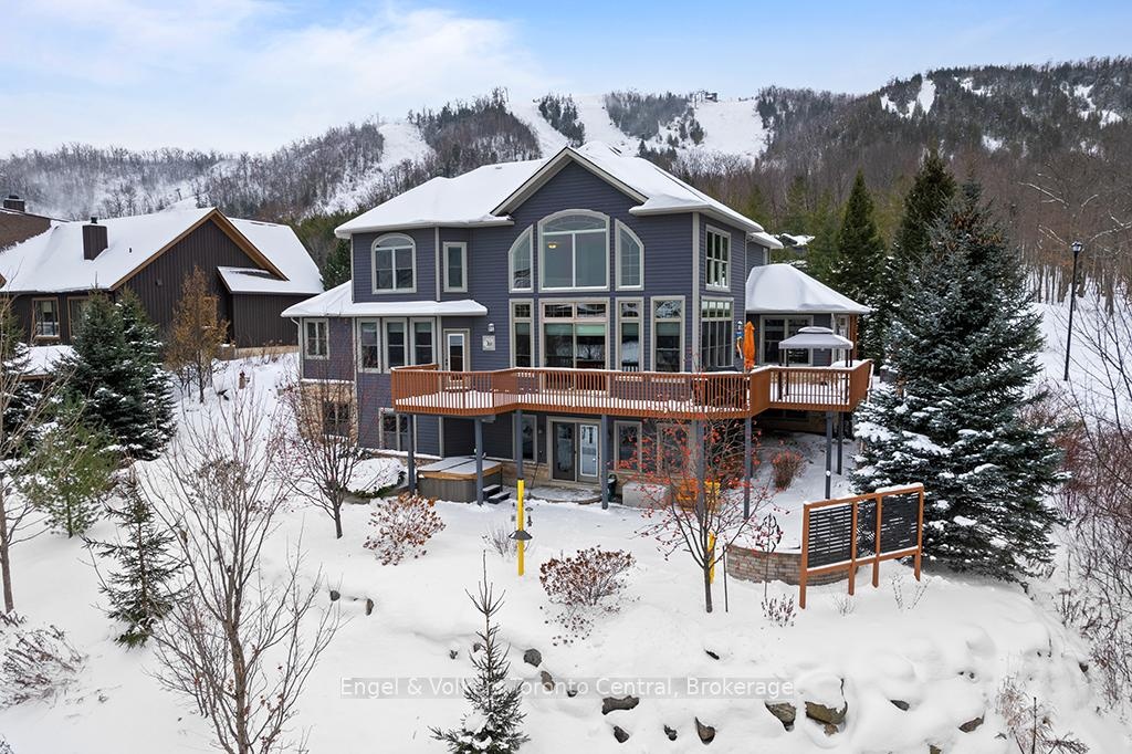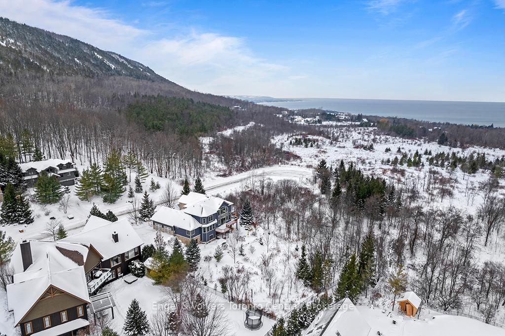 Situated on an expansive 0.61-acre ravine lot adjacent to a green belt for added privacy,with convenient access to the Alpine Ski Club and a network of hiking trails, thiscustom-built legacy property has over 5000 sq ft of finished living space designed for to deliver an exceptional experience of nature, privacy, and year-round recreation. This luxury home features an open-concept layout that captures natural light and beautiful views of the escarpment through premium oversized windows and a great room that transitions seamlessly to a wraparound deck for entertaining or relaxing. The main floor highlights a spacious great room and kitchen for large group gatherings, a separate dining room, and a dedicated office for remote work or study. It includes a generous master bedroom with a large ensuite and walk-in closet. The second-storey loft offers a panoramic view of the bay area and an added setting for family leisure. The walk-out lower level is designed with options for media, fitness, and games, as well as comfortable accommodations for guests or family. It features high ceilings, directaccess to the grounds, a generous media room, and space for a second office. This level includes a dry sauna and access to the hot tub for integrated wellness after a day on the golf course, trails or the hills. The oversized garage is built for an active lifestyle,offering generous space for vehicles and significant storage for seasonal recreational equipment. This property represents a rare combination of scale, location, and year-round utility in a highly sought-after corridor just minutes from the shores of Georgian Bay, Blue Mountain Village, and world-renowned ski resorts. Potential turn-key property for immediate occupation.