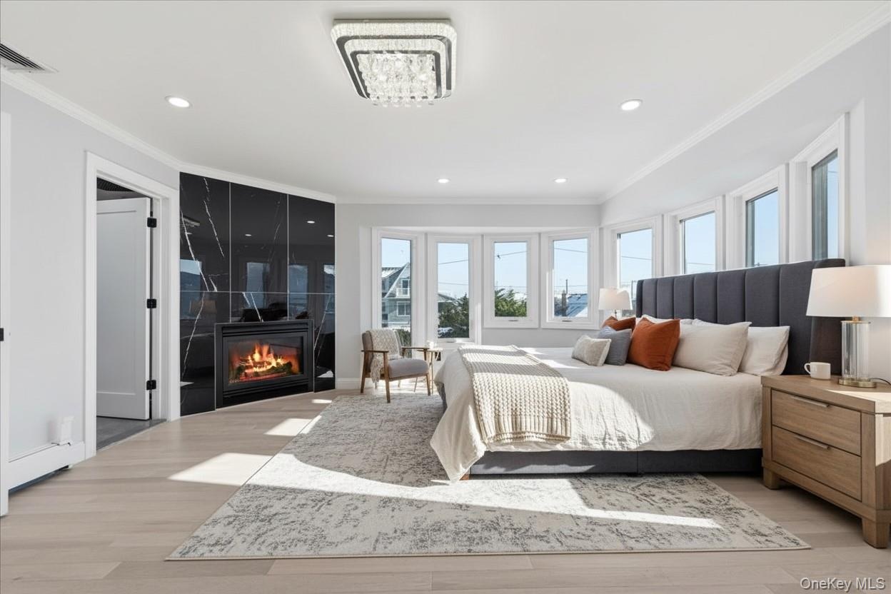 A dramatic, timeless staircase greets you, leading to a primary suite with showcase windows and a gas fireplace. The extraordinary primary bath includes a soaking Jacuzzi tub and dual walk-in closets. Four additional spacious bedrooms share a beautiful new “Jack and Jill” bathroom.