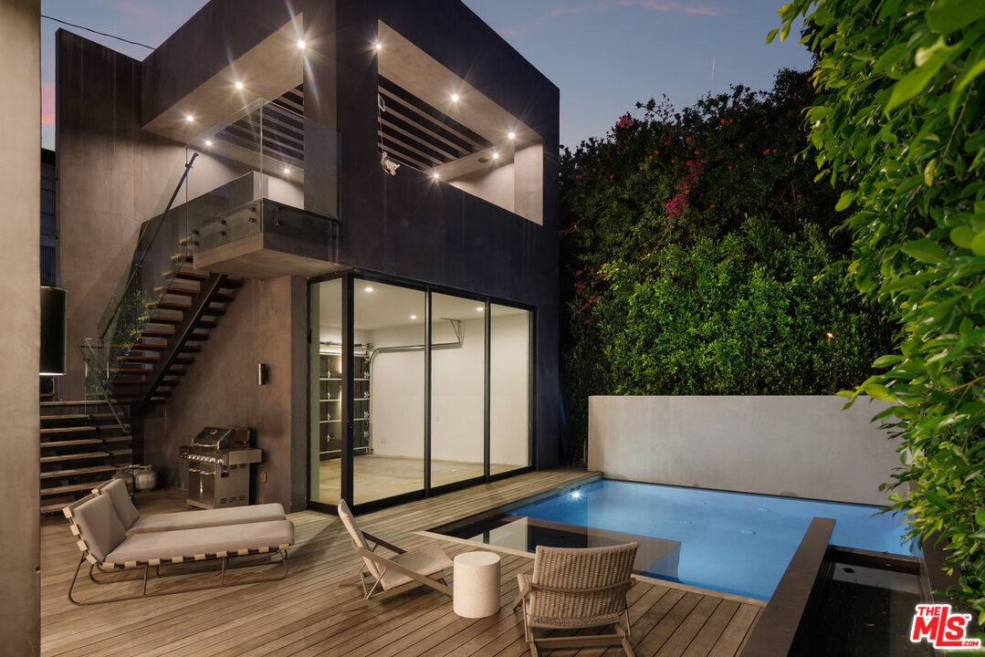 An architecturally striking modern compound set on an expansive private lot in prime Beverly Grove, offered fully furnished and currently leased at $35,000 per month, providing immediate in-place income. Designed for elevated indoor-outdoor living, this resort-style contemporary smart home features an open floor plan, wide-plank oak flooring, and floor-to-ceiling glass that delivers strong natural light and enduring tenant appeal.The main level is optimized for both functionality and entertaining, anchored by a fire-sided living area, formal dining space, and a chef's kitchen with premium stainless-steel appliances that opens directly to curated outdoor entertaining areas. Gated and private, the backyard retreat includes a custom pool and spa with multiple lounge areas, enhancing rental desirability and long-term value. Floating wood staircases lead to the upper level, where the primary suite offers a fireplace, floor-to-ceiling windows, private patio, and spa-like bath. Two additional en-suite bedrooms and a dedicated laundry room complete the upper level.A rooftop deck with panoramic city views, dining and lounge areas, and a wet bar further elevates the property's income profile and competitive positioning within the luxury rental market. Ideally located moments from The Grove, Beverly Center, world-class dining, shopping, and nightlife, with convenient access to the Sunset Strip and major freeways, this asset represents a rare opportunity to acquire a high-quality, stabilized luxury rental in one of Los Angeles' most consistently high-demand neighborhoods.