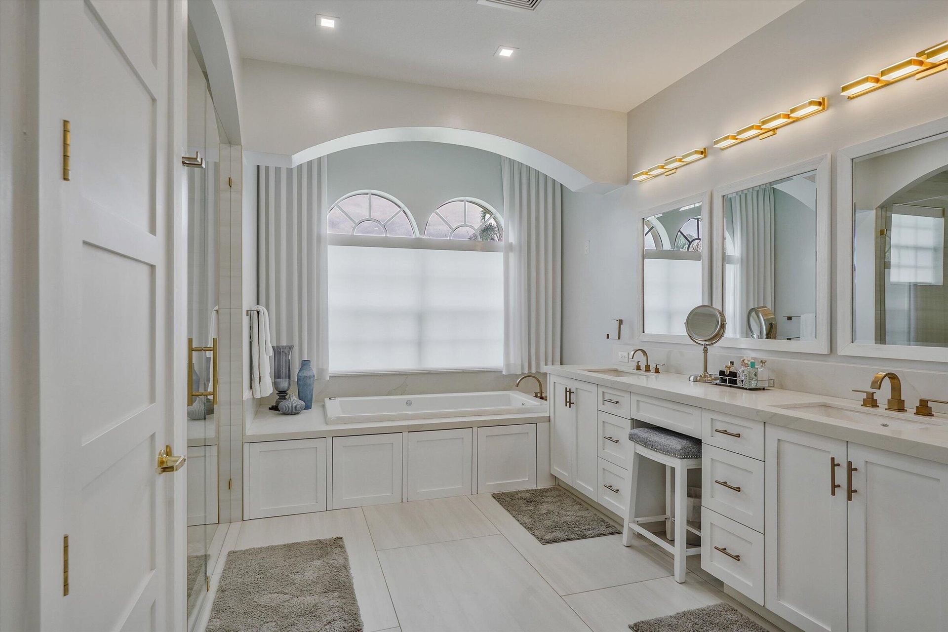 Luxury 5-bed 3-bath oasis pool home can be rented for season or year round fully furnished/turnkey. Gorgeous white kitchen with double ovens, decorative hood with gold fixtures, pot filler, coffee bar, wine fridge, designer countertops and more. Private saltwater beach entrance pool on a tranquil private preserve with screened in outdoor living and dining. Spacious bedrooms, one converted to office with built-in desks. Spa-like master bath with huge shower and tub. AC in garage. Navy grasscloth wallpaper in family room, tastefully decorated with state-of-the-art community amenities, this home is situated within proximity to equestrian venues and beaches. Includes Wi-Fi, Cable and ADT security.