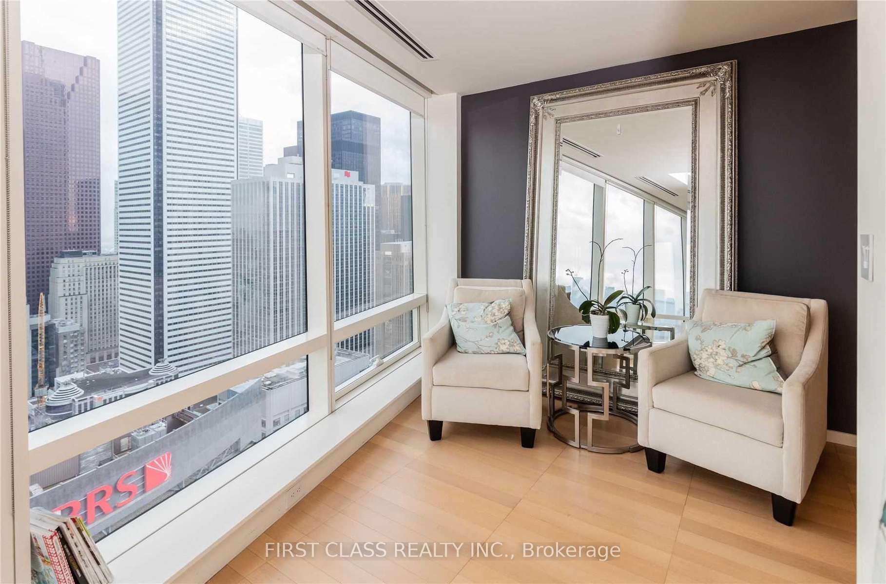 Fantastic clear views with luxury furniture ready for moving-in! See this spectacular 2bedroom+family room n/e corner unit in Shangri-La Toronto. This unit features hardwood floors, an amazing large kitchen island perfect to entertain. A large master suite with 5pc ensuite and oversized walk-in closet. Get cozy with the large built in fireplace or sit out on the balcony and enjoy the sunset & views. Great location close to everything!