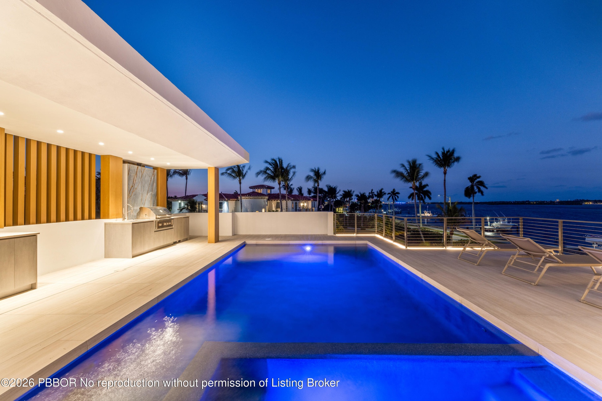 THE ONLY CUSTOM POLTRONA FRAU FURNISHED HOME IN PALM BEACH COUNTY - 2 KITCHENS - WINE ROOM - ALL CLOSETS AND MORE ALL PF...AFFINITY ARCH - SEAGATE GC - Perched on the Intracoastal Waterway overlooking PBI'S mega mansions, this BESPOKE waterfront new construction is one of the most exceptional homes ever brought to market in West Palm Beach. Ideally located 5 MIN. to PBI and PBI airport, the residence offers approx. 13,370 SF of full-blown luxury. Highlights include a second-story pool and spa with 180-degree water views, outdoor cocktail bar, multiple outdoor cooking areas, private cinema, spa, and expansive indoor-outdoor living. Every room opens to breathtaking water views. 9 FULL BR - 5-7 BR, A 100' deep-water dock accommodates large yachts, creating a next-level waterfront home.