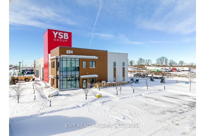 This pristine, 2024-built 15,000 sq. ft. industrial facility offers a rare "two-in-one" design, providing unmatched versatility for investors or owner-users seeking a premium corporate headquarters with high-yield potential. Strategically located with immediate access to the 417 Highway, the property features two independent industrial wings, each paired with sophisticated two-storey office suites comprising a combined total of 13 private offices, two grand boardrooms, two spacious lunch/break rooms and modern staff amenities. The industrial components boast a 24ft clear height, reinforced by a robust 400amp/600V power supply and natural gas heating. Operational efficiency is at the forefront, with one side offering six 12'x10' grade-level doors and the other featuring three oversized 14'x12' bays, supplemented by loft storage and dedicated in-shop offices. Complete with expansive outdoor acreage for machinery, ample paved parking, and a polished professional aesthetic, this site is the definitive choice for logistics, manufacturing, or multi-tenant investment.