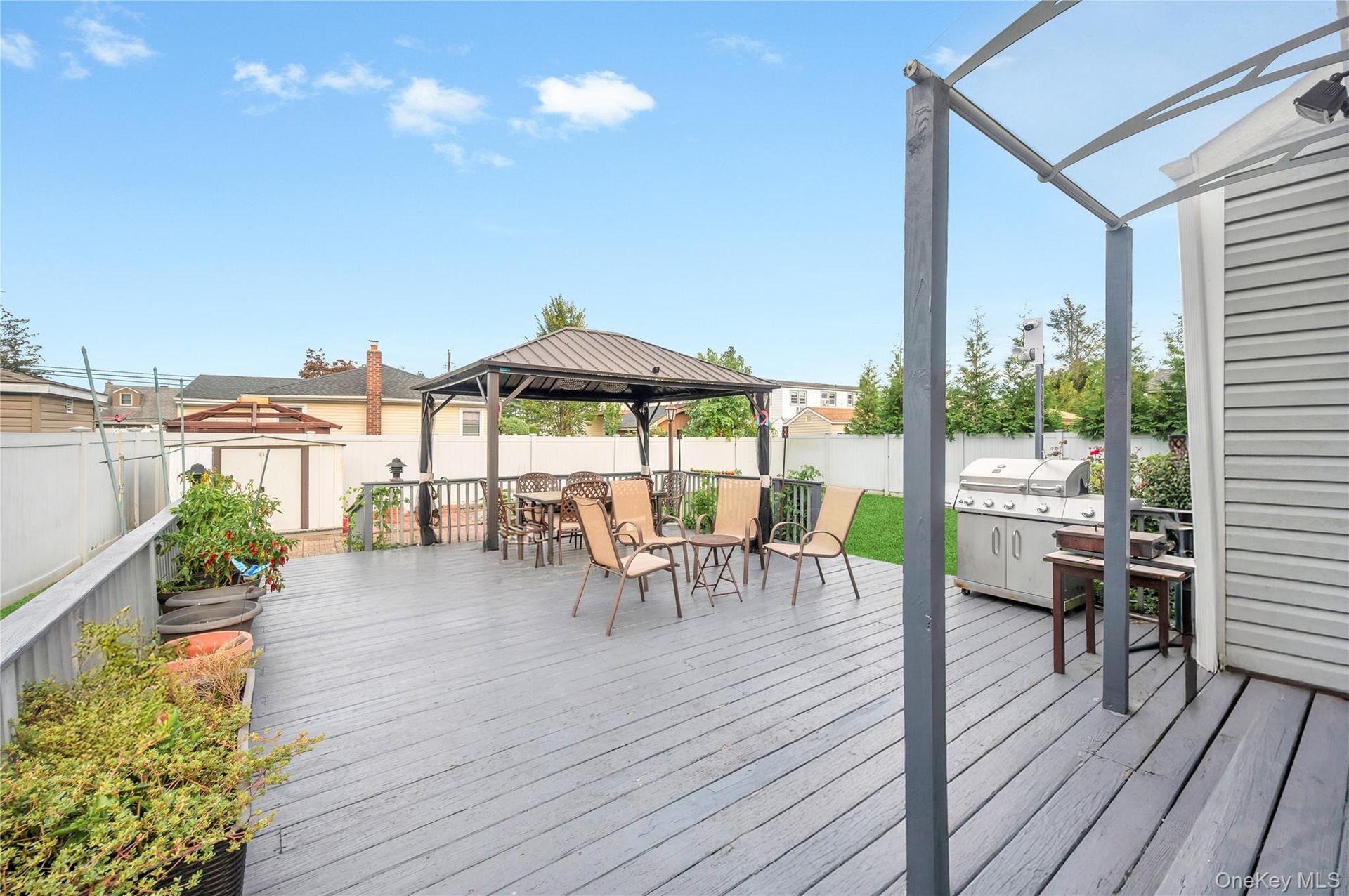 Step into this Beautiful Expanded Cape in the heart of Bethpage, boasting 3 spacious bedrooms, 3 full bathrooms, and a fully finished basement with a private outside entrance. This inviting residence features a sun-filled living room with gleaming hardwood floors, a formal dining area, and an updated chef’s kitchen with granite countertops, custom cabinetry, and an oversized center island—perfect for both everyday living and entertaining guests. The home’s versatile layout includes generously sized bedrooms, a flexible home office, and tastefully updated bathrooms designed for modern comfort. The fully finished basement provides valuable additional living space, ideal for a media room, playroom, or private guest suite. Step outside to your own backyard retreat, complete with a large deck and plenty of space for gatherings or quiet relaxation. With its classic curb appeal, functional design, and prime Bethpage location, this move-in-ready home blends charm, comfort, and convenience into one exceptional opportunity.