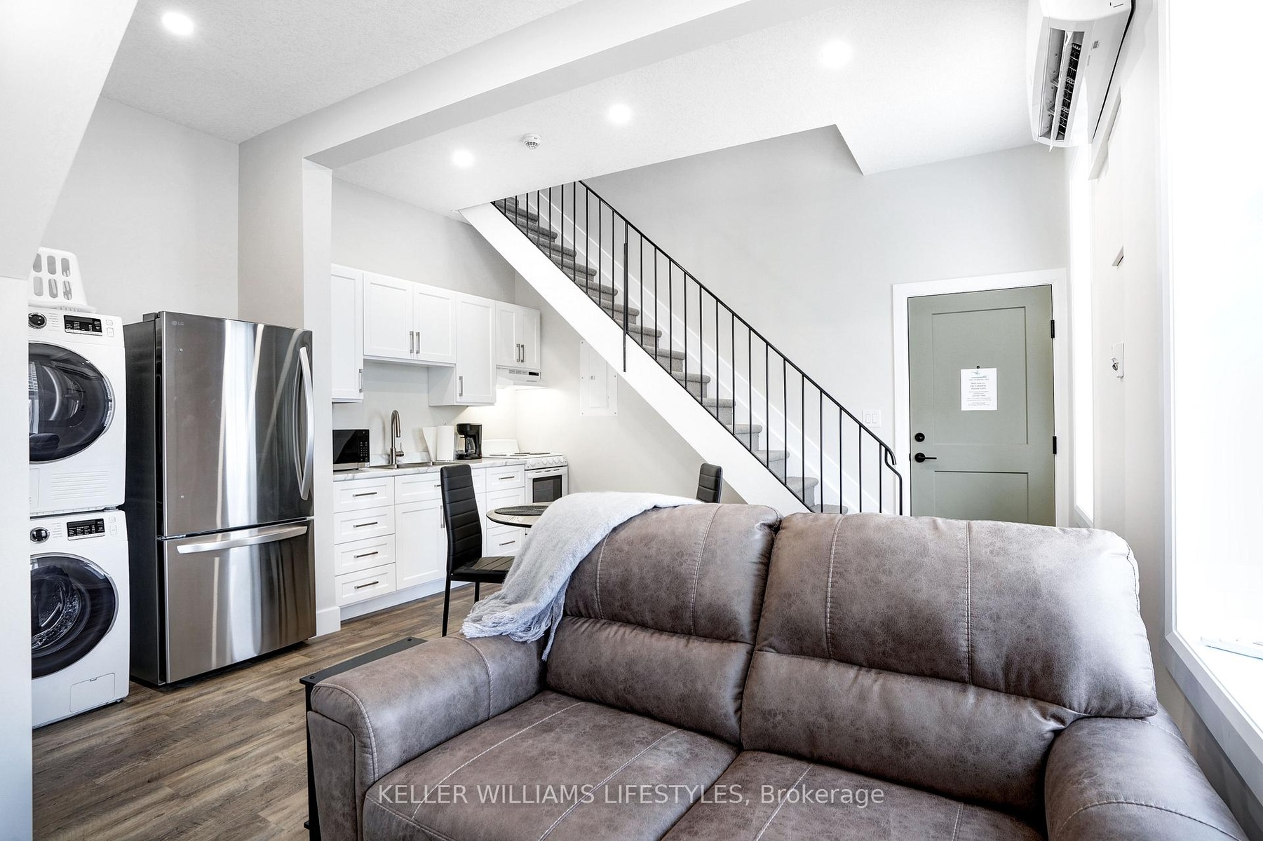Welcome to Unit 10, a fully furnished 1-bedroom suite offering premium, all-inclusive living in a modern loft-style building located in the heart of downtown St. Thomas. Thoughtfully designed for comfort and convenience, this spacious unit features a contemporary open-concept layout, ensuite laundry, and stylish furnishings throughout, creating a true turnkey rental opportunity ideal for professionals, corporate tenants, or those seeking a high-end, move-in-ready home.This suite is fully equipped with modern furniture, smart TV, complete kitchenware, linens, and décor - simply bring your suitcase. Rent includes all utilities and high-speed internet, along with central air conditioning, efficient electric induction heating, and a private hot water tank for added comfort and reliability. The building offers a unique lifestyle setting with a commercial golf store and indoor golf simulator located on the main floor, and is walkable to shops, restaurants, parks, and transit. Unit 10 is one of several luxury furnished suites available in the building, with additional 2-bedroom units currently offered at varying price points. Parking may be available for an additional monthly fee. A rare opportunity for fully furnished, all-inclusive living in a prime downtown St. Thomas location.