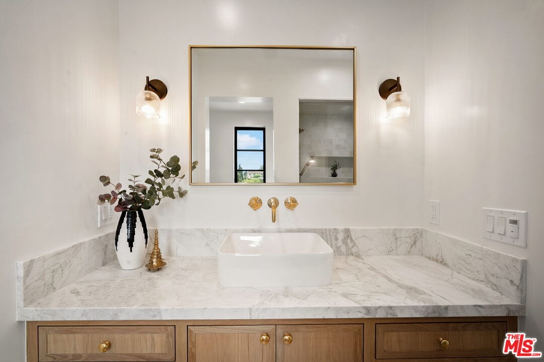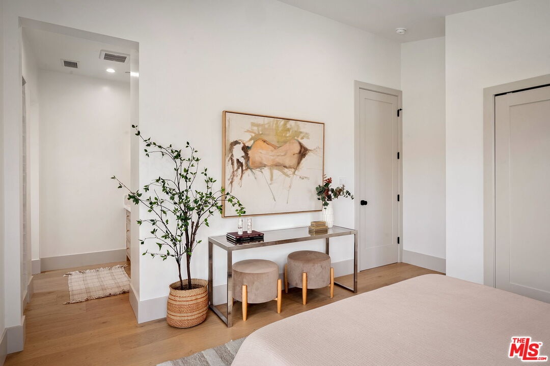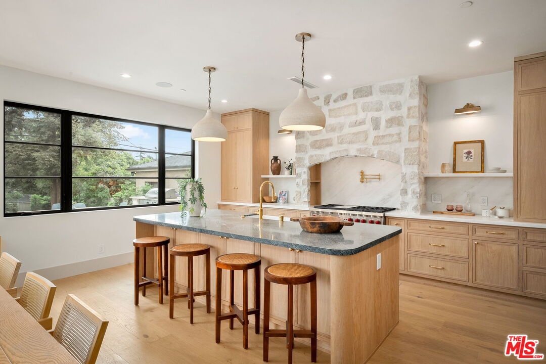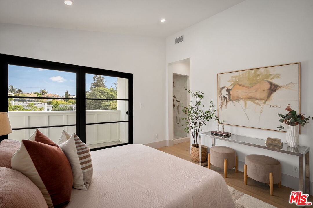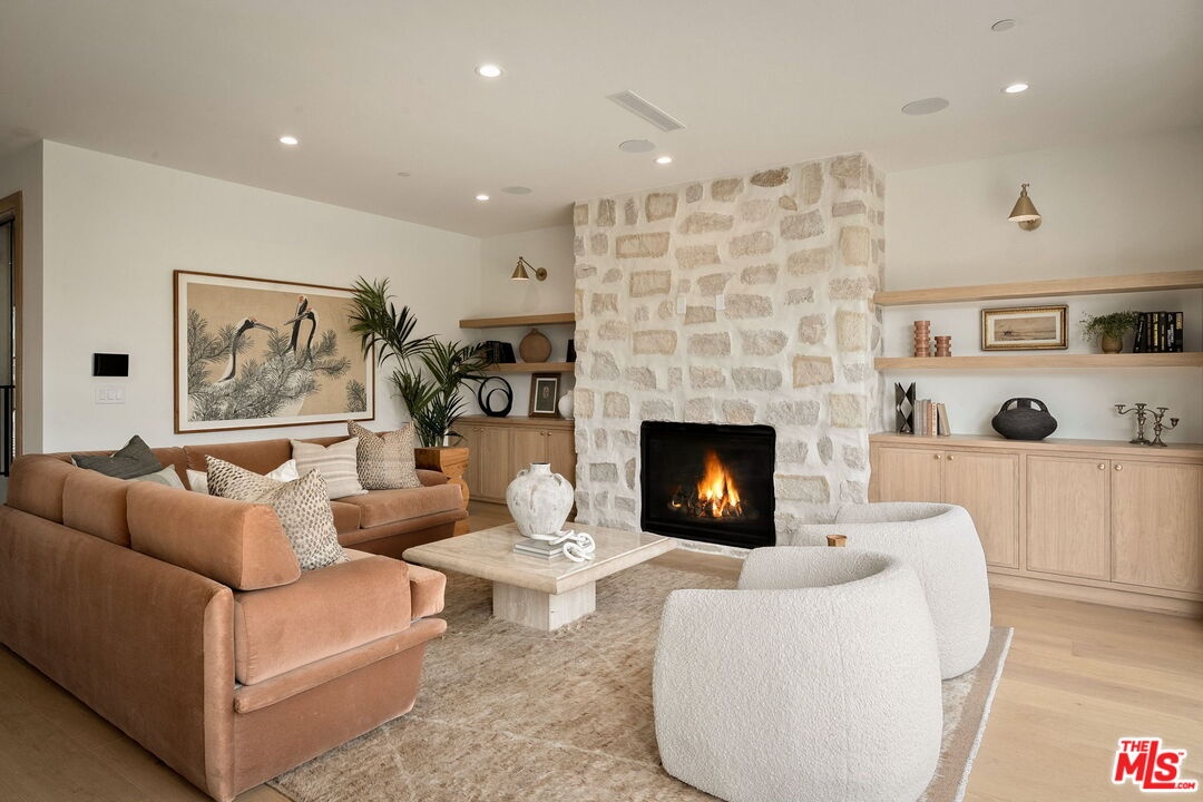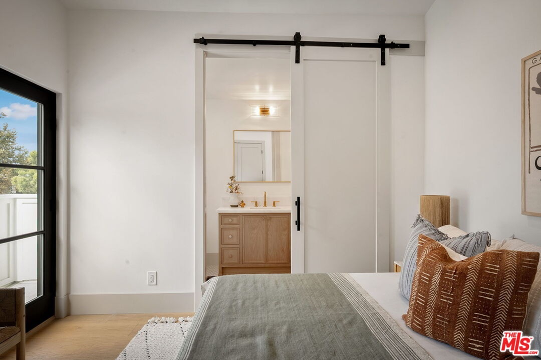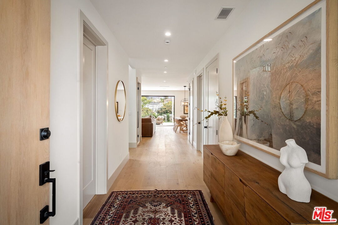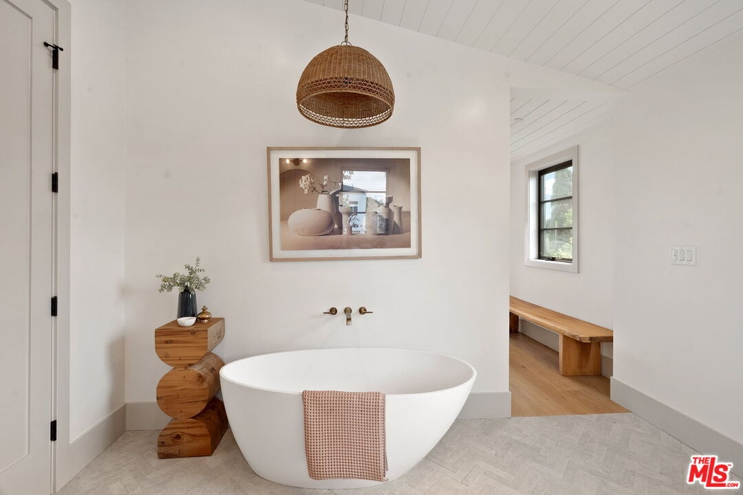 Presenting 3104 Kelton Avenue, a stunning contemporary farmhouse that blends bespoke design with modern luxury in the heart of Westside Village. From the moment you arrive, you're greeted by captivating curb appeal - drought-tolerant landscaping, a custom white oak front door, and a matching white oak garage door that set the tone for the refined craftsmanship found within. Inside, the home's open-concept layout showcases a seamless flow between the chef's kitchen, dining, and living areas. The kitchen is a true showpiece with marble countertops, a soapstone island, Wolf range, Sub-Zero refrigerator, custom walk-in wine room, and a stunning curved white oak island with marble shelving. An adjacent secondary kitchen/pantry adds both function and flexibility. The inviting living room features a stone fireplace, built-ins, and La Cantina accordion doors that open completely to create a true indoor-outdoor living experience - perfect for entertaining. Upstairs, the spacious primary suite offers a private sanctuary with vaulted ceilings, fireplace, balcony, and a custom white oak walk-in closet. The spa-like en suite bath features dual sinks, a makeup vanity, glass shower, and soaker tub. Every detail has been thoughtfully curated - from white oak hardwood floors and Milgard windows to unlacquered brass accents, integrated speakers, security cameras, and fire sprinklers throughout. Well-appointed guest rooms and beautifully designed bathrooms complement the home's refined aesthetic, while a laundry room with sink and built-in cabinetry provides everyday convenience. Outside, an enchanting yard awaits with a large patio ideal for al fresco dining, a built-in BBQ, and grassy lawn. Ideally located just moments from top shopping, dining, and entertainment on the Westside, this home perfectly embodies elevated California living.