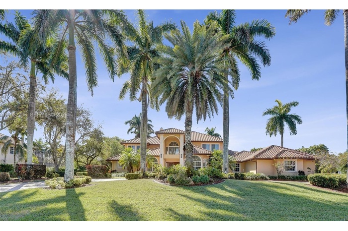 Located in the prestigious guard gated Windmill Lake Estates of Weston, this custom two story estate offers timeless elegance and privacy on a one acre homesite. Introduced by a grand circular driveway, the home features a soaring foyer with sweeping staircase, elegant formal living and dining rooms, and a spacious family room with fireplace and wet bar. The well appointed kitchen opens to a billiard/game room, ideal for entertaining or flexible use. The first floor primary suite offers a spa like bath and custom closets, along with an office/den and guest suite. Upstairs includes loft areas, four additional bedrooms and two baths. Enjoy a resort-style patio with pool, spa, and water views. Completed by a three car garage, 2020 roof, and access to a private community tennis court, this is a rare opportunity in one of Weston’s most exclusive communities.