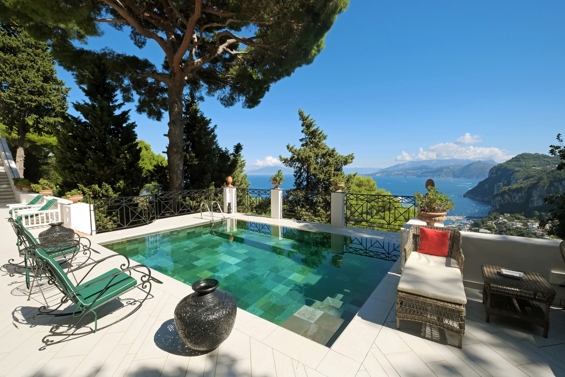 Located in the heart of Capri, Capri – Cliffside Villa – 01 is a refined private residence set on an entire section of hillside overlooking the Gulf of Sorrento, with open views across Mount Vesuvius, the Bay of Naples and the Amalfi Coast.