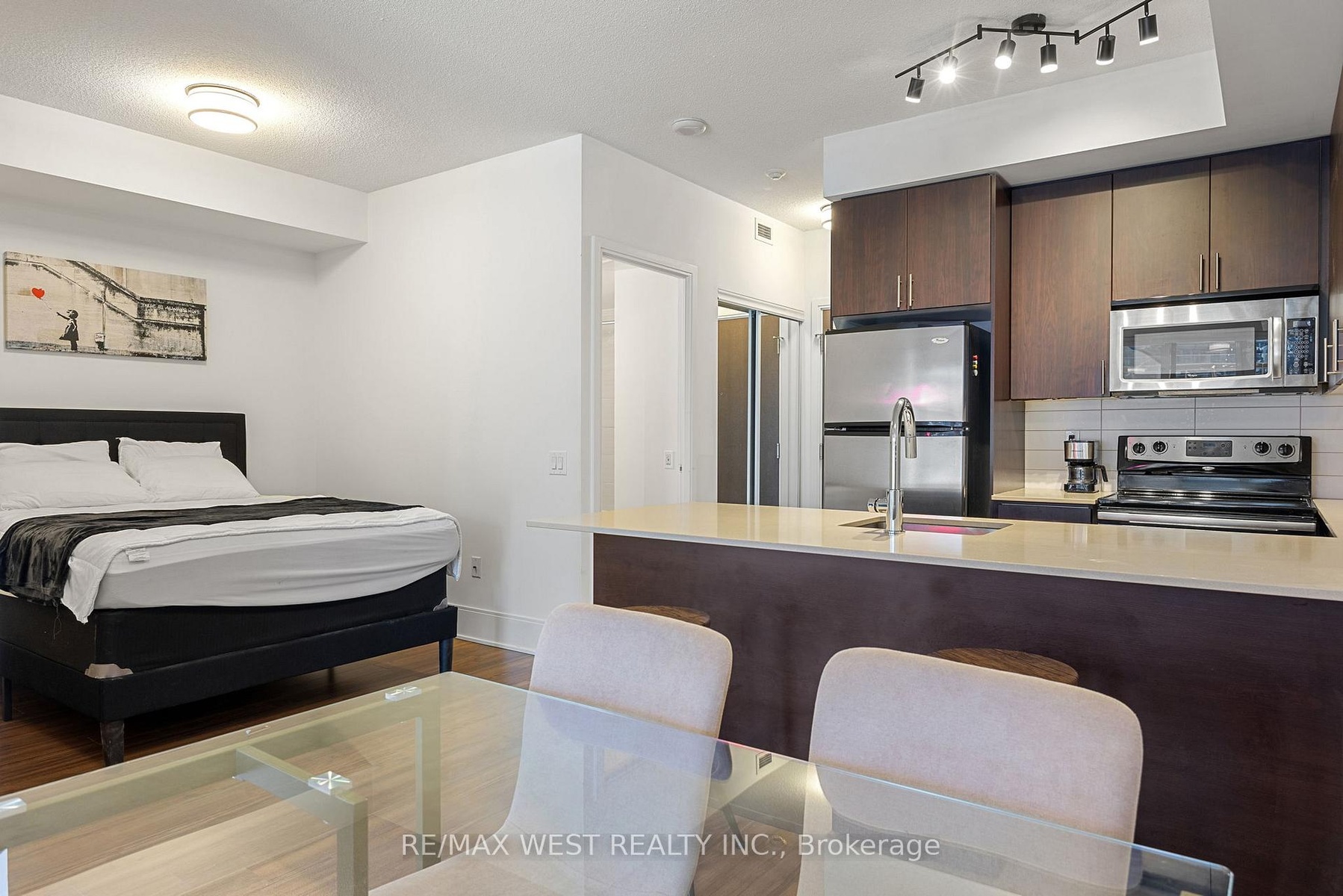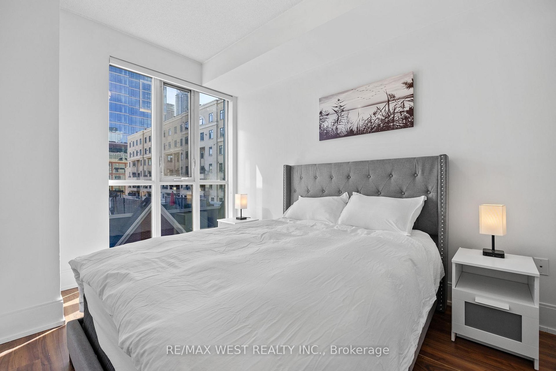 Best lease opputunity for a fully furnished 1 bedroom plus den in a Tridel building, offers approximately 645 sq ft of efficient, open-concept living. Floor-to-ceiling windows provide abundant natural light throughout, including the primary bedroom with excellent storage. The sleek, functional kitchen offers ample counter space for both daily living and entertaining. East-facing balcony overlooks a quiet courtyard. Steps to King West dining, cafés, and nightlife, with easy access to Stackt Market, The Well, transit, parks, and everyday amenities.
