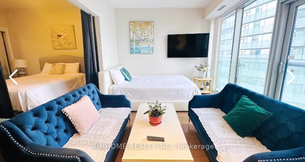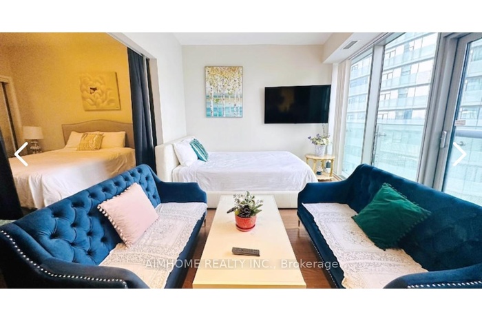 Fully furnished Suite, 1+ Den. Hardwood floor throughout. just carry your bag and move in! Waterfront Community ICE Condo with PATH System Connection . Approx. 595Sq. Ft. Condo Apt. 9' Ceiling, Gorgeous Lake View. Den Can Be used as A Second Bedroom Easily WITH PRIVACY (curtains provided). Upgraded Hardwood Floors Throughout. Direct underground access to Financial Corridor, Union Station, Maple Leaf Square. Longo Grocery Store, L.C.B.O. & Hotel. 24 Hr Concierge.Parking is extra $200 per month.