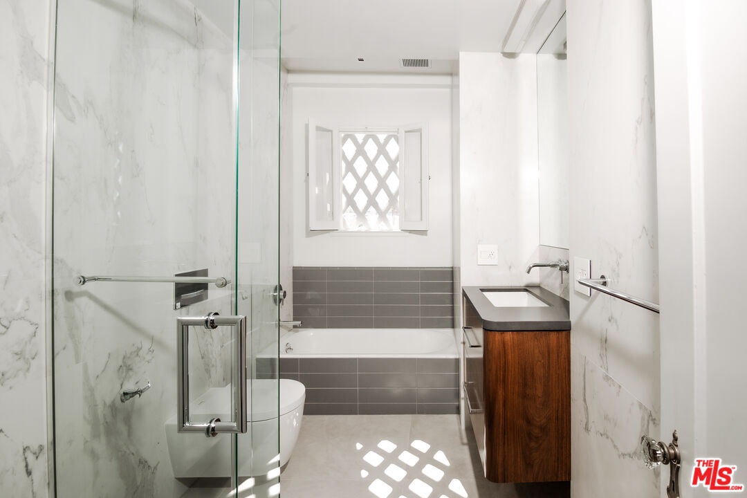 After nearly a century of standing proudly in the heart of West Hollywood, the breathtaking El Mirador residential building has opened its doors and is eagerly awaiting new tenants. Over a decade of delicate, thoughtful restoration, repair, and renovation that has gone into this true masterpiece: floorboards revarnished and replaced piece by piece into their original place, coats of paint and primer gently peeled from the hand-carved entry archways, custom imported rugs lining its great halls, and any salvageable bit of this building's rich character maintained and fought for, remaining proudly in tact; the devil is in the details. This 1,350 square foot unit nestled between Fountain and Sunset in a quiet pocket of West Hollywood, features two bedrooms and one full bathroom. This stunning home comes equipped with state-of-the-art appliances surrounded by sleek Cambria stone and a spacious eat in kitchen. Retractable screens hide within the windowpanes so as not to disturb the view, which spills sunlight in from the North, West and East facing windows throughout the space.