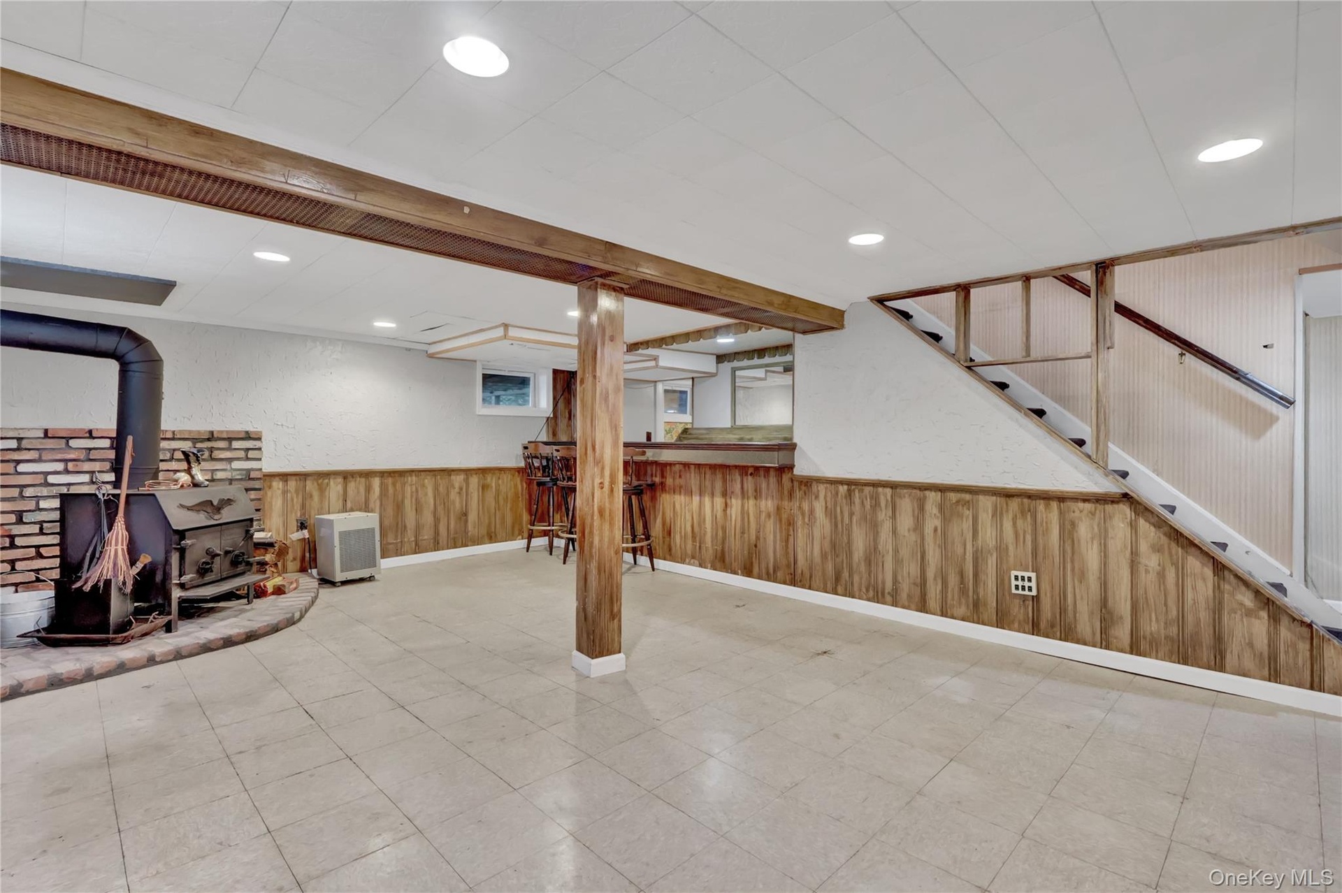 Welcome to this charming 4-bedroom Cape in desirable East Meadow with LOW TAXES, offering fantastic curb appeal and endless potential. The home features an eat-in kitchen with stainless steel appliances and sliders leading to a wood deck—perfect for indoor-outdoor living. Hardwood floors run throughout, and the main-level bathroom includes a convenient walk-in tub. The beautifully landscaped property boasts a great fenced-in backyard, ideal for entertaining or relaxing. A half-finished basement offers additional living space complete with a bar and wood-burning stove. Additional highlights include a huge 2-car garage and proximity to transportation, shopping, and restaurants. Home for the holidays—make this your dream home with a little TLC. Don’t miss this once-in-a-lifetime opportunity!