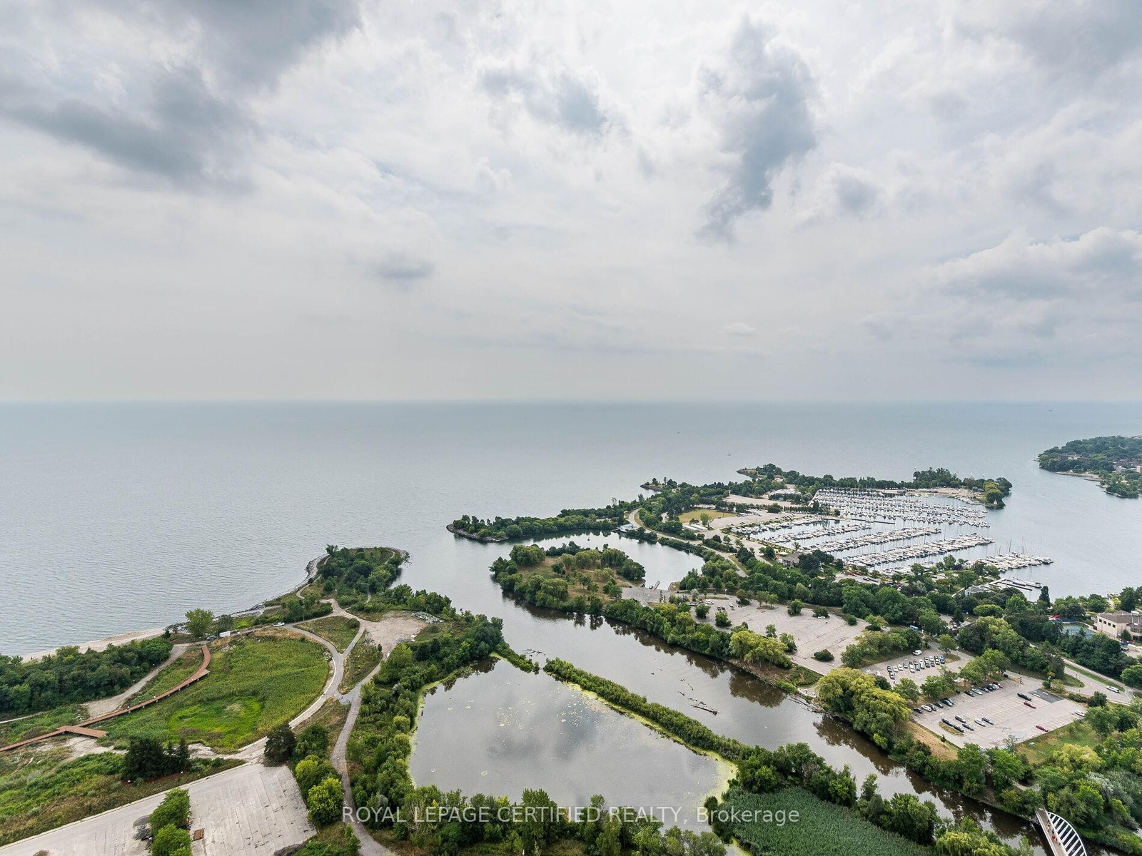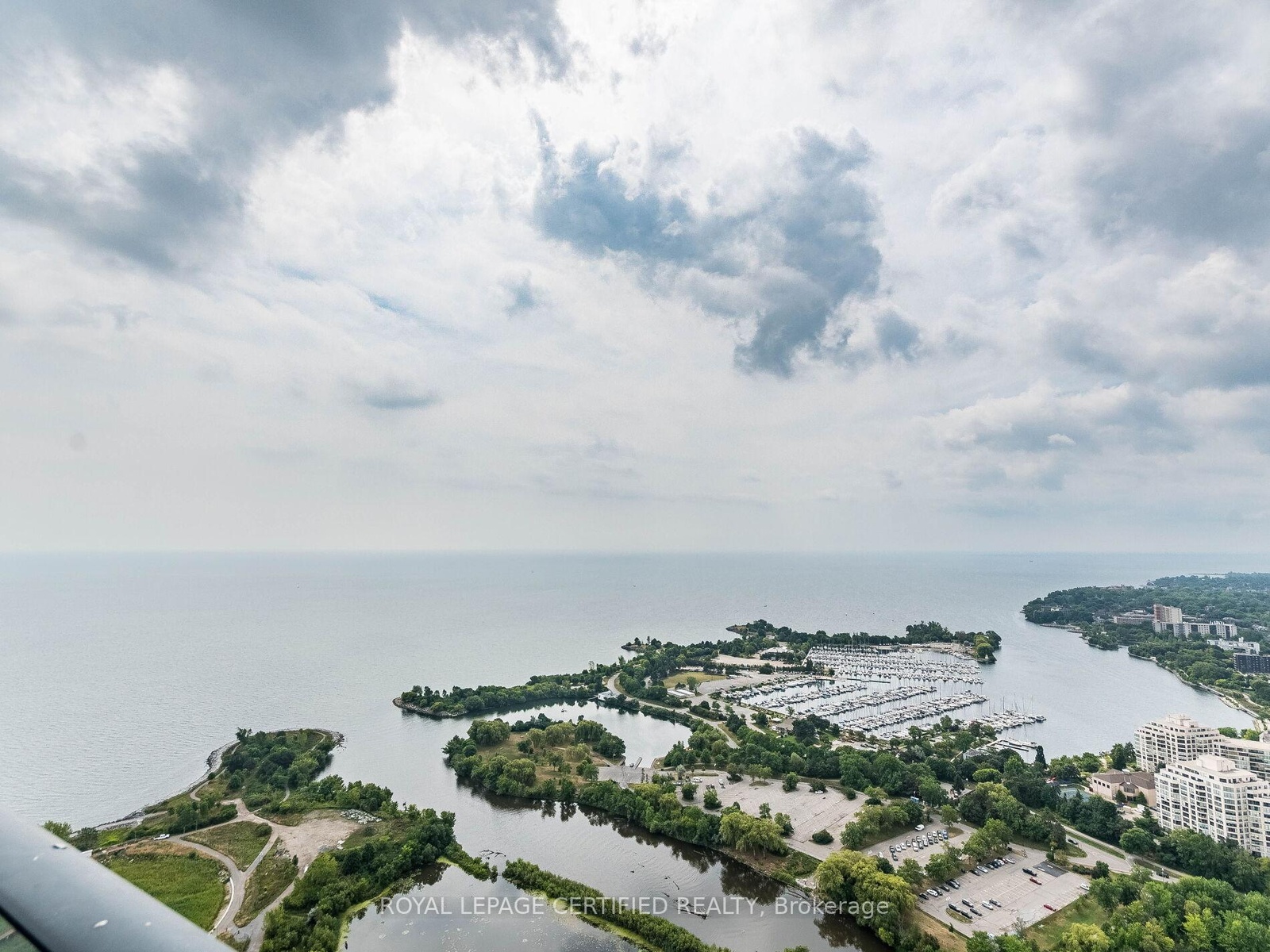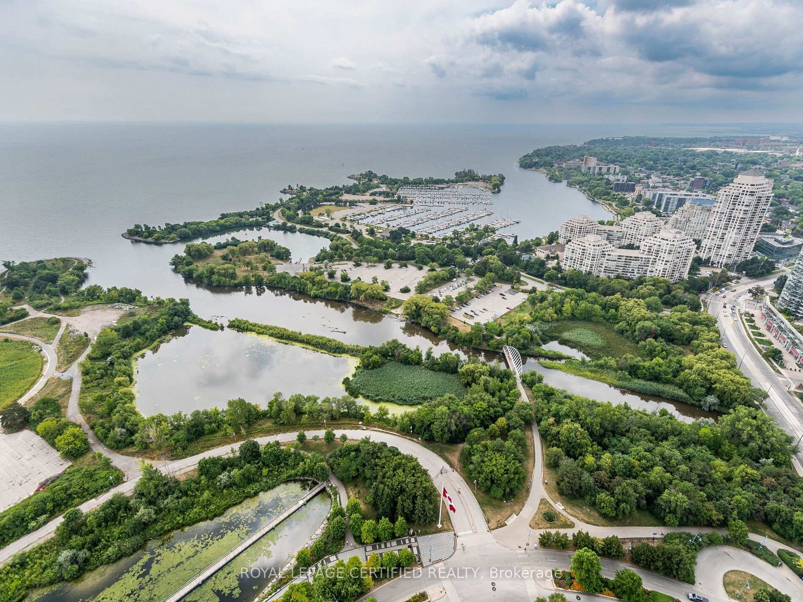 FURNISHED UNIT- Welcome to Eau Du Soleil Luxury Waterfront Living on the Shores of Humber Bay! This VIP corner suite on the 47th floor boasts breathtaking lake, marina, park, and city views. Featuring 2 bedrooms, 1 bathroom, soaring 10 ft ceilings, hardwood flooring, and floor- to-ceiling windows with walkouts to a wrap-around balcony from both the living room and bedroom, this bright unit offers stunning lake views from every angle. The chefs kitchen includes a premium Miele appliance package, upgraded cabinetry, and elegant countertops, while the suite also comes with an upgraded front-load washer/dryer and one premium parking spot. Residents enjoy worldclass amenities such as an indoor saltwater pool, full fitness centre, party rooms, BBQ terrace, theatre, and games room, all just steps to waterfront trails, sailing clubs, restaurants, shops, schools, and with easy access to downtown Toronto and Pearson Airport.