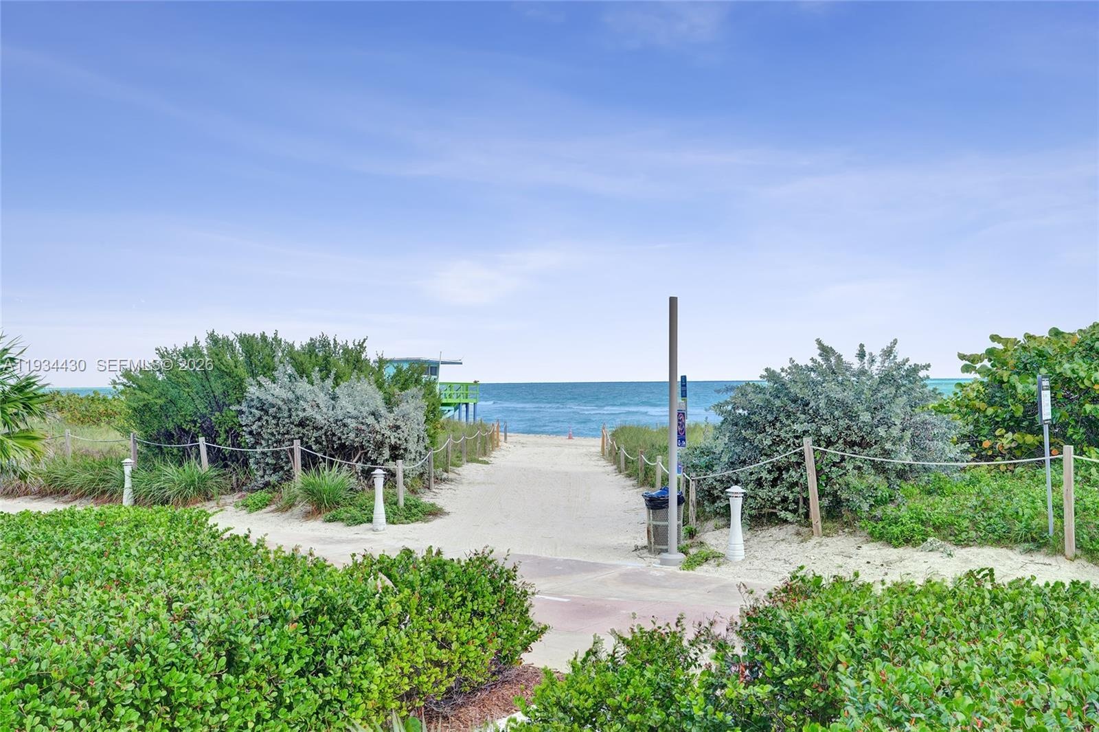 Enjoy soothing views and sounds from this comfortable 2 bedroom 2 bath unit at The Collins. The social areas are conducive to grand entertaining and relaxed enjoyment, with an open kitchen and breezy terrace. Large primary ensuite has an expansive bath with Roman tub, dual vanities, private shower and water closet area. Closets galore, full-size washer/dryer; cable and Internet included in maintenance. Superb boutique building by renowned architect Morris Lapidus has undergone a complete renovation (assessments paid), offers 24/7 concierge, on-site management, fitness center, social room, business center, conference room, a great beachside heated pool: enjoy life in this sought-after NoBe spot amidst restaurants, shops, markets, close to SoBe, Bal Harbour shops and more.