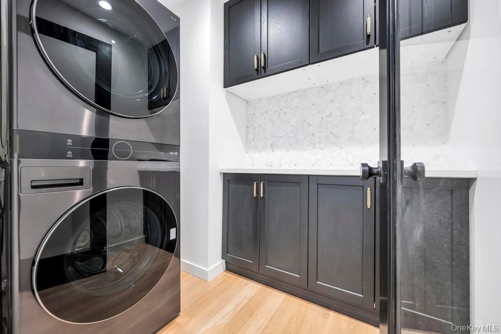 The home offers four bedrooms and three-and-a-half baths, including a serene primary suite with tray cedar ceilings, yard access, a custom walk-in closet, and a spa-inspired bath overlooking protected natural scenery. Additional highlights include two laundry rooms, basement space, a mudroom with white oak accent wall, a two-car garage, and an additional garage.