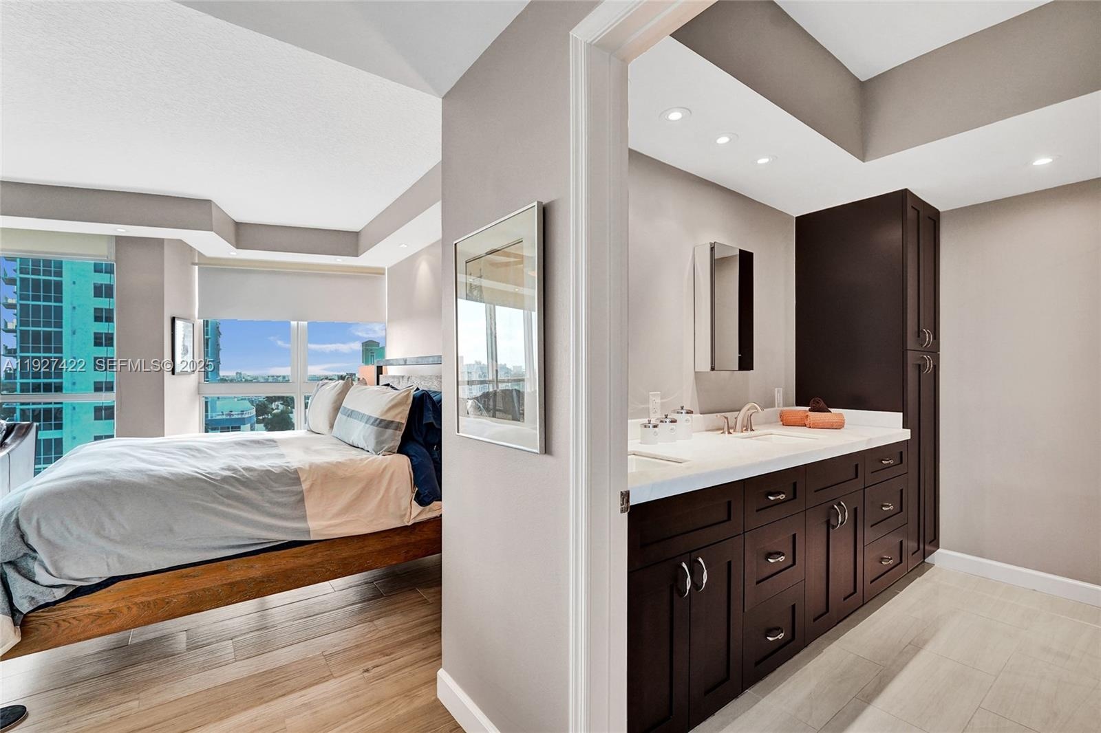 Wake up to breathtaking sunrise views over ocean & Intracoastal. Stunning 1,730SF luxury canal-front residence in sought-after Venezia Las Olas—steps from shops & dining mecca of Las Olas. Minutes to beach w/skyline beach views from oversized outdoor space. Double doors open to elegant marble floors & wall-to-wall views, the ultimate WOW factor. Condo boasts $100,000+ in renovations, transformation of galley kitchen into a chef’s open-concept kitchen w/double ovens, marble countertops, wood cabinets w/pull-outs, counter seating, workspace, full bar w/wine fridge—ideal for entertaining & everyday elevated living. Enjoy indoor-outdoor life on HUGE private balcony, perfect for morning coffee or sunset cocktails. Primary suite has double glass doors, blackout shades, porcelain floors, walk-in closet, linen closet, dual sinks, oversized shower & ample storage. Extra area outside primary suite-ideal for home office, studio or sitting area. 2nd bedroom offers en-suite bath & walk-in closet with custom built-ins. Additional highlights include laundry room, powder room, freshly painted & impact windows. This pet-friendly, boutique building has renovated lobby and offers pool and gym amenities. Included are two garage parking spaces plus a large private storage room conveniently located adjacent to the spaces. This is true luxury waterfront living in the heart of Fort Lauderdale. HOA fee incl. Structural Integrity Reserve Study (SIRS) reserve funding, compliant w/Florida requirements.