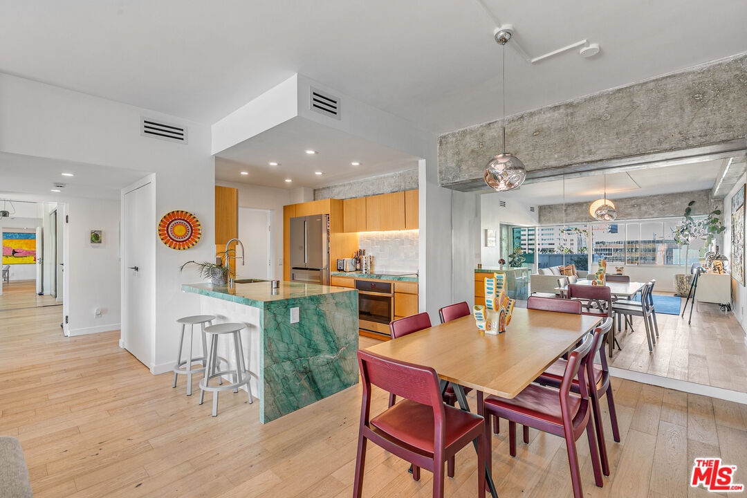 Located on one of Hollywood's most sought-after addresses, this fully renovated 2BR / 2BA residence at 7135 Hollywood Blvd offers elevated city living that truly feels like you're living in the clouds. Yes, this is the building featured on Selling Sunset (IYKYK).Set on the 5th floor, the space is flooded with natural light and framed by iconic views stretching from Yamashiro Hollywood and the Griffith Park Observatory to the Hollywood Sign, the DTLA skyline, and even snow-capped mountains on a clear day, all enjoyed from your private balcony.Inside, the open-concept layout blends modern sophistication with character, featuring exposed concrete accents, a dedicated dining area, and effortless indoor-outdoor flow. The kitchen is both sleek and functional, with a streamlined electric induction stove that keeps the space clean-lined and modern, a temperature-controlled wine drawer built into the fridge, and warm under-cabinet lighting that adds an inviting glow in the evenings. The breakfast counter is an ideal spot for bar stools; perfect for morning coffee, casual meals, or hosting while you cook.The second bedroom is thoughtfully designed with a Murphy bed and pocket doors, allowing the space to remain open and expansive or fully enclosed depending on your needs ideal for guests, a home office, or creative pursuits. Leave it open to extend the living area, or close it off for privacy and focus. The spacious primary suite features two closets with custom built-ins for maximized storage, while both bathrooms offer spa-level glass walk-in showers. The primary bath includes generous built-in space for linens and toiletries, and a large hallway closet keeps everyday living effortlessly organized.The building delivers amenities galore, including a resort-style pool, fire pit, grill and outdoor dining areas, a 24-hour fully equipped gym, a resident clubroom, and a dog run available to reserve at no additional cost, and a conference room for added flexibility. With 24/7 valet and doorman service, washer and dryer on every floor, trash and recycling chutes, one included parking space, and guest parking, convenience is built into every detail.All of this sits in the heart of Hollywood, moments from Runyon Canyon, Yamashiro, The Magic Castle, Equinox, Soho House, top dining, nightlife, studios, and quick access to the 101.