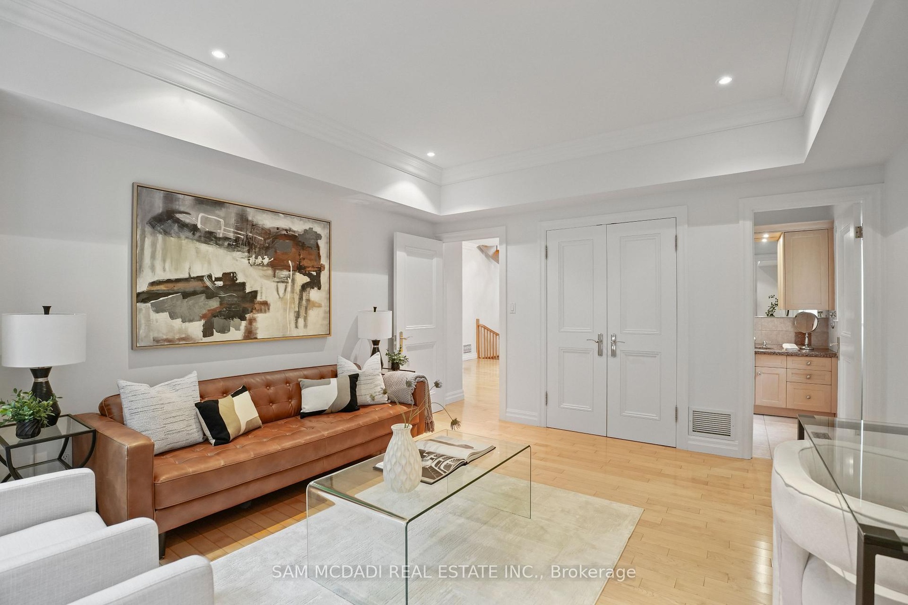 Immerse yourself in the upscale rhythm of Lorne Park, where this remarkable custom-built estate delivers privacy and comfort. Set on a deep 310-ft lot, 1382 Aldo Drive offers nearly 7,500 square feet of finished living space in one of South Mississauga's most sought-after enclaves. A sun-filled foyer introduces the home's grand proportions, leading to a dramatic family room with soaring ceilings, custom built-ins, and floor-to-ceiling windows that flood the space with natural light. The formal dining area sits just beyond, offering an elegant setting for hosting. At the heart of the home, the chef-inspired kitchen pairs granite counters with stainless steel appliances, an oversized island, and a breakfast area that invites connection and ease. The main-floor suite provides spa-like comfort and boutique-style storage. Above, five more bedrooms await, each with a private ensuite or semi-ensuite and custom closets. The Owner's suite is a true retreat with a private balcony, walk-in closet, and a luxurious five-piece bath designed for rest and relaxation. The finished walkout lower level brings incredible versatility. A wine cellar, sauna, home gym, office, and large recreation area with a fireplace create the perfect backdrop for entertaining or quiet evenings in. Step outside to curated landscaping, a spacious patio shaded by mature trees, and a resort-style inground pool that makes every summer day feel like a getaway. Topped with a durable Marley roof, the home pairs timeless design with long-term peace of mind. Located just minutes from Whiteoaks Park, top-rated schools, lakefront trails, and the shops and restaurants of Port Credit and Clarkson Village. Commuters will appreciate quick access to major highways and downtown Toronto. This is a home that delivers presence, privacy, and purpose in every square foot.