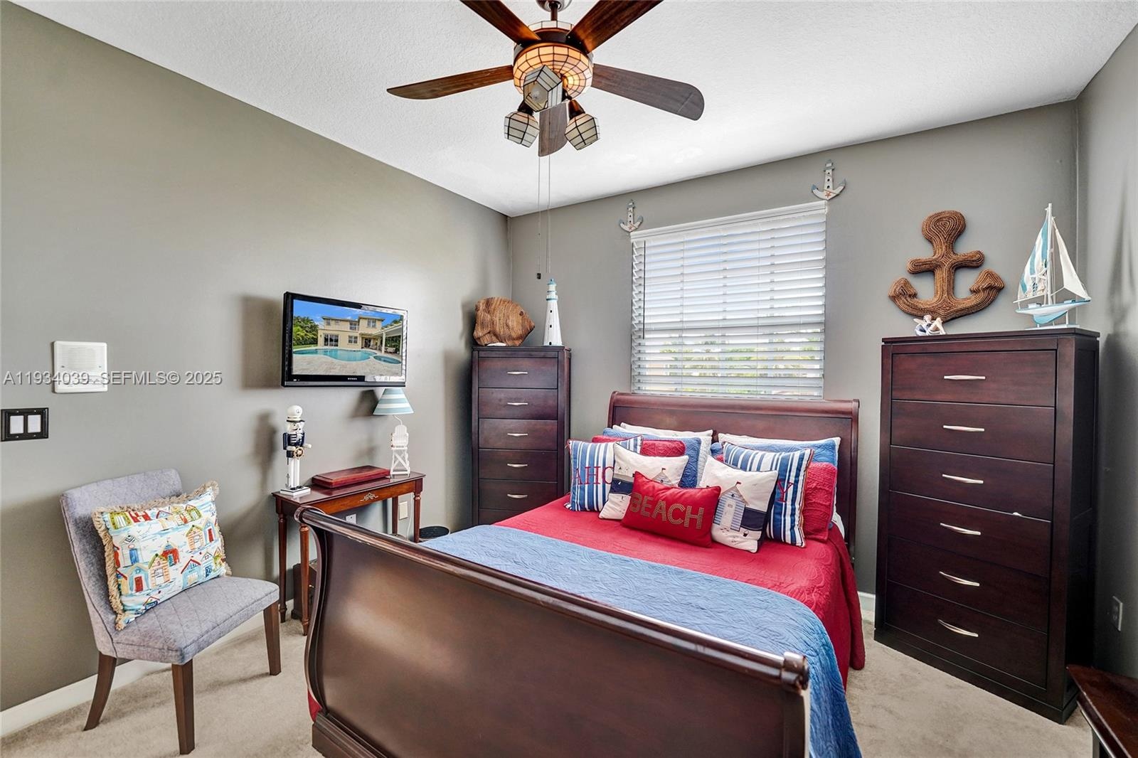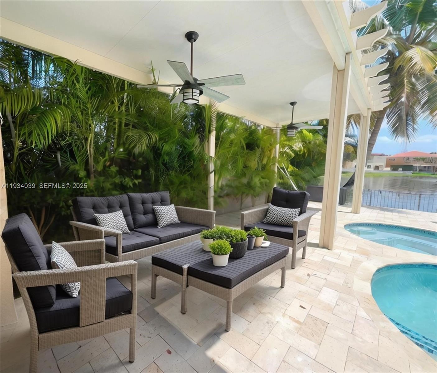 LARGEST WATERFRONT POOL HOME OASIS with $100K in upgrades. Beautiful 5 Bedrooms+OFFICE+LOFT/DEN with 3 full baths & 3 car garage! Perfect blend of 3,200 sqft of living space with soaring ceilings combined with 1,300 sqft of outdoor entertaining space! Stress-free with all NEW plumbing. Great layout with one bedroom & full bath on first floor. Make your way upstairs to a cozy multi-functional loft. Double doors lead into the master suite retreat w/ additional office/den, walk-in closet, & spacious bathroom. Large kitchen with island, separate family room, living room & formal dining room. Enjoy LAKEFRONT views from all living areas plus sunrise & sunsets on your private balcony! Unwind or host family gatherings in your tropical backyard paradise with a remodeled pool, spa, modern travertine pavers & large covered pergola enhanced with outdoor ambient letting. Fully fenced yard. Accordian Shutters. Vizcaya's gated community with tree lined streets, 24/7 security & LOW HOA!