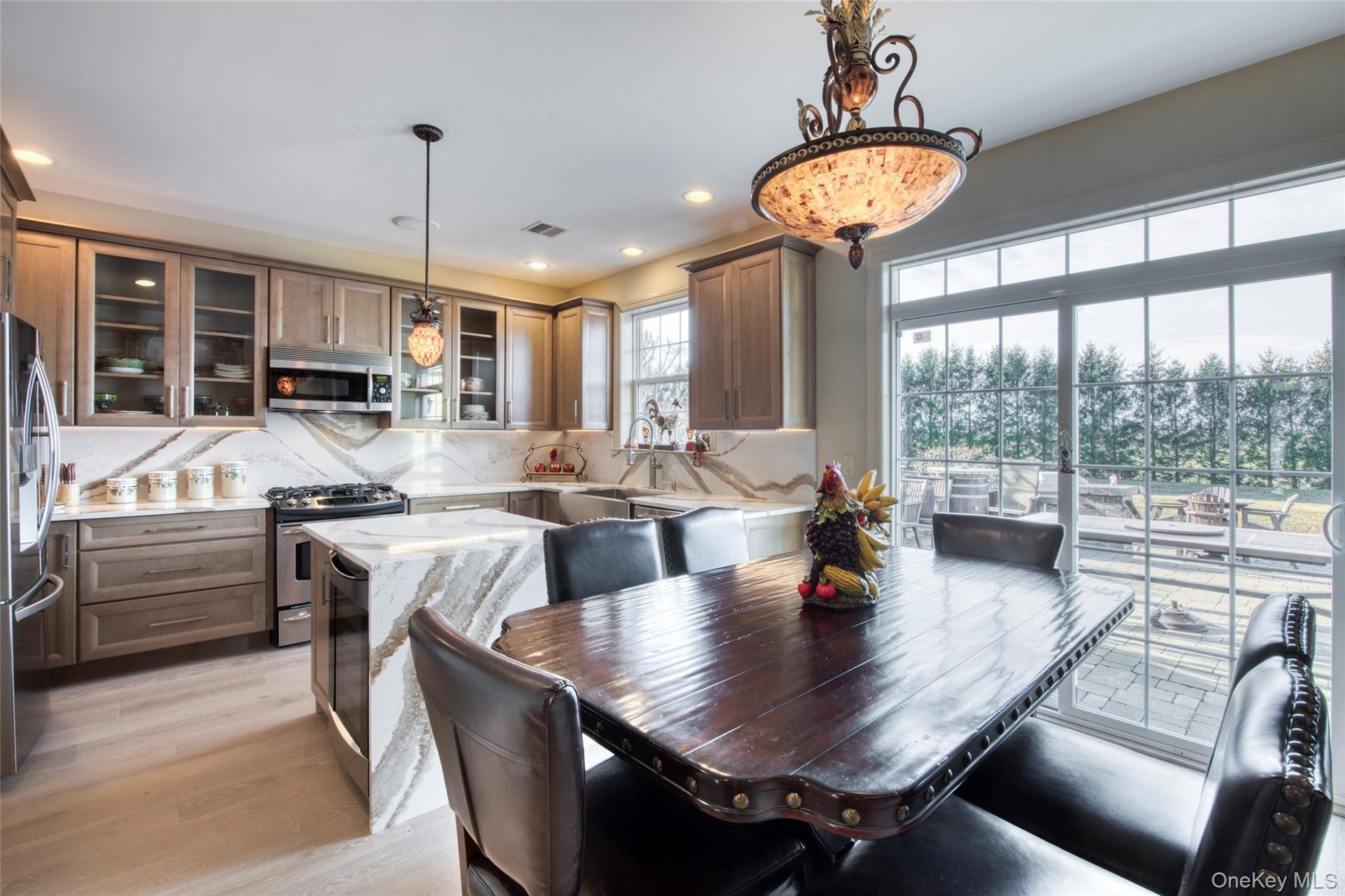 The owner has spared no expense on the meticulously designed landscaping creating a serene picture-perfect setting. Immaculate home featuring 4 bedrooms with primary en-suite on the first floor, 3 full baths and endless upgrades. Completing the first floor is a beautiful renovated kitchen with quartz countertops, SS appliances, quartz backsplash, SS farm sink, waterfall quartz island, living room, formal dining room, cozy den, private office, and convenient laundry room. The inside open floor plan boasts cathedral ceilings, molding package, new oak wood floors, custom window treatments, gas fireplace with floor to ceiling stone.