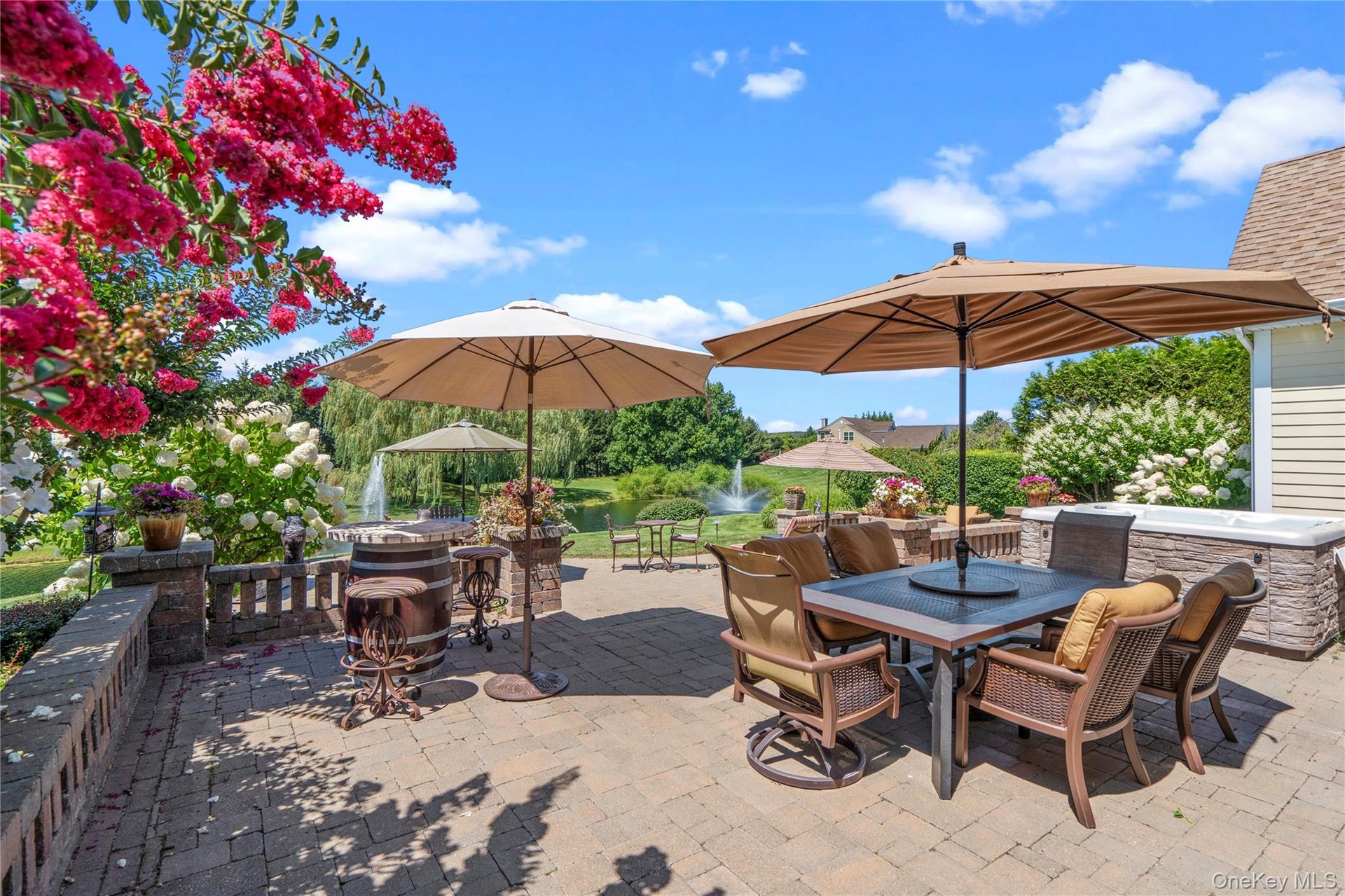 An outdoor oasis with 2 level paver patio, fire pit, hot tub, and professional lighting. Located just minutes from premier golf courses, renowned wineries, charming farm stands, Peconic Bay and the Long Island Sound. The appearance of this home is MINT and a must see!!
