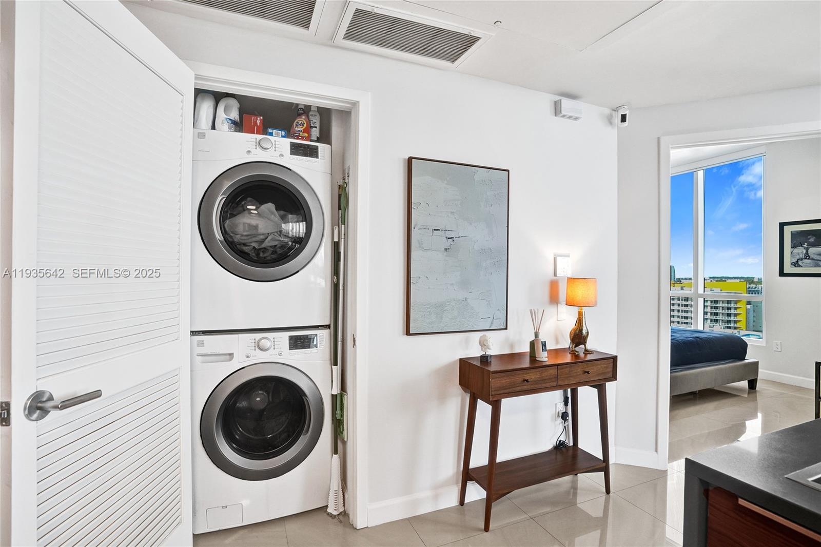 Spacious 2-Bedroom, 2-Bath in a boutique Bay front building with soaring ceilings, breathtaking Bay view and exclusive boardwalk access next to a scenic dog park. This LEED-Silver Certified residence offers sustainable living, with virtually all utilities included in the monthly association fee. Enjoy elegant finishes, quartz countertops, floor-to-ceiling impact windows and porcelain flooring. Resort-style amenities, including a Bay front pool, hot tub, gym, business center with cybercafe and private theater—all with panoramic Bay views. Located in the Edgewater, steps from all the Wynwood and its Michelin star restaurants minutes from the Design District, where the city's best shopping and entertainment await and 10 mn from Miami Beach Includes one assigned covered parking space.
