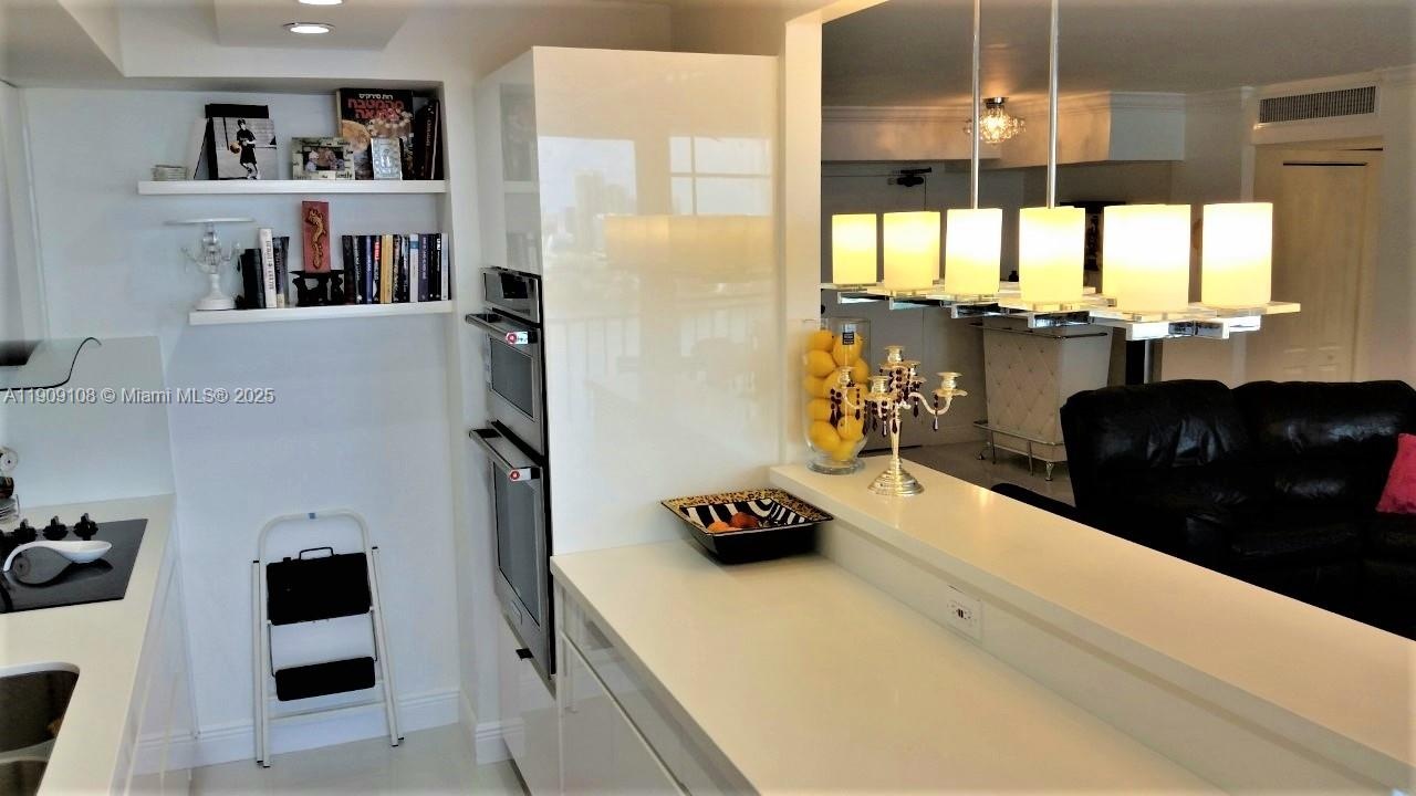 No expense spared in this beautiful, renovated 19th floor apartment. White, bright and lots of light. 32"X32" porcelain tile throughout the apartment. Open kitchen with quartz countertop and backsplash. Top of the line stainless steel appliances including wine cooler. Cute breakfast nook with great view. Both bathrooms with marble flooring. Master bathroom with dual sinks. Other features include recessed lighting and crown molding. Top it off with a spectacular north view of the bay. Furniture is negotiable. No leasing allowed. Building has 40-year certification.