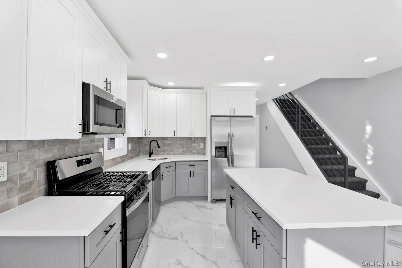 Space, style & modern luxury come together at 109-20 221 Street. This meticulously renovated, move in ready fully detached single family will captivate you from the moment you arrive with its warm & welcoming energy. Sitting on a 30x100 lot, on a beautiful tree lined dead end street of Queens Village. Featuring a wide private driveway, and huge yard space to enjoy outdoor gatherings. This turn key property is the perfect opportunity for buyers looking for space. Open the door and enter an expansive sun drenched formal living area which provides great space for entertaining. The formal dining area is overlooked by the elegant kitchen any chef will love. Kitchen features floor to ceiling custom cabinetry, adorned with a full fleet of stainless, island for bar stool seating and leads out into lush rear yard. full bath on first floor for your guest. Towards the rear of the property a spacious master bathroom awaits you with a private suite. Up a flight of stairs onto the 2nd floor 3 spacious bedrooms awaits you, each equipped with ample closet space. Down the hall a fully tiled bathroom is equipped with state of the art wall & floor tiles. Renovations include brand new flooring, recessed lighting, all new electrical, heating and plumbing systems throughout. All work was done with permits. House is equipped with Solar Panels. The full finished basement has both interior and exterior access and can be used as the perfect in - law suite. Conveniently located with close proximity to major transportation which makes commuting a breeze. Just off , Cross Island Parkway,Belmont Shopping Outlet center, Short blocks to schools, shopping centers, restaurants, cafes, parks, and many other vibrant neighborhood amenities.