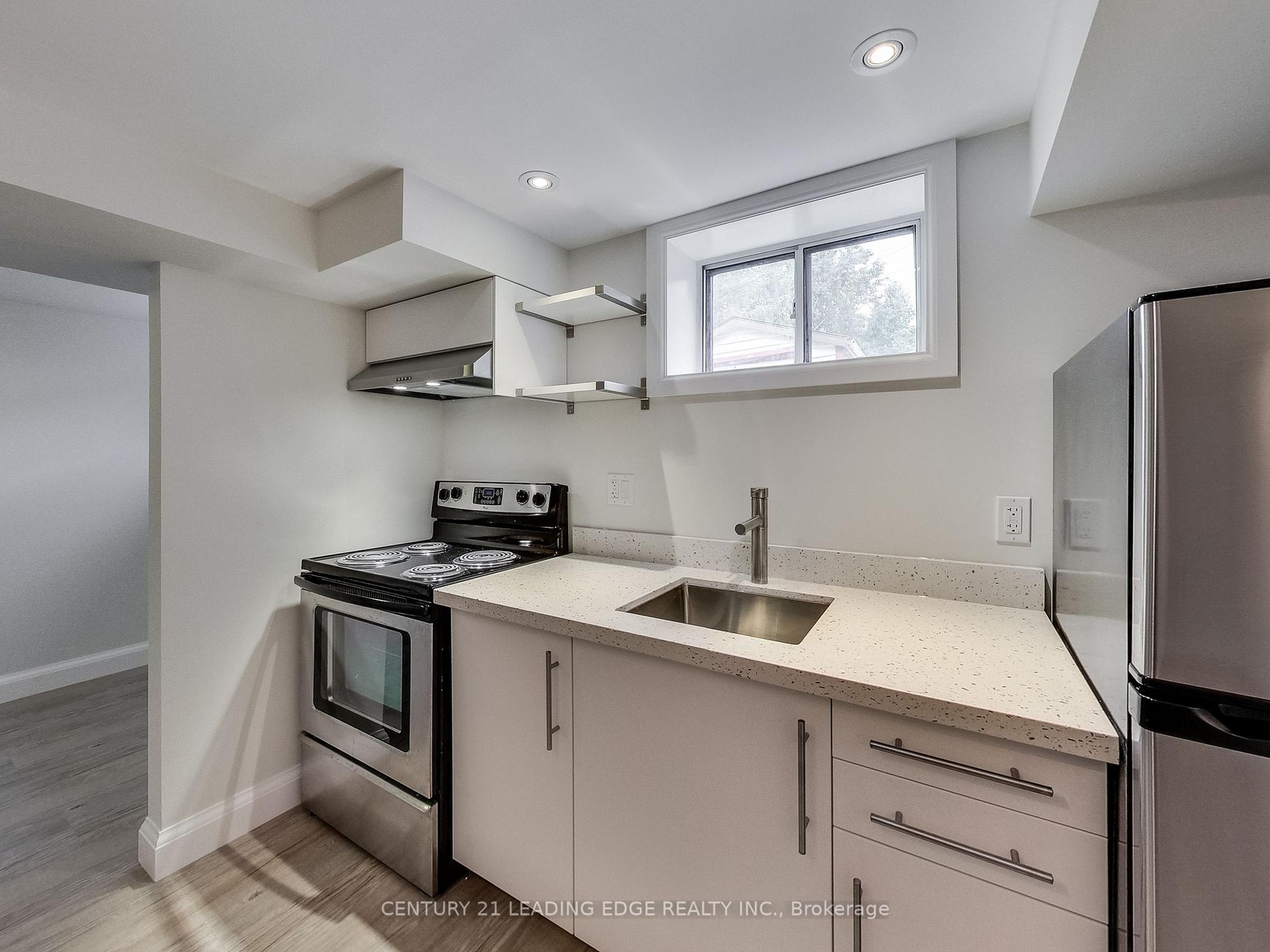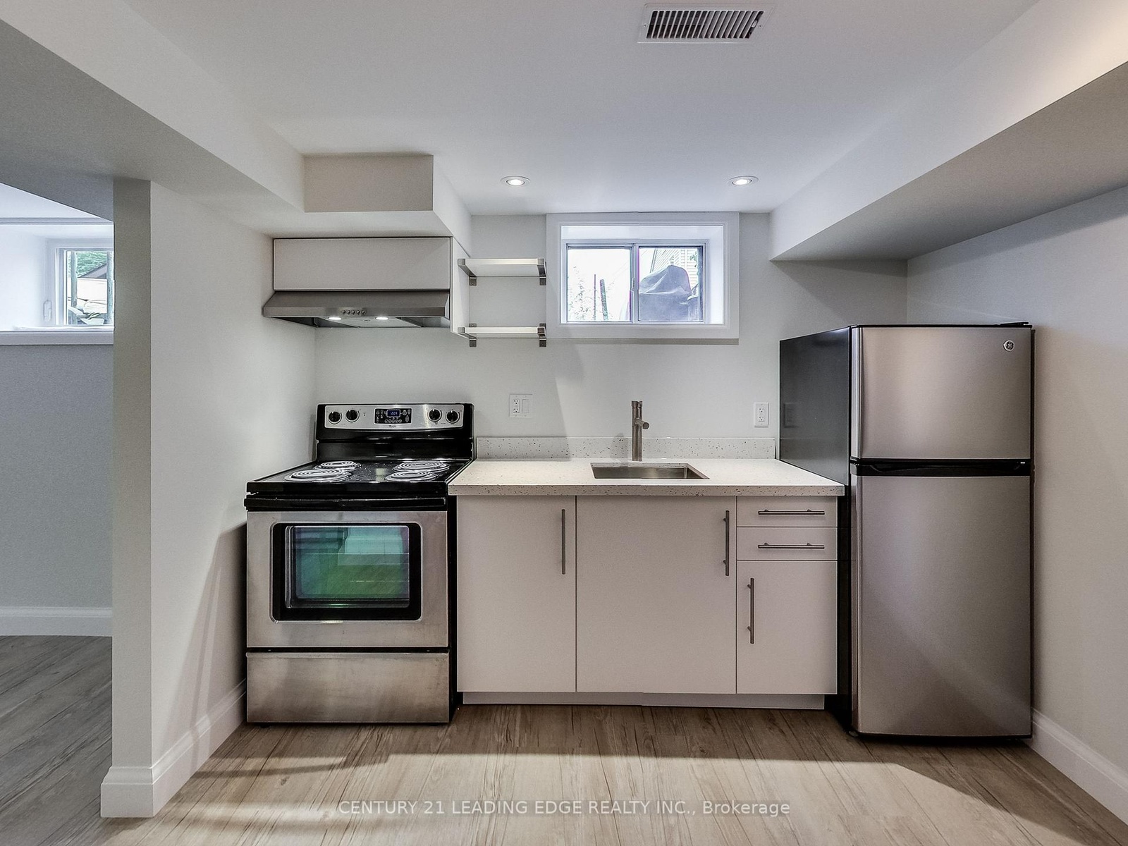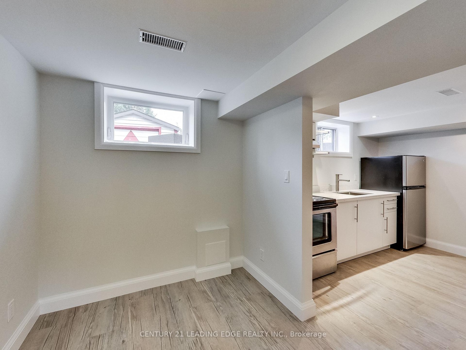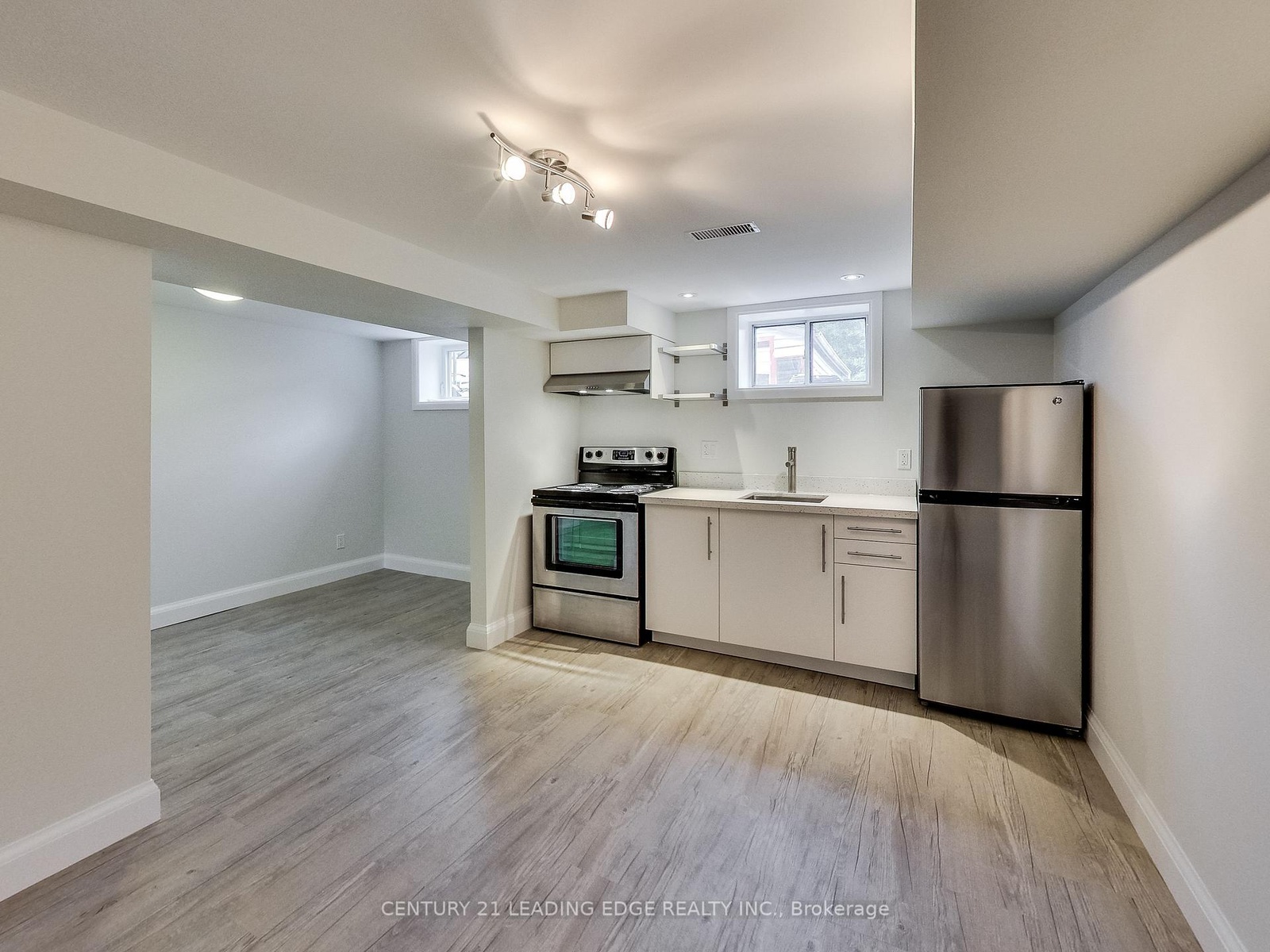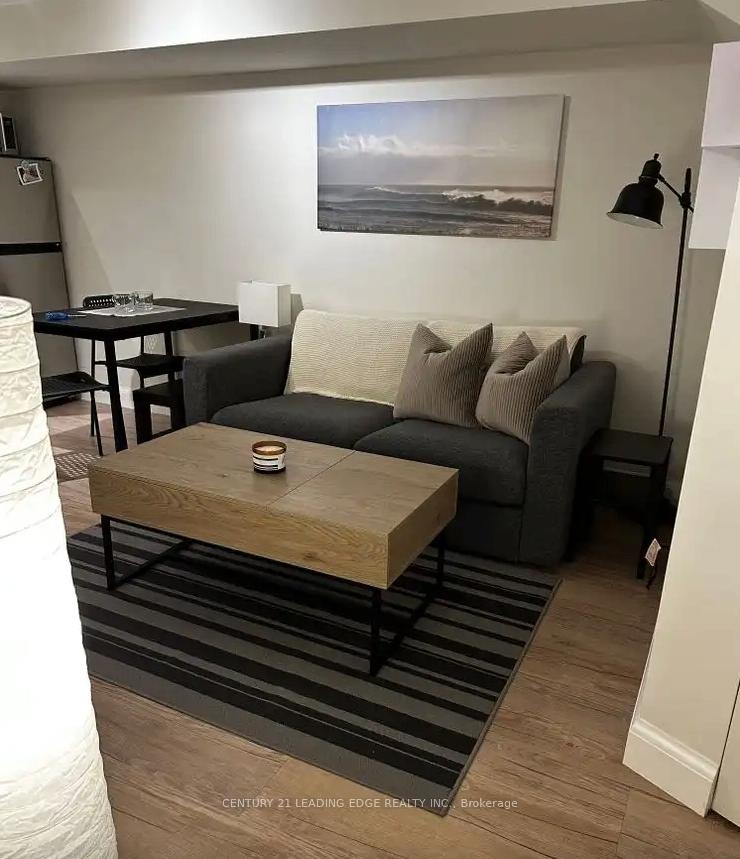 This fully renovated lower-level suite is a spacious 540 sq. ft., 1 bedroom + 1 bath with luxury vinyl flooring throughout. It boasts a south-facing orientation that provides ample sunlight, almost 7 ft high ceilings, is clean and fully insulated with new windows. Fully furnished with a comfortable sofa, coffee table, dining set, and chairs, and a queen-sized bed with many accessory drawers. The suite features granite/stone/quartz countertops, Stainless Steel Appliances, in-suite storage pantry, in-suite Laundry/WasherDryer, air conditioning, PVR cable box, office area, private entrance, and patio. The oversized 4-piece bathroom includes in-suite laundry and ample storage throughout, including full-height closets with closet organizers, storage room, and bathroom closets. Located in East York, this suite is steps away from all amenities, great parks & trails, a 1-minute walk to the bus and 15-minute TTC subway ride, and a short drive to the DVP and Michael Garron Hospital. The backyard is for shared use, and on-street parking is available. All-inclusive rent covers electricity (capped at $100), water, central A/C and heat, as well as 1 Gbps high-speed internet, garbage collection, and basic cable. Tenant insurance is required, and no pets are allowed. Features: City views, South facing, Marble counter tops, Granite/Stone/Quartz counter tops, Tile floors, Air Conditioning, Entire Floor Suite, High Ceilings, In Suite Laundry, In Suite Storage Pantry, Office Area, Back Area Patio, Private Side Entrance, Stainless steel appliances.