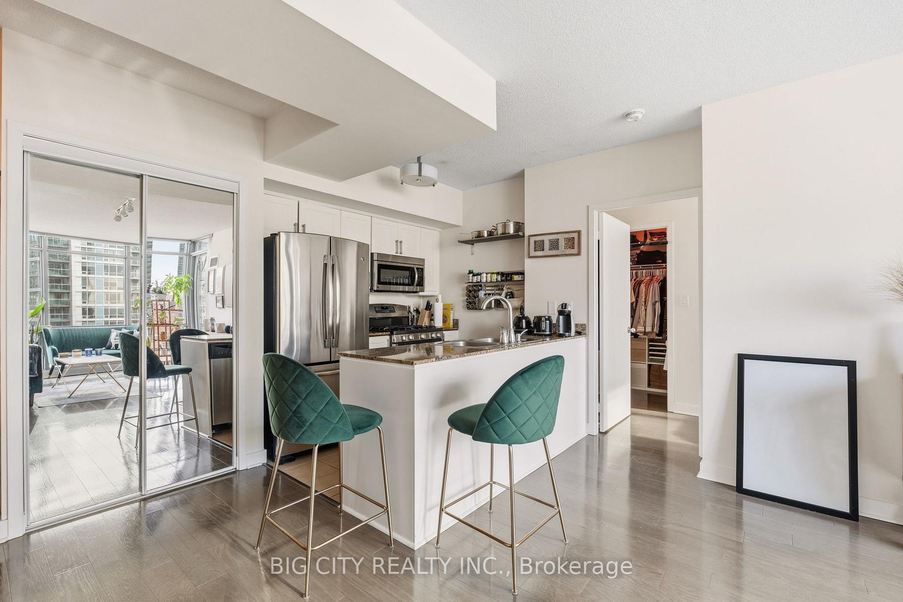 Fully furnished 2 bedroom plus separate den, 2 full bathroom suite at 3 Navy Wharf Court. Smart split-bedroom layout with excellent privacy and flow. The den sits away from the living area and works well as a home office or study. Floor-to-ceiling windows bring in strong natural light throughout the unit. Open concept living and dining room are connected to a modern kitchen with full-size appliances and ample storage. Hardwood flooring throughout. Both bedrooms are well sized, with the primary bedroom featuring a full ensuite. Second bathroom sits close to the second bathroom and den. The unit includes one parking space and one locker. Furnished with comfortable, practical pieces suitable for professionals or families seeking a turnkey lease. Prime downtown location steps to the TTC, Union Station, Financial District, Entertainment District, waterfront, restaurants, daily essentials. Quick access to Gardiner Expressway and Lakeshore. Residents enjoy access to a 30,000 sq ft Superclub with indoor pool, fully equipped gym, running track, bowling lanes, squash courts, and more. A complete lifestyle building in one of downtown Toronto's most connected pockets.