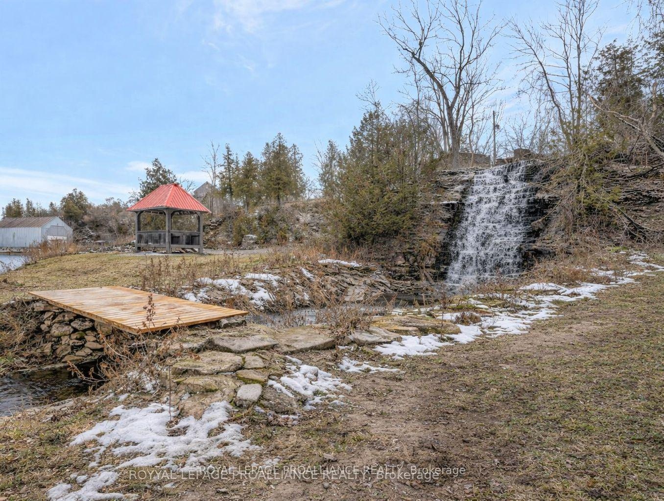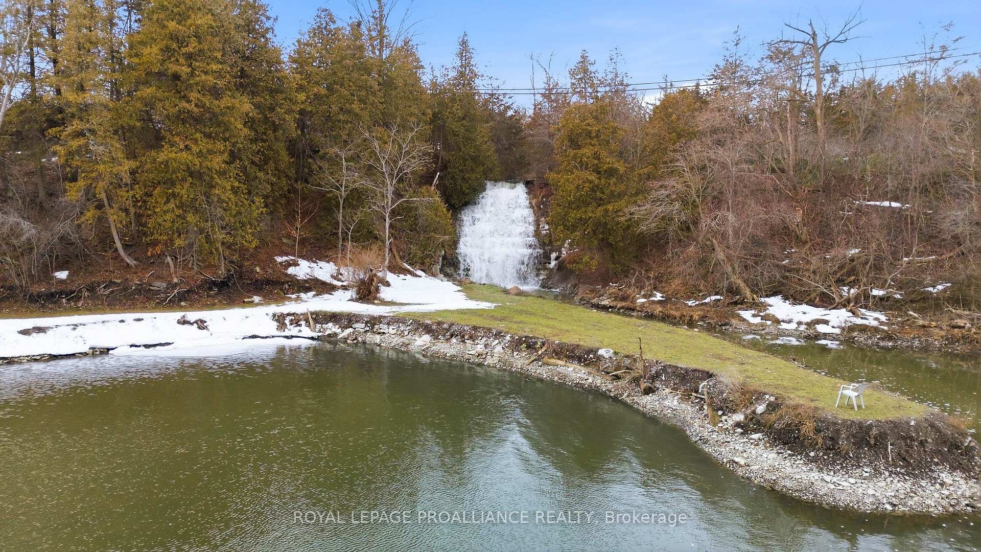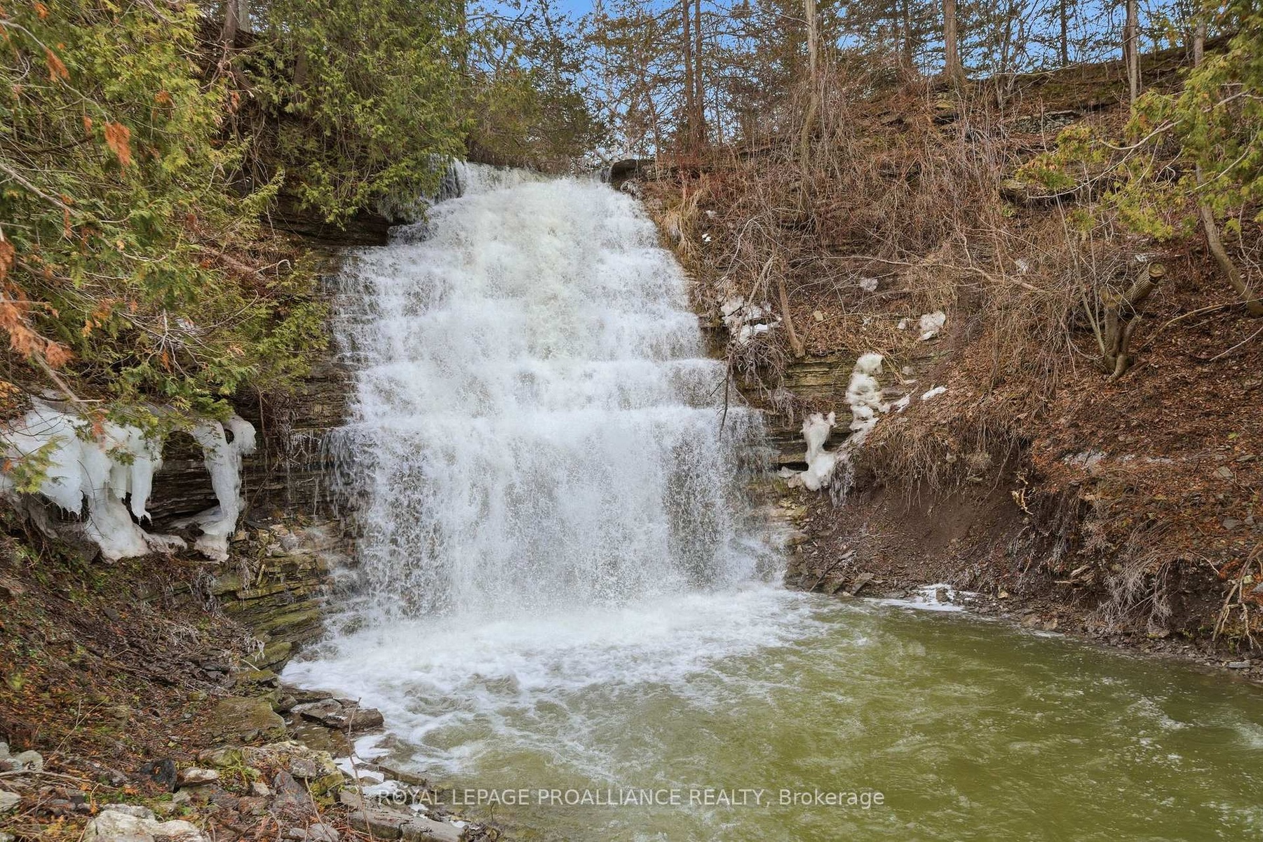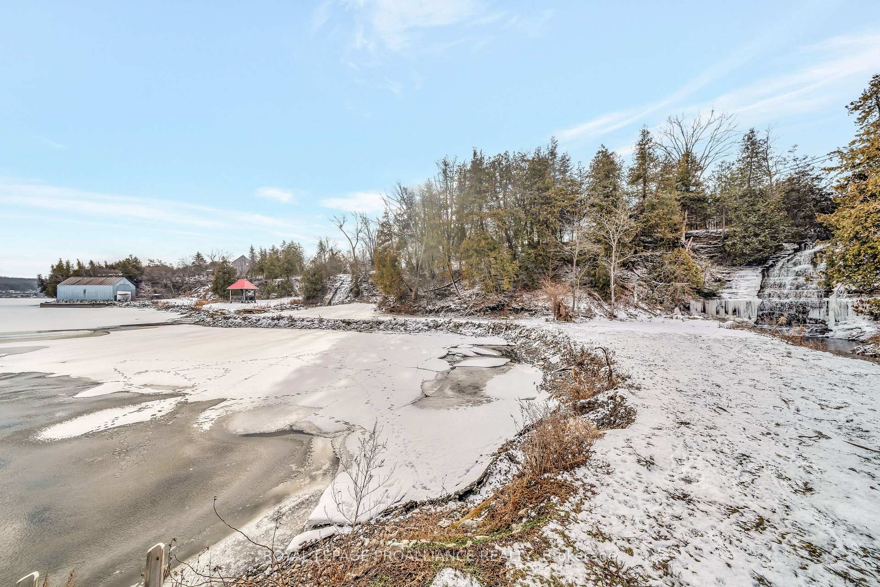 Tucked away on the water at Hallowell Mills Cove, this rare 4.7 acre holding offers a combination of land, location, and legacy that is seldom available in Prince Edward County. With direct waterfront, dramatic natural features, and immediate proximity to the Picton Golf & Country Club, the property delivers both privacy and connection in equal measure. The landscape is defined by movement and sound, as two waterfalls cross the site- one carving a deep rock gorge, the other flowing gently toward the cove. Spread across the grounds are several distinct structures, creating a compound-like setting with flexibility for personal use, guest accommodation, or future planning. At the center of the property is a five-bedroom, 2.5 bath residence filled with authentic character, including wide pine floors and striking ceiling heights throughout. Nearby, a substantial three-story boathouse- originally designed to accommodate large yachts - has been partially reimagined as a refined one-bedroom suite finished in rich rosewood and positioned directly over the water. A separate winterized cabin adds yet another layer of versatility. Anchoring the site is the original mill infrastructure, a visible reminder of the property's role in the area's early industrial history, where water power once supported both grist and lumber operations. Whether envisioned as a private waterfront retreat, a multi-use family compound, or a long-term investment in a rapidly envolving area of Picton, this is a property defined by scale, setting, and opportunity.