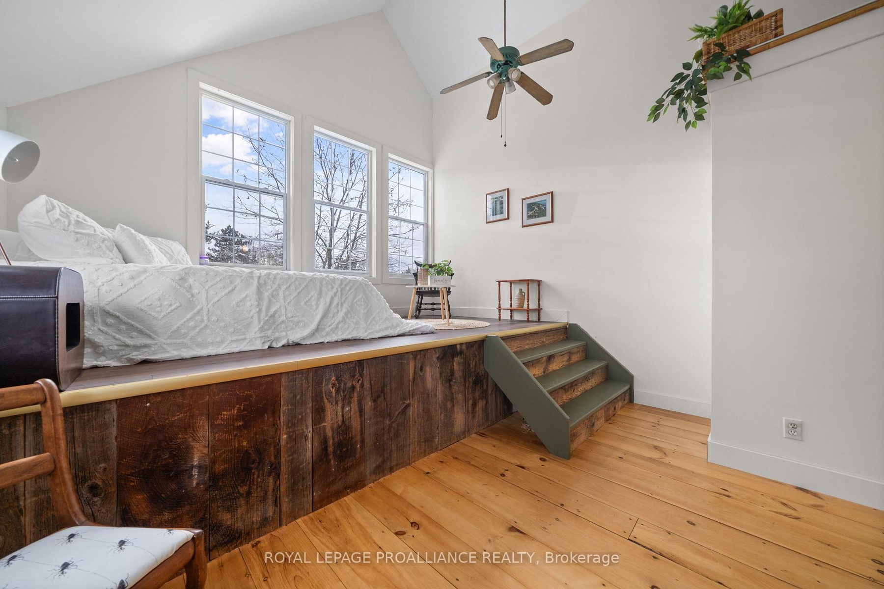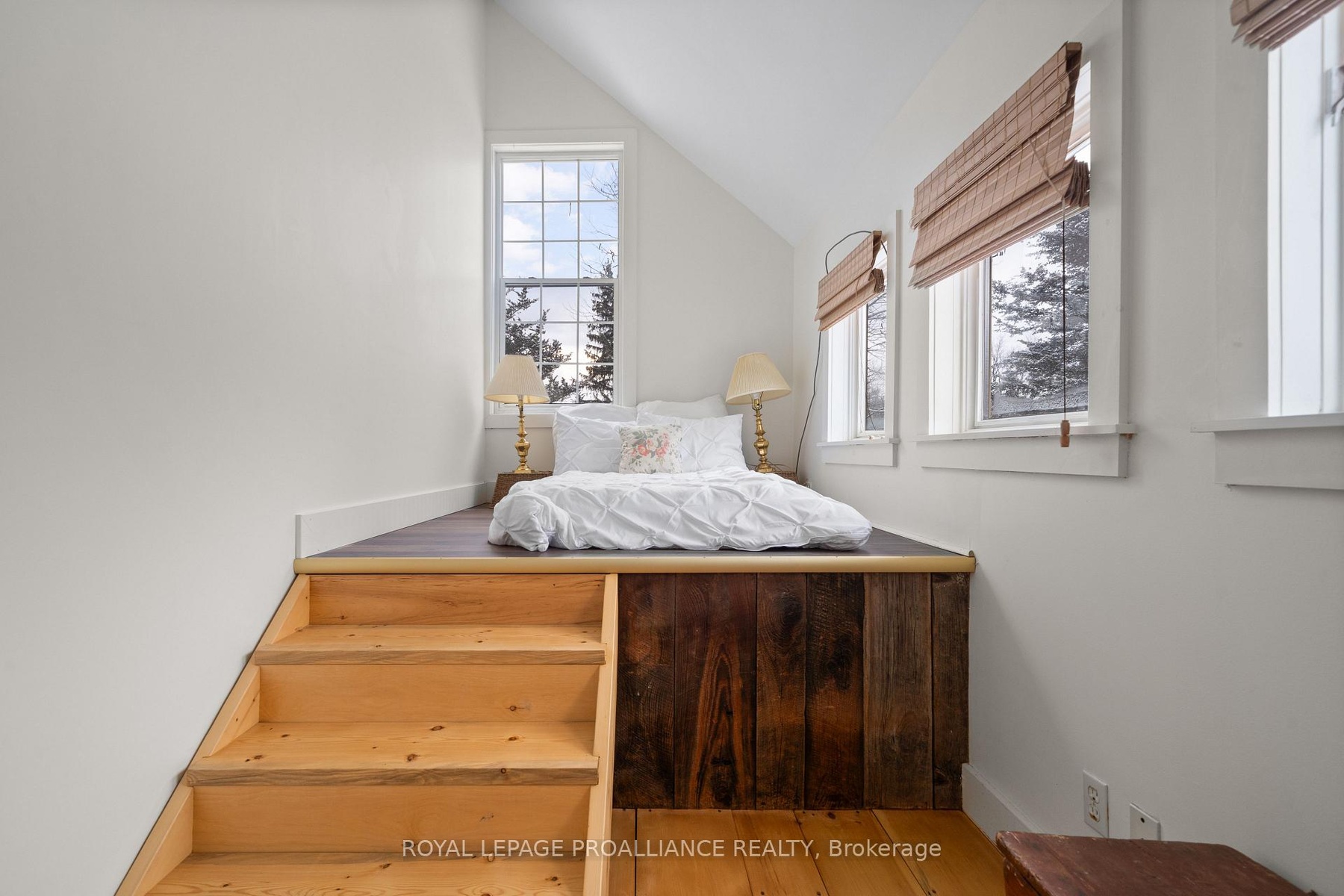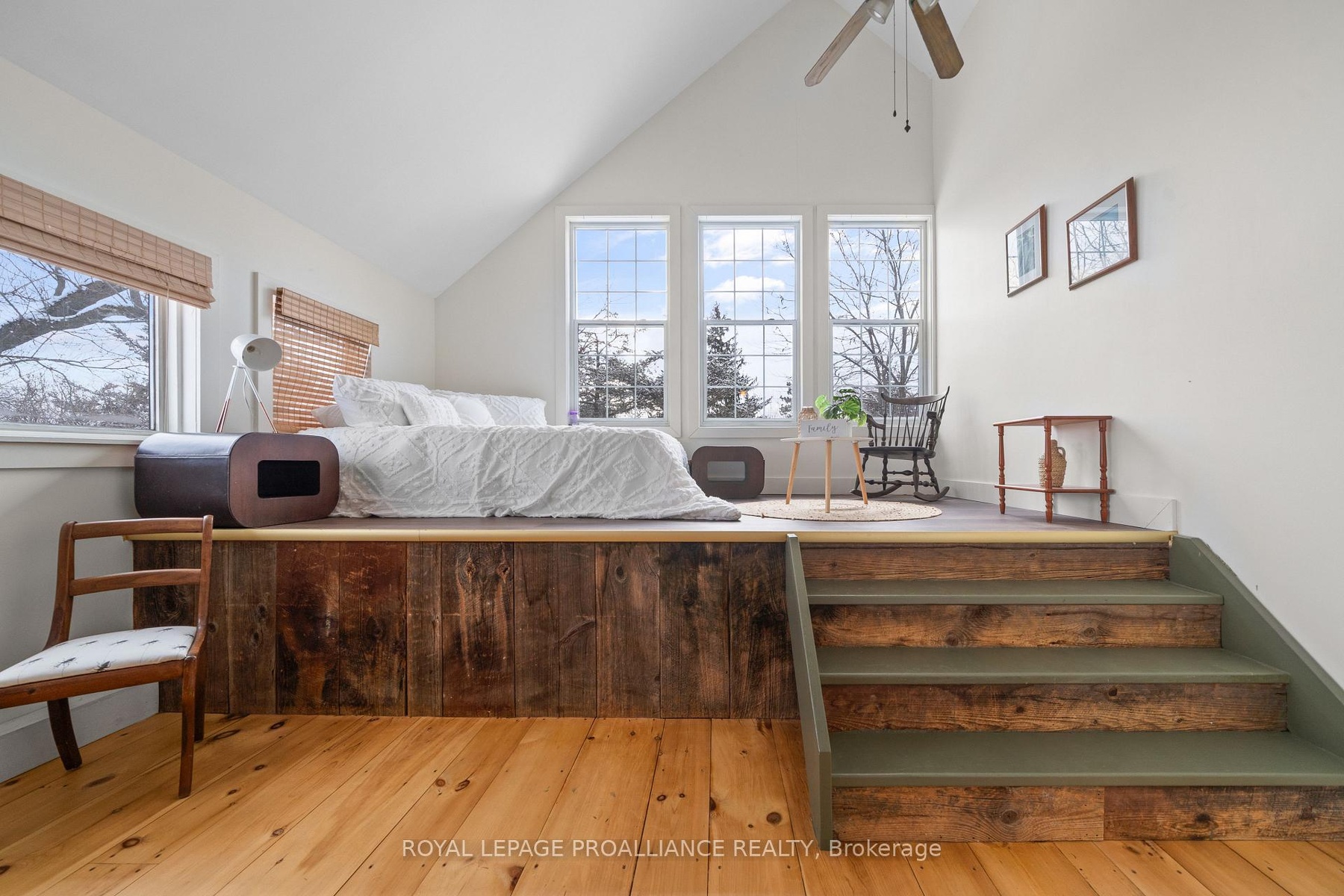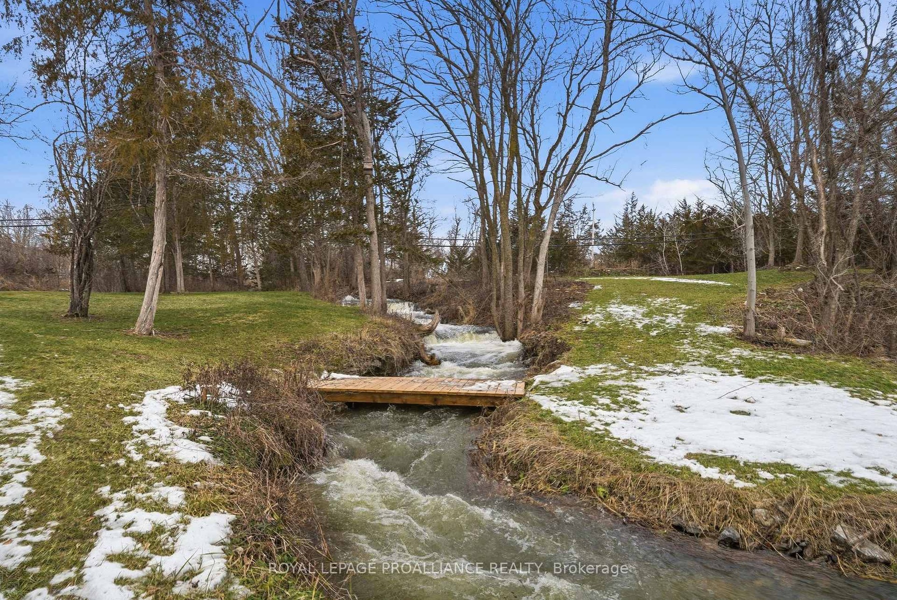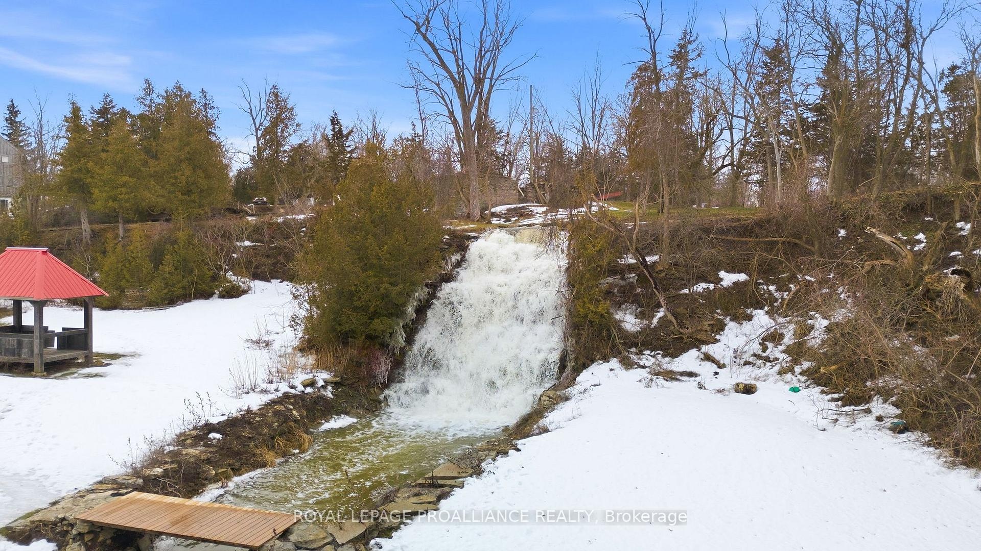 Tucked away on the water at Hallowell Mills Cove, this rare 4.7 acre holding offers a combination of land, location, and legacy that is seldom available in Prince Edward County. With direct waterfront, dramatic natural features, and immediate proximity to the Picton Golf & Country Club, the property delivers both privacy and connection in equal measure. The landscape is defined by movement and sound, as two waterfalls cross the site- one carving a deep rock gorge, the other flowing gently toward the cove. Spread across the grounds are several distinct structures, creating a compound-like setting with flexibility for personal use, guest accommodation, or future planning. At the center of the property is a five-bedroom, 2.5 bath residence filled with authentic character, including wide pine floors and striking ceiling heights throughout. Nearby, a substantial three-story boathouse- originally designed to accommodate large yachts - has been partially reimagined as a refined one-bedroom suite finished in rich rosewood and positioned directly over the water. A separate winterized cabin adds yet another layer of versatility. Anchoring the site is the original mill infrastructure, a visible reminder of the property's role in the area's early industrial history, where water power once supported both grist and lumber operations. Whether envisioned as a private waterfront retreat, a multi-use family compound, or a long-term investment in a rapidly envolving area of Picton, this is a property defined by scale, setting, and opportunity.