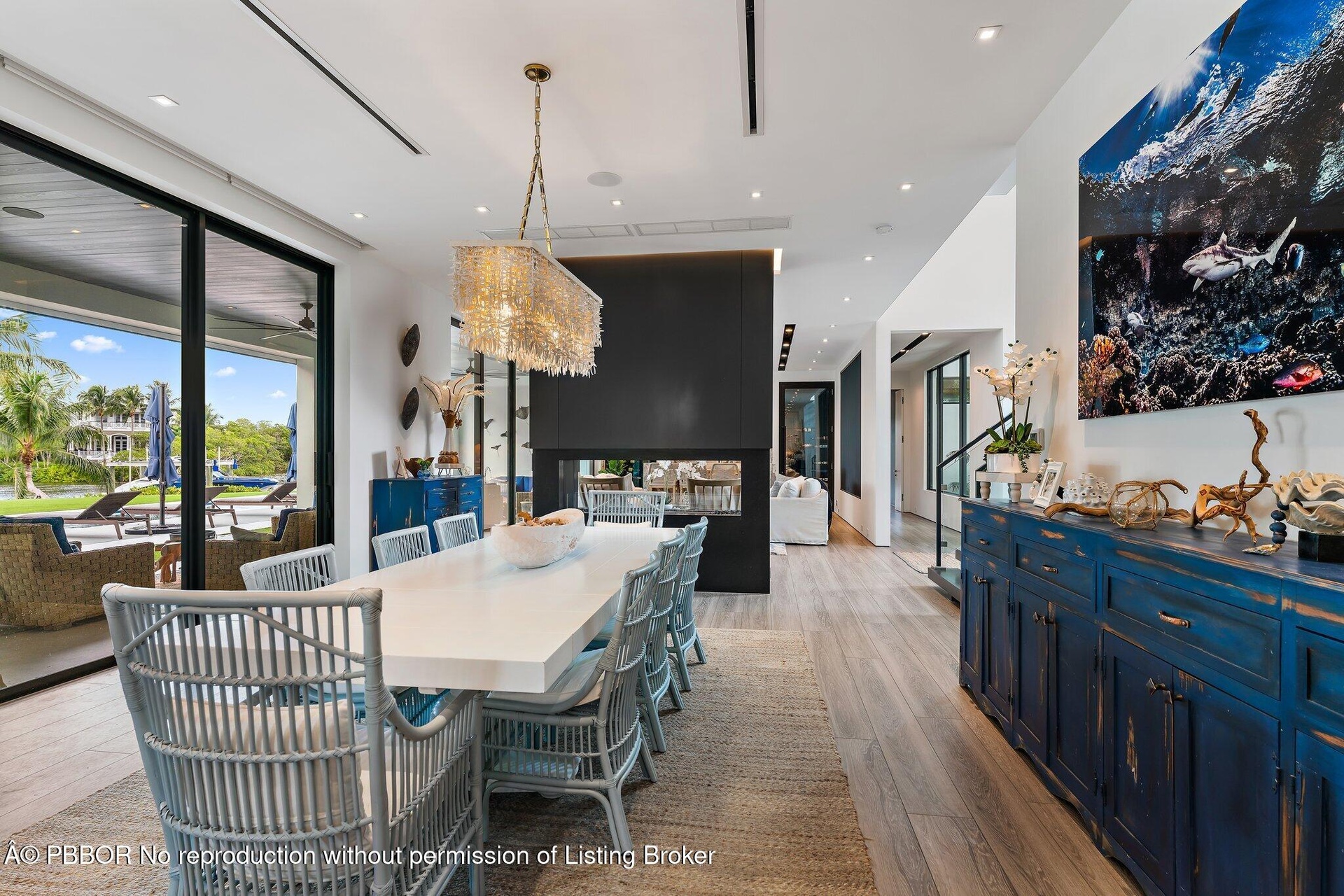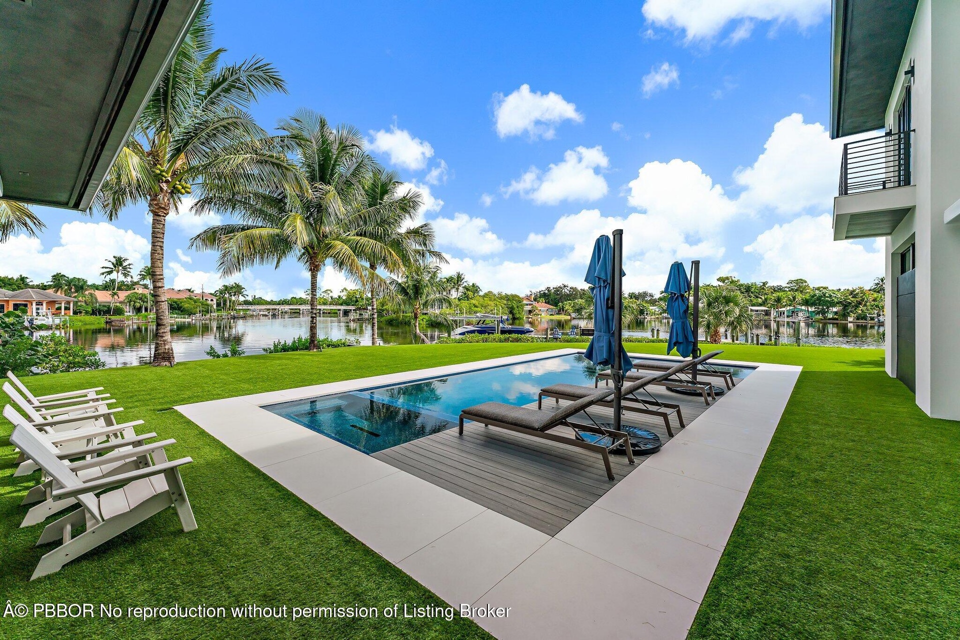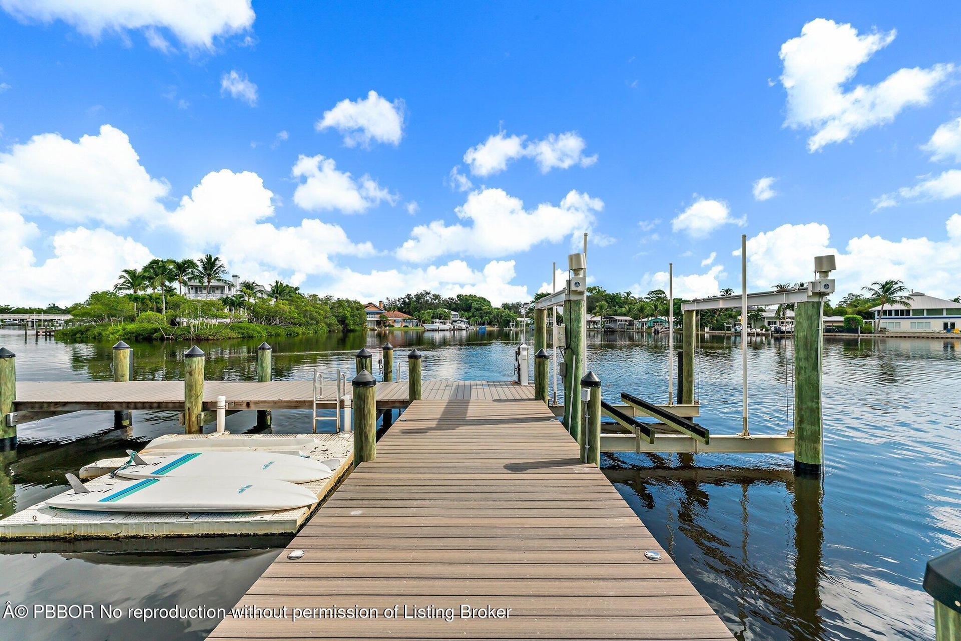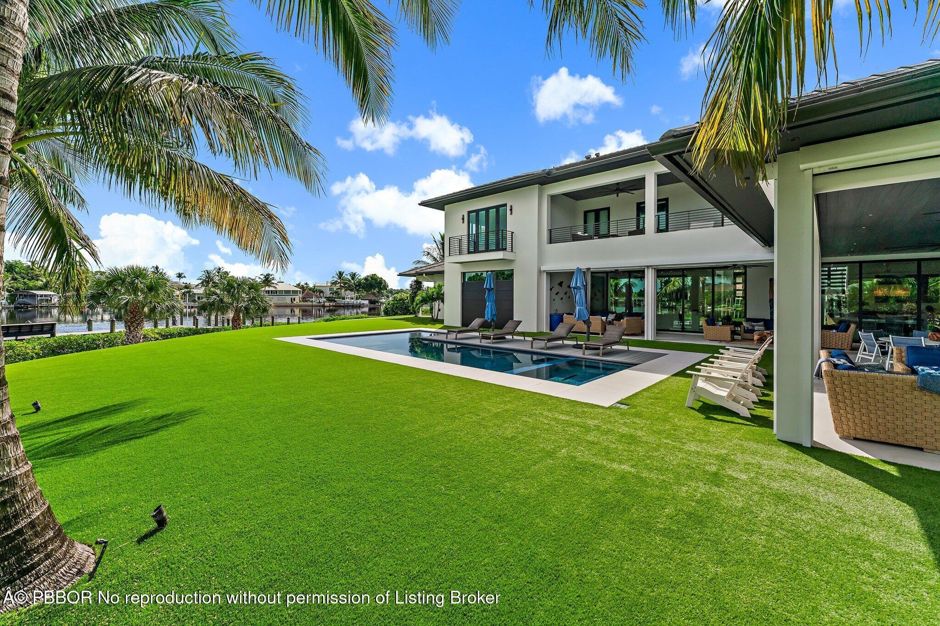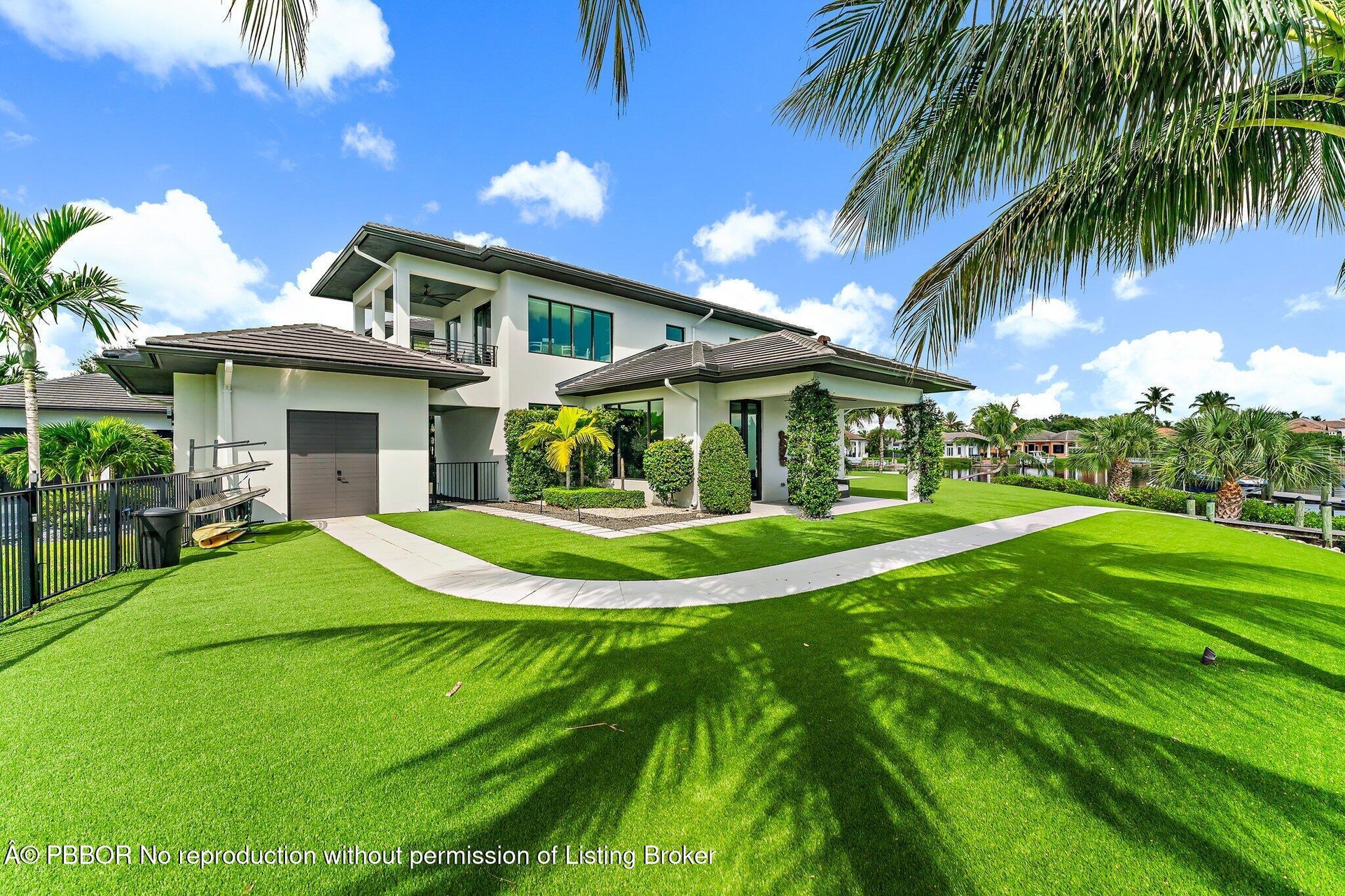 Located on a peninsula lot of 1.33 acres with 500 feet of deep waterfrontage on three sides with no fixed bridges, this truly is one of the finest waterfront properties in our area. Custom built in 2021 by Ocean Blue Custom Homes, this signature estate in the luxury, gated community - The Islands of Jupiter, meets the demands of the most sophisticated clients. Floor to ceiling walls of glass brings the outside in, offering a ''light and bright'' texture to a modern coastal interior palette. Views to the pool with spa, summer kitchen with bar, dock with two lifts, professional landscaping, and expansive backyard with endless artificial turf; all define a dreamlike setting for a family retreat. The current owner made the following additions/upgrades within the past 12 months: 24 KW generator, electric/hurricane screens, new pool resurfacing, under dock lights, all new light fixtures and ceiling fans, paint inside and out, garage storage cabinets, luxury flooring, new kitchen island counter top & back splash, bar top, primary bath counter top, and two sets of washers and dryers - one set for each floor. The primary suite and guesthouse are on the first floor, and three guest suites plus an expansive loft area and second laundry room occupy the second floor. Call today to view this amazing property that could be yours!
