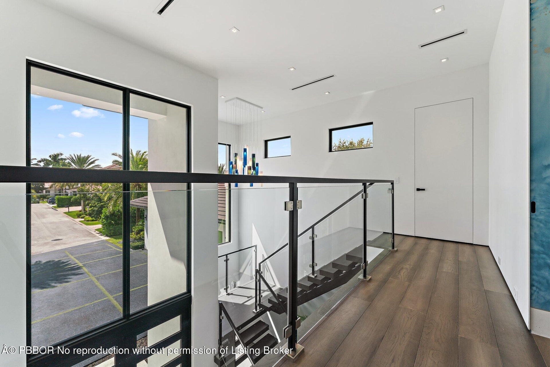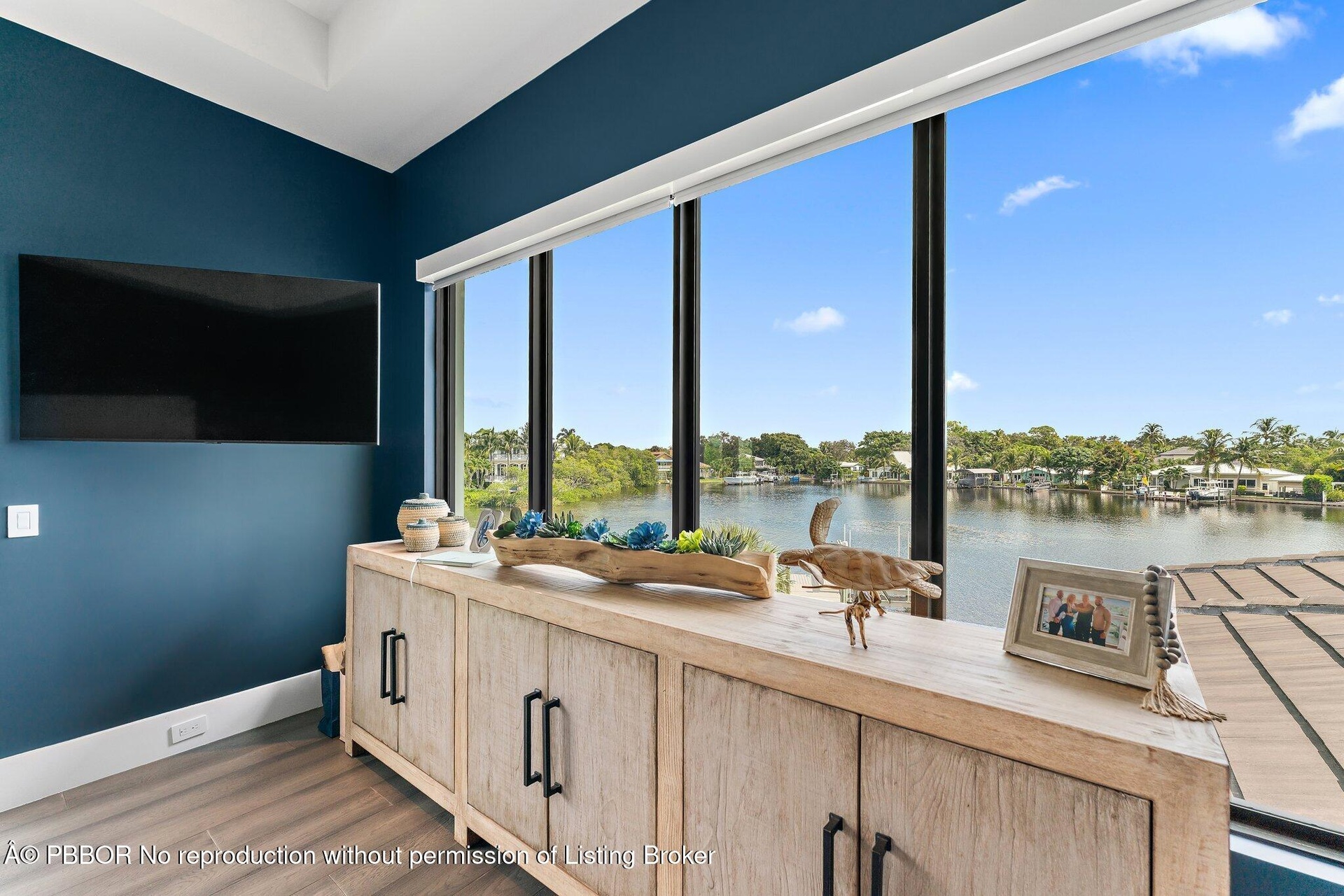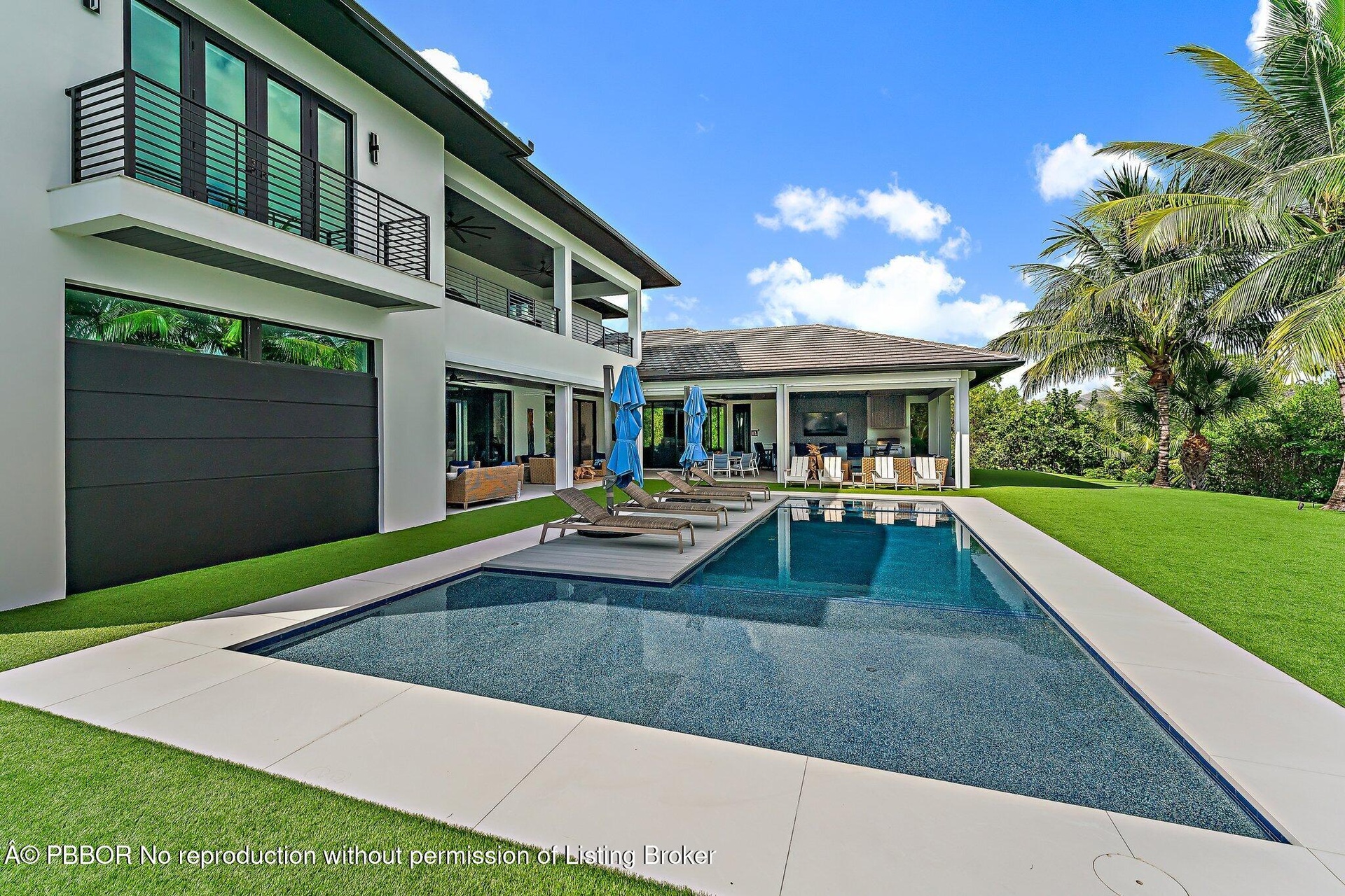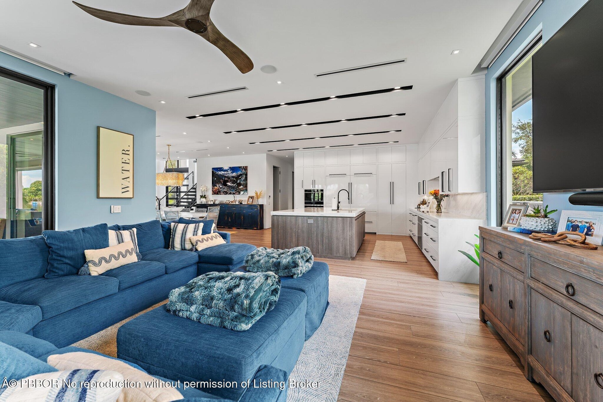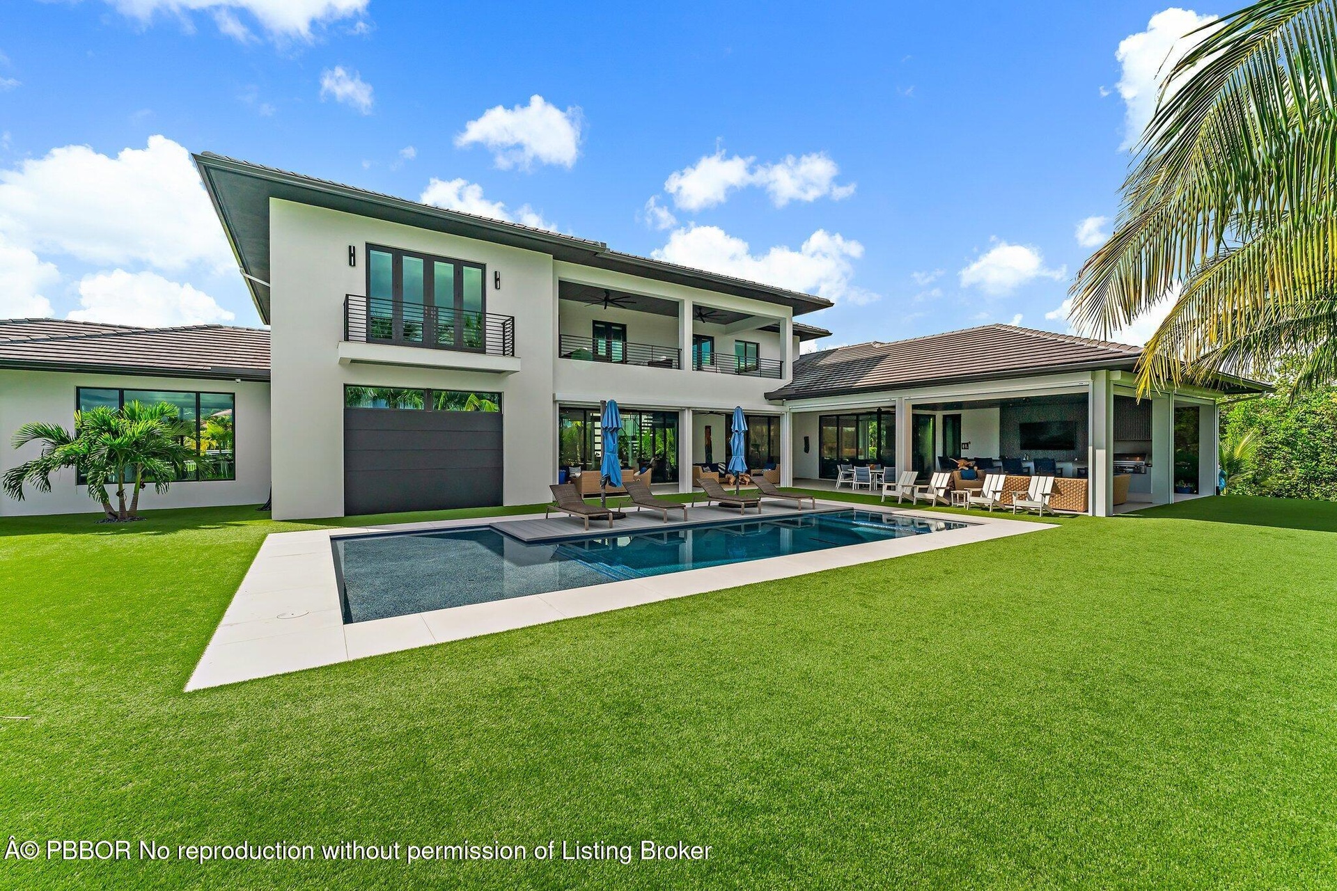 Located on a peninsula lot of 1.33 acres with 500 feet of deep waterfrontage on three sides with no fixed bridges, this truly is one of the finest waterfront properties in our area. Custom built in 2021 by Ocean Blue Custom Homes, this signature estate in the luxury, gated community - The Islands of Jupiter, meets the demands of the most sophisticated clients. Floor to ceiling walls of glass brings the outside in, offering a ''light and bright'' texture to a modern coastal interior palette. Views to the pool with spa, summer kitchen with bar, dock with two lifts, professional landscaping, and expansive backyard with endless artificial turf; all define a dreamlike setting for a family retreat. The current owner made the following additions/upgrades within the past 12 months: 24 KW generator, electric/hurricane screens, new pool resurfacing, under dock lights, all new light fixtures and ceiling fans, paint inside and out, garage storage cabinets, luxury flooring, new kitchen island counter top & back splash, bar top, primary bath counter top, and two sets of washers and dryers - one set for each floor. The primary suite and guesthouse are on the first floor, and three guest suites plus an expansive loft area and second laundry room occupy the second floor. Call today to view this amazing property that could be yours!