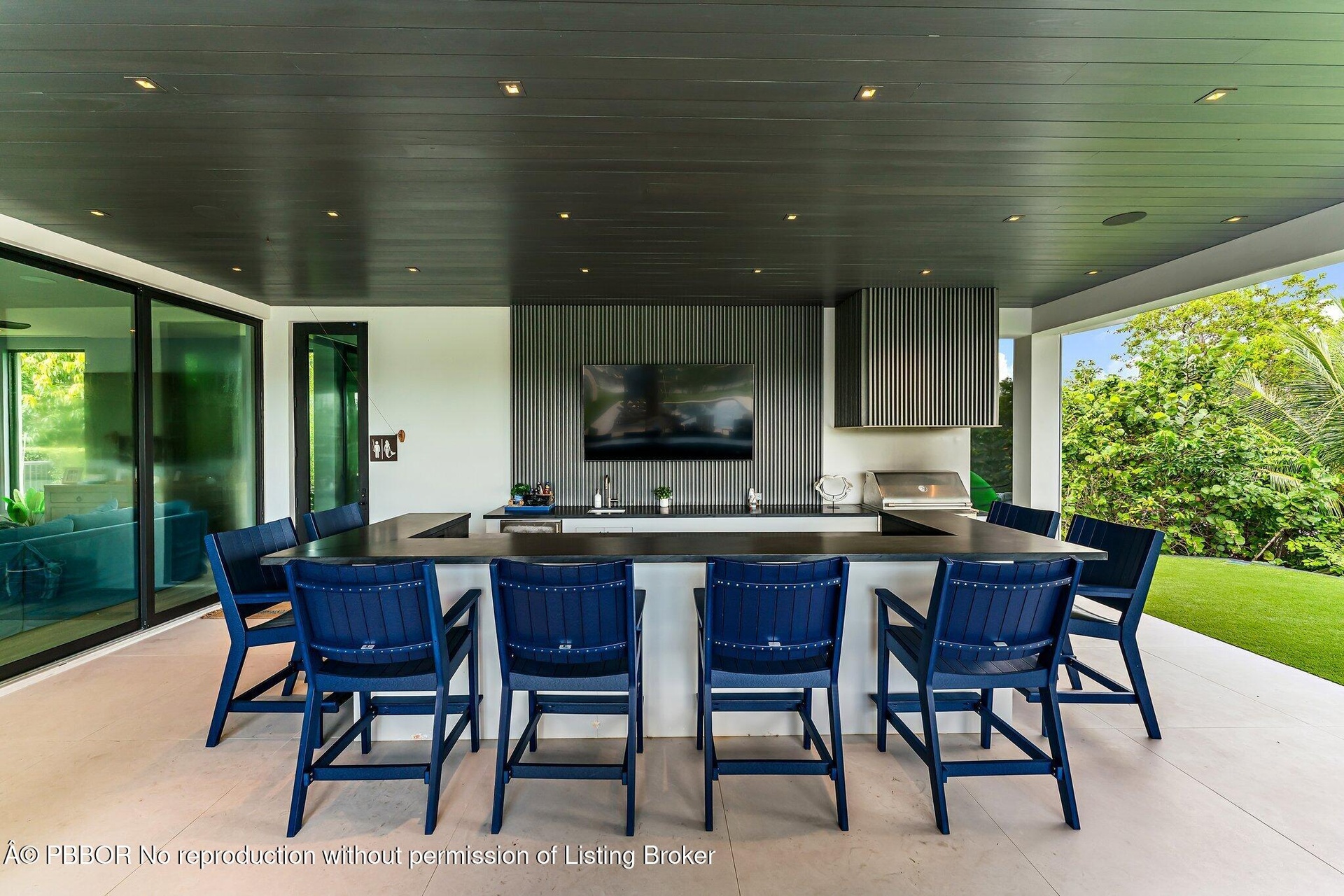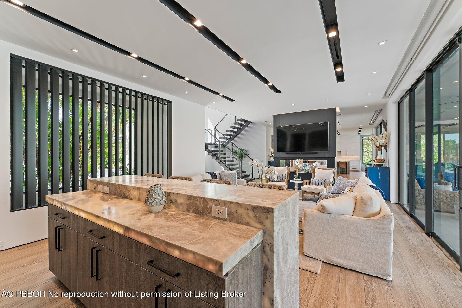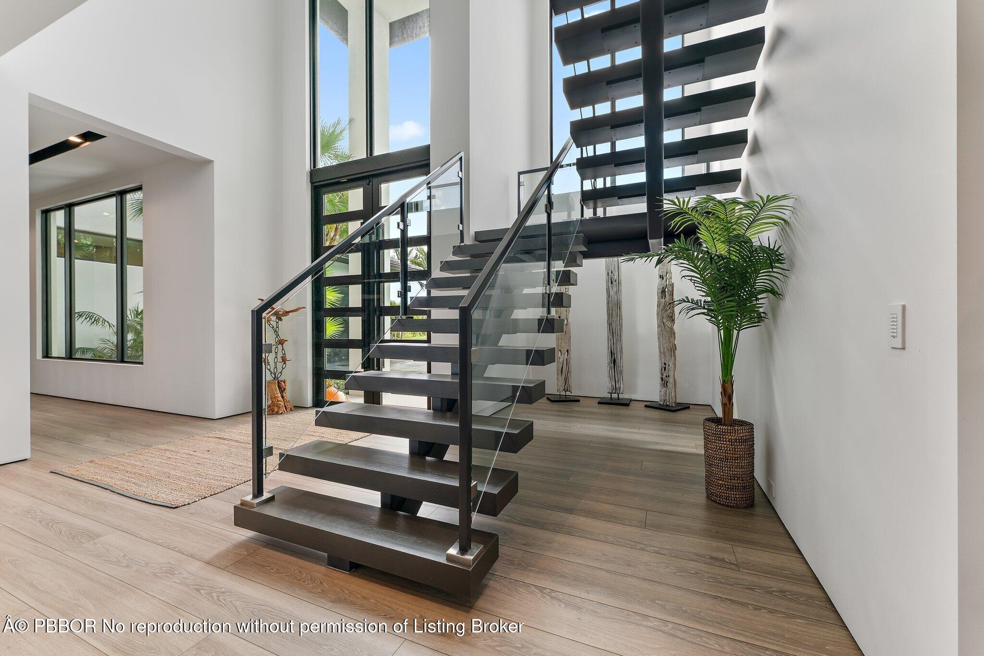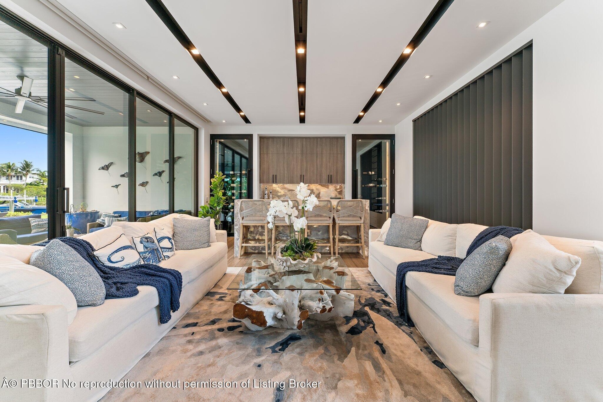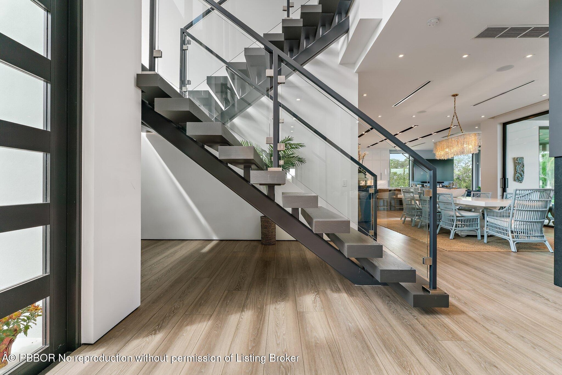 Located on a peninsula lot of 1.33 acres with 500 feet of deep waterfrontage on three sides with no fixed bridges, this truly is one of the finest waterfront properties in our area. Custom built in 2021 by Ocean Blue Custom Homes, this signature estate in the luxury, gated community - The Islands of Jupiter, meets the demands of the most sophisticated clients. Floor to ceiling walls of glass brings the outside in, offering a ''light and bright'' texture to a modern coastal interior palette. Views to the pool with spa, summer kitchen with bar, dock with two lifts, professional landscaping, and expansive backyard with endless artificial turf; all define a dreamlike setting for a family retreat. The current owner made the following additions/upgrades within the past 12 months: 24 KW generator, electric/hurricane screens, new pool resurfacing, under dock lights, all new light fixtures and ceiling fans, paint inside and out, garage storage cabinets, luxury flooring, new kitchen island counter top & back splash, bar top, primary bath counter top, and two sets of washers and dryers - one set for each floor. The primary suite and guesthouse are on the first floor, and three guest suites plus an expansive loft area and second laundry room occupy the second floor. Call today to view this amazing property that could be yours!
