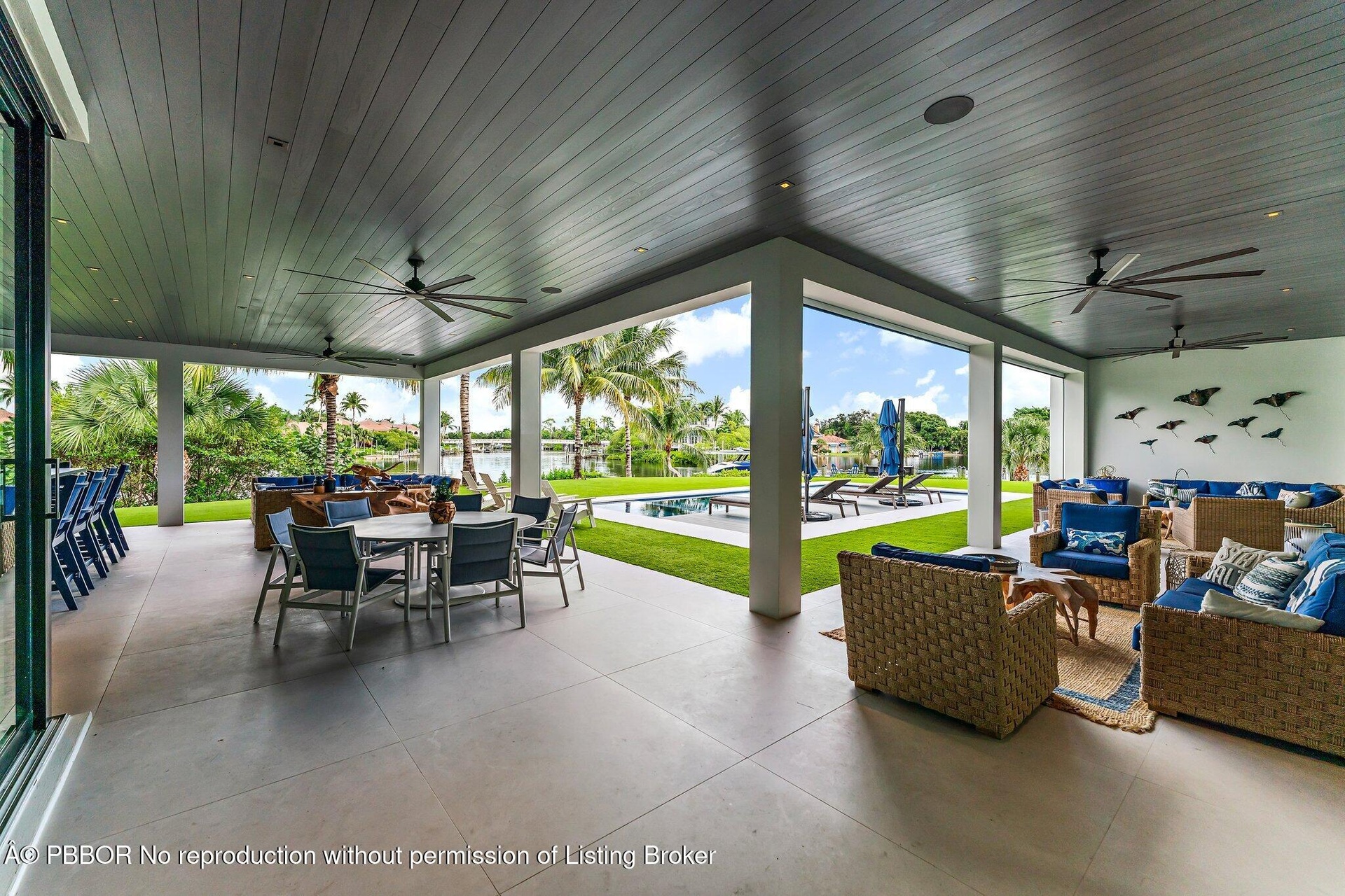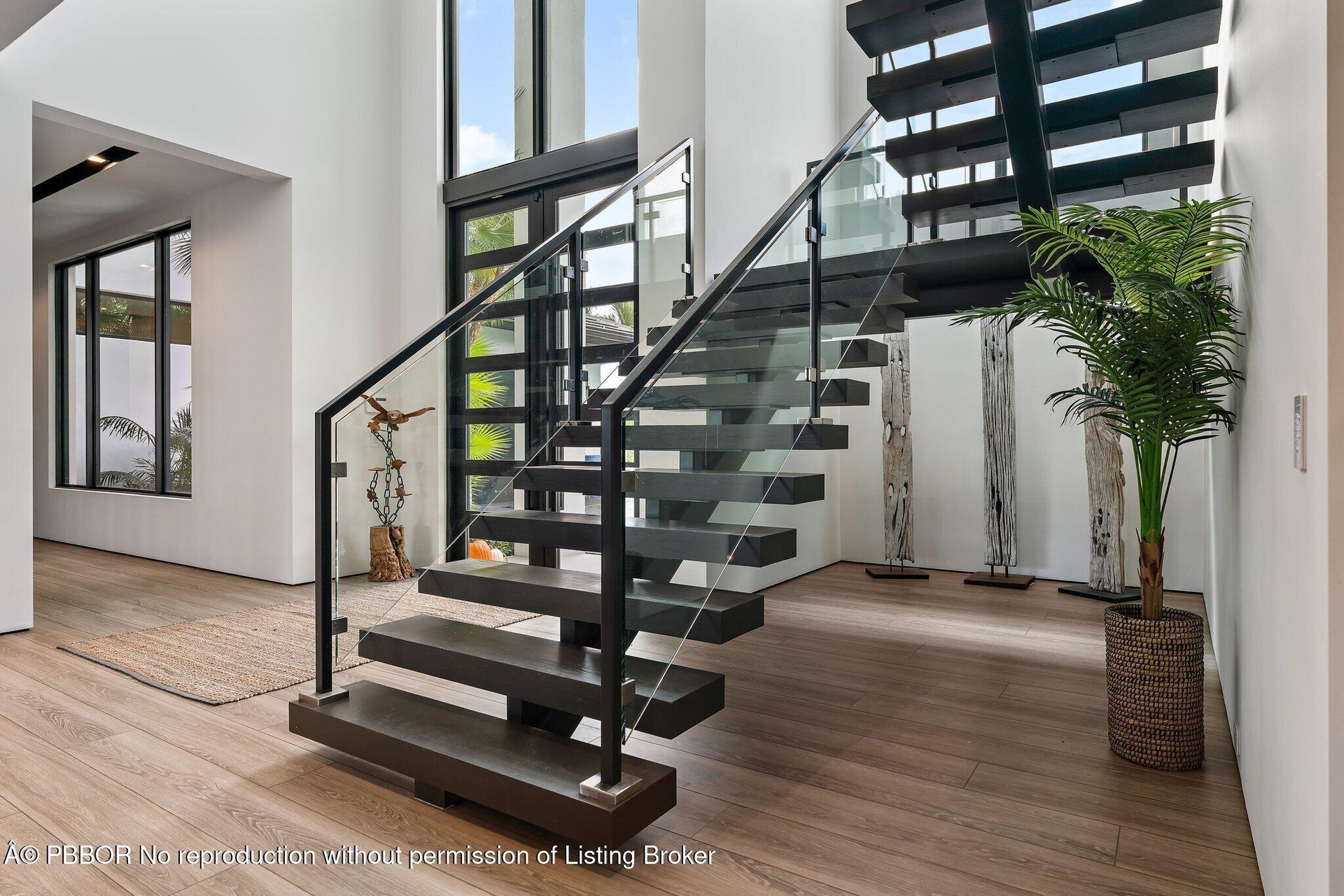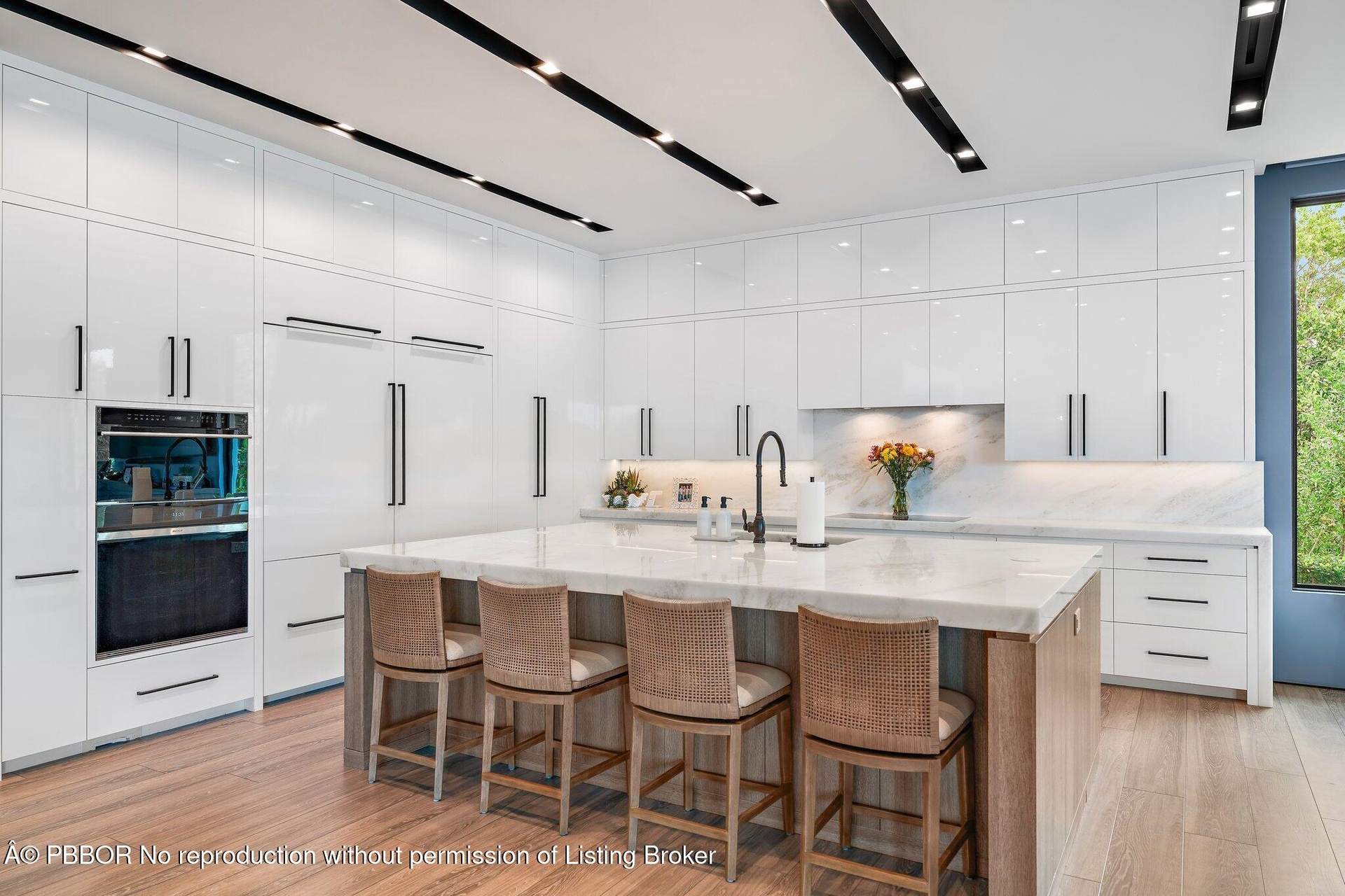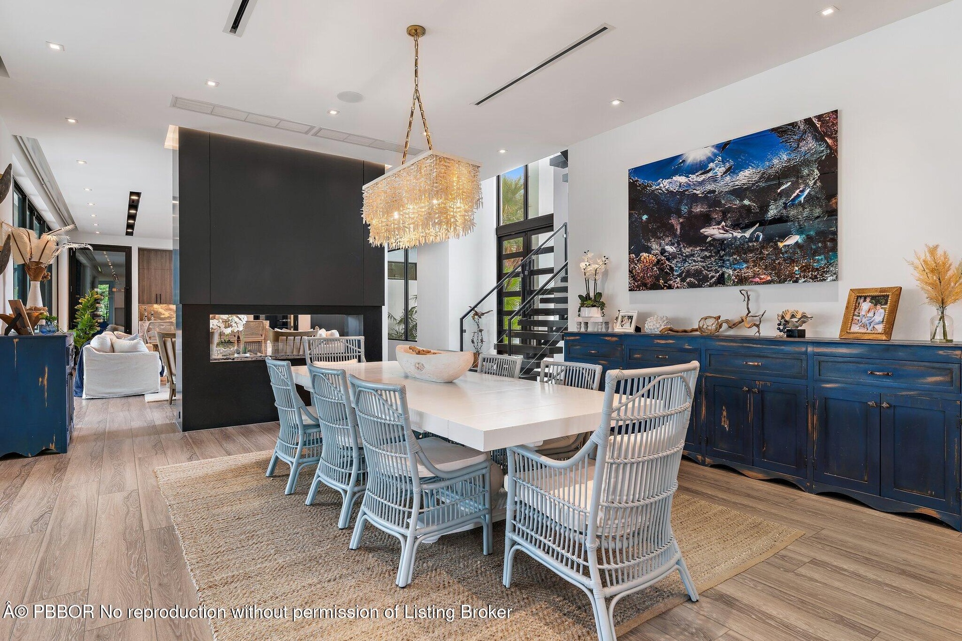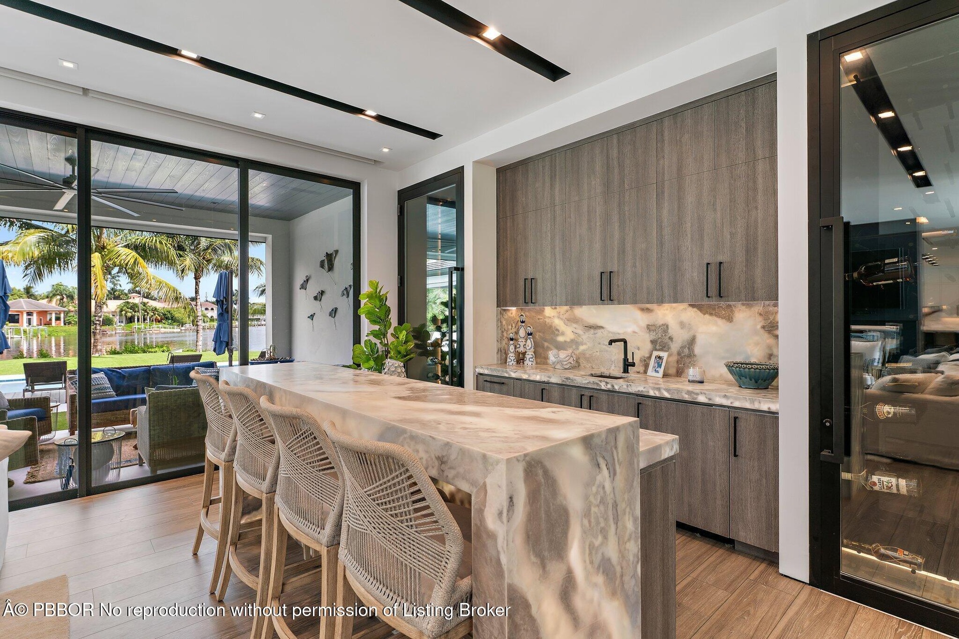 Located on a peninsula lot of 1.33 acres with 500 feet of deep waterfrontage on three sides with no fixed bridges, this truly is one of the finest waterfront properties in our area. Custom built in 2021 by Ocean Blue Custom Homes, this signature estate in the luxury, gated community - The Islands of Jupiter, meets the demands of the most sophisticated clients. Floor to ceiling walls of glass brings the outside in, offering a ''light and bright'' texture to a modern coastal interior palette. Views to the pool with spa, summer kitchen with bar, dock with two lifts, professional landscaping, and expansive backyard with endless artificial turf; all define a dreamlike setting for a family retreat. The current owner made the following additions/upgrades within the past 12 months: 24 KW generator, electric/hurricane screens, new pool resurfacing, under dock lights, all new light fixtures and ceiling fans, paint inside and out, garage storage cabinets, luxury flooring, new kitchen island counter top & back splash, bar top, primary bath counter top, and two sets of washers and dryers - one set for each floor. The primary suite and guesthouse are on the first floor, and three guest suites plus an expansive loft area and second laundry room occupy the second floor. Call today to view this amazing property that could be yours!