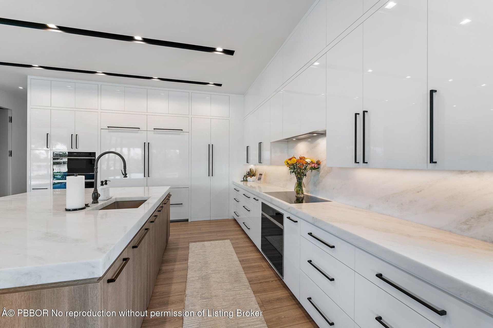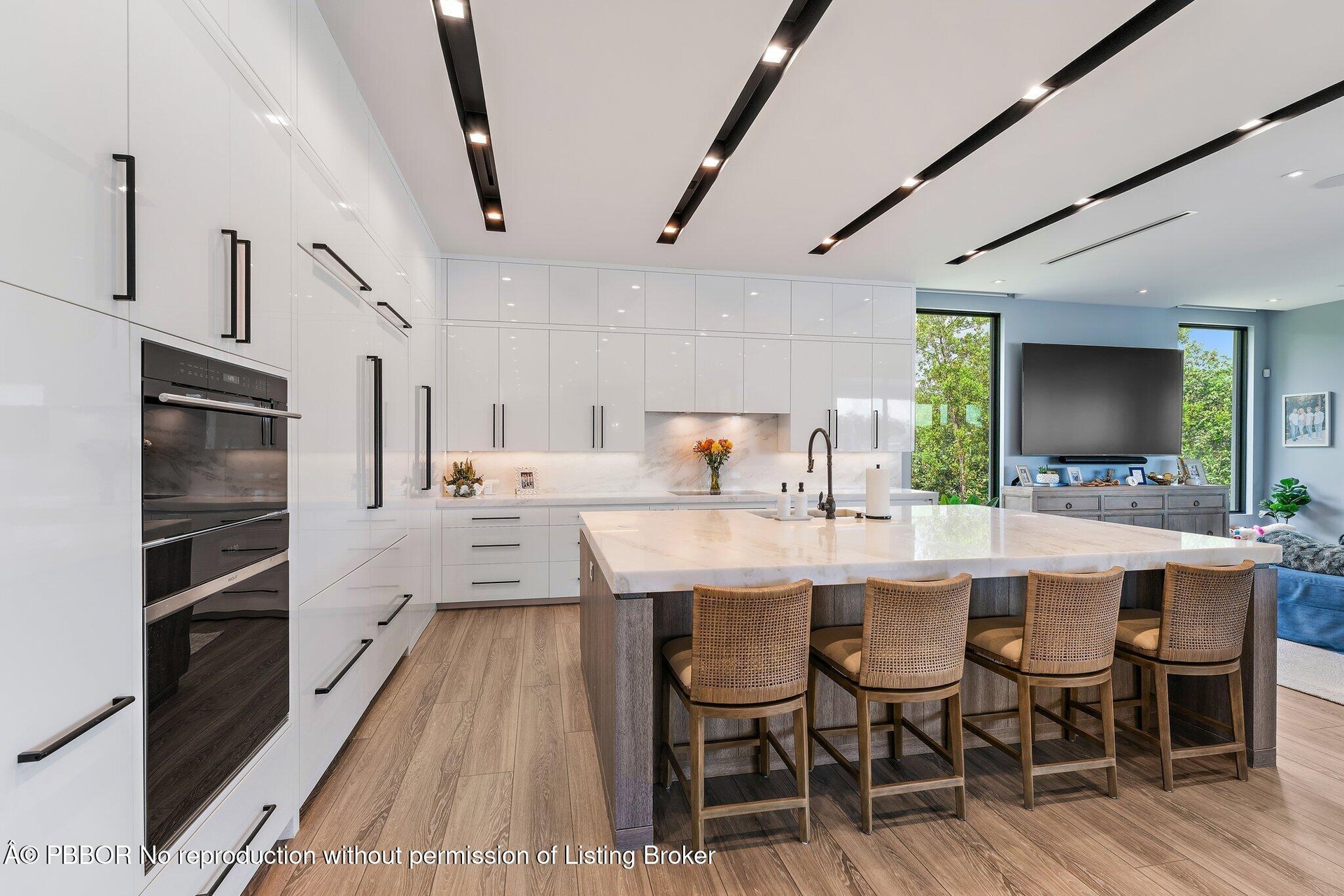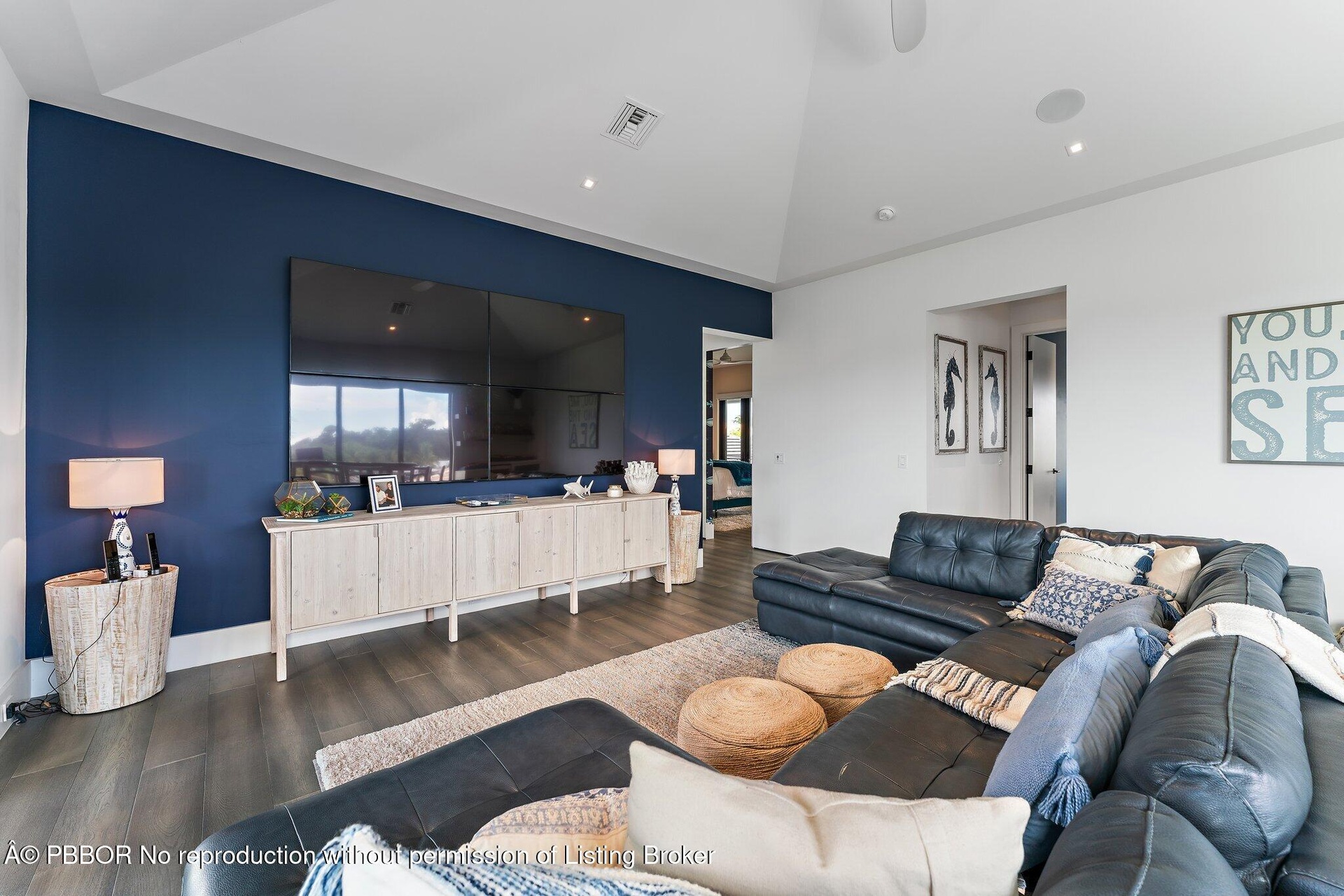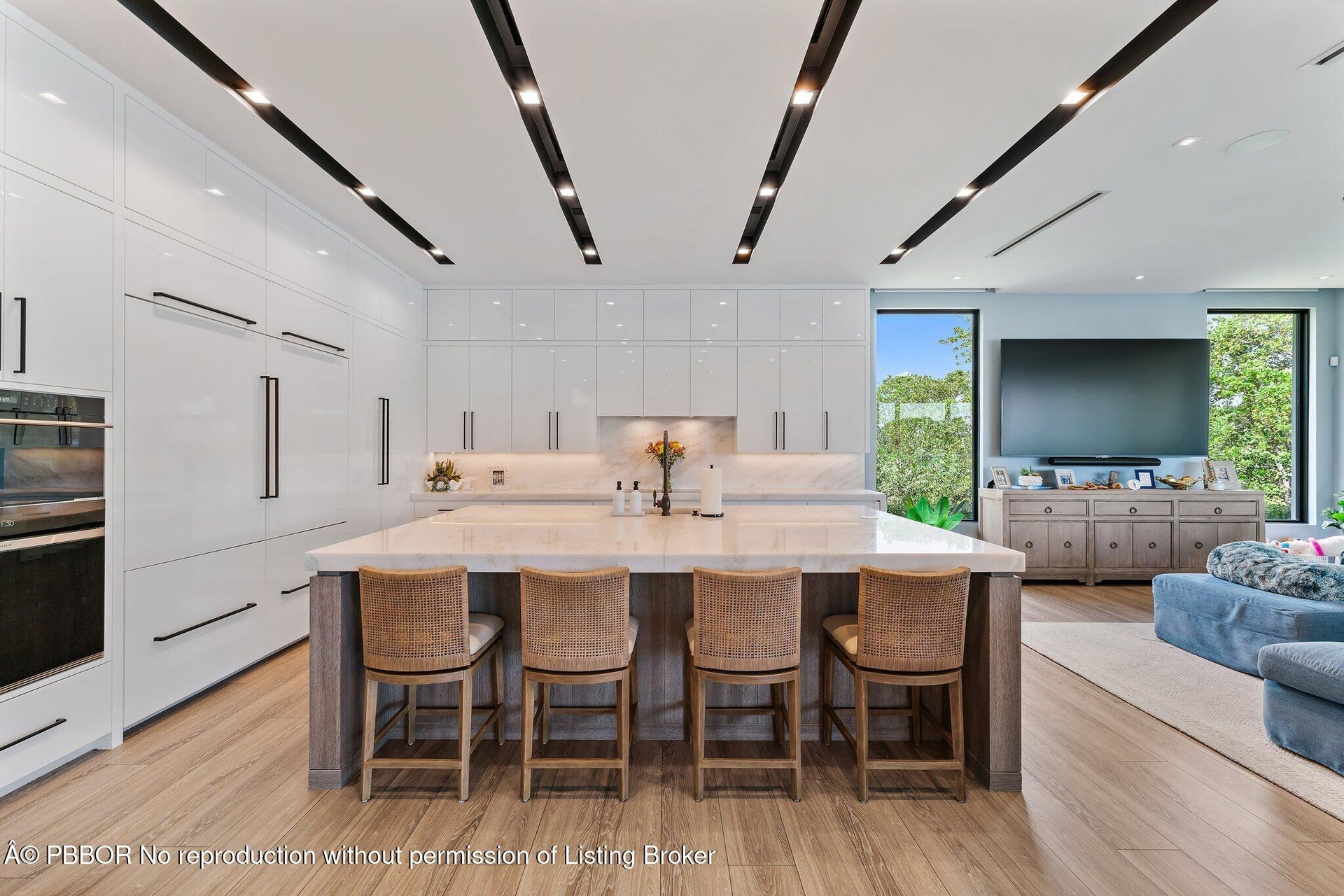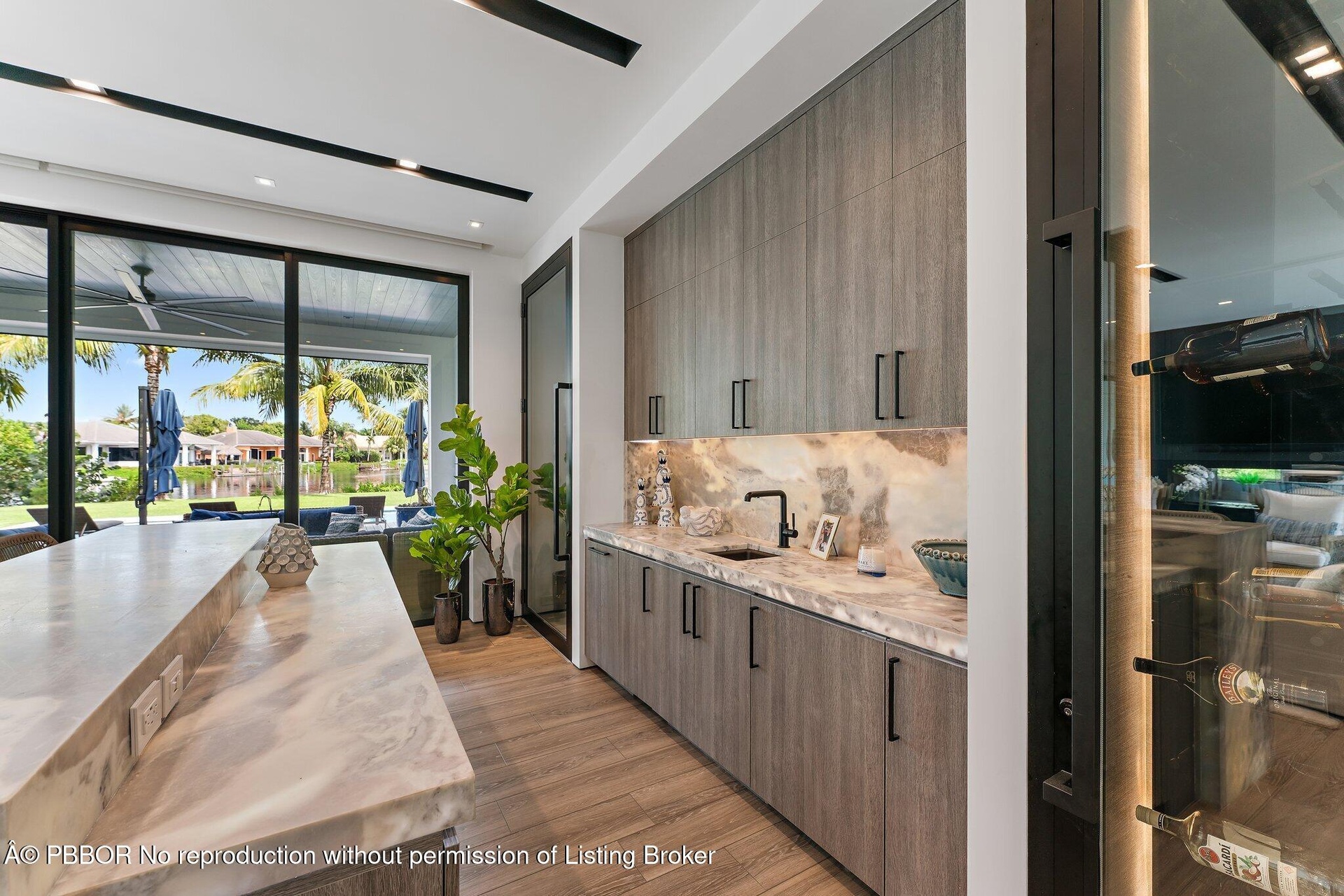 Located on a peninsula lot of 1.33 acres with 500 feet of deep waterfrontage on three sides with no fixed bridges, this truly is one of the finest waterfront properties in our area. Custom built in 2021 by Ocean Blue Custom Homes, this signature estate in the luxury, gated community - The Islands of Jupiter, meets the demands of the most sophisticated clients. Floor to ceiling walls of glass brings the outside in, offering a ''light and bright'' texture to a modern coastal interior palette. Views to the pool with spa, summer kitchen with bar, dock with two lifts, professional landscaping, and expansive backyard with endless artificial turf; all define a dreamlike setting for a family retreat. The current owner made the following additions/upgrades within the past 12 months: 24 KW generator, electric/hurricane screens, new pool resurfacing, under dock lights, all new light fixtures and ceiling fans, paint inside and out, garage storage cabinets, luxury flooring, new kitchen island counter top & back splash, bar top, primary bath counter top, and two sets of washers and dryers - one set for each floor. The primary suite and guesthouse are on the first floor, and three guest suites plus an expansive loft area and second laundry room occupy the second floor. Call today to view this amazing property that could be yours!