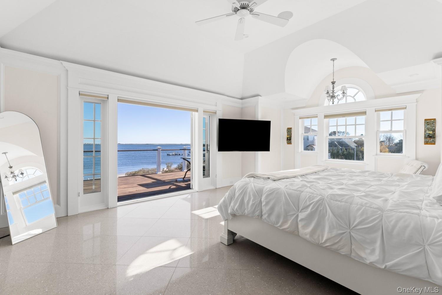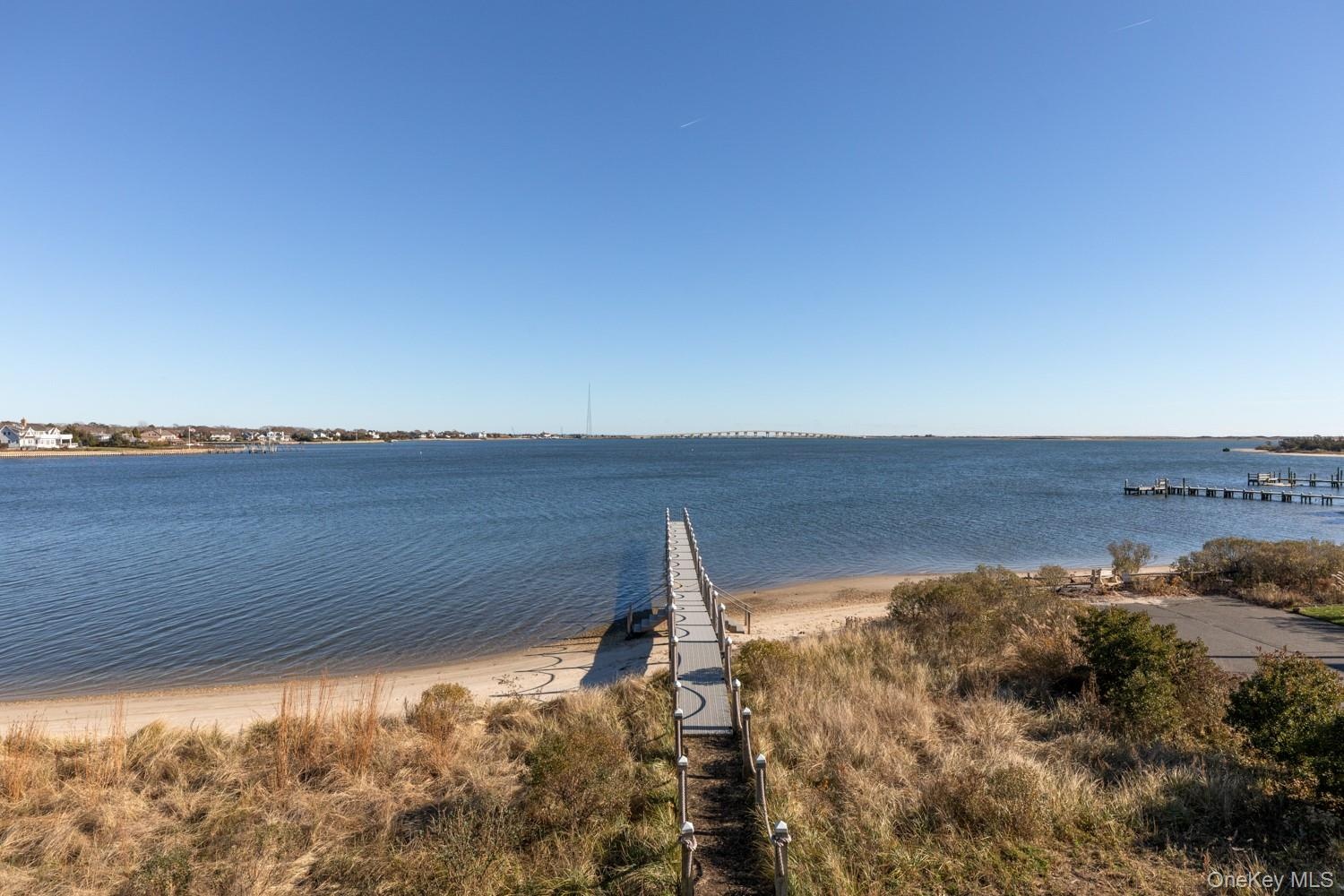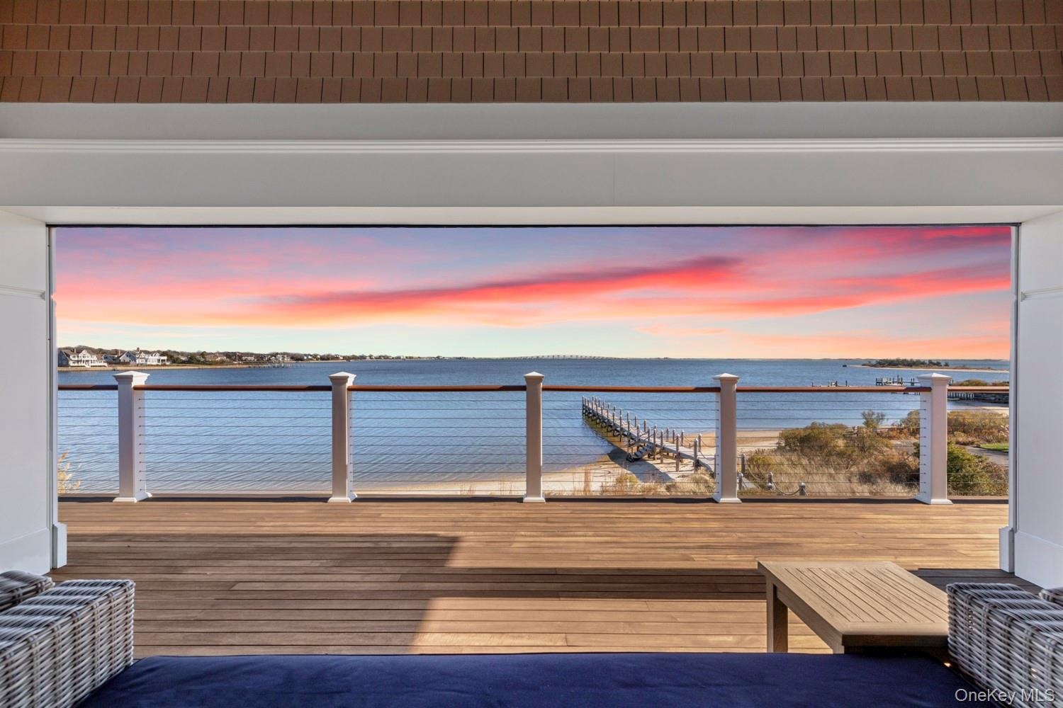 Now Available for the US Open. Set on 175 feet of private sandy beachfront with a 136' dock, this Shinnecock Bay residence offers a rare opportunity to enjoy direct waterfront living in a modern, spacious setting. Designed to highlight its panoramic bay views, the home features multiple elevations and extensive glasswork that capture natural light from morning through evening and create a smooth transition between indoor and outdoor spaces. The main level includes an open-concept living area and a chef's kitchen with Wolf appliances, pantry, and a wall of glass doors leading to the full-length mahogany deck. This outdoor area extends the living space toward the bay, infinity-edge pool, and spa. The first-floor waterfront primary suite provides two walk-in closets, a spa bath with jacuzzi, and private deck access. A separate guest suite with its own entrance, powder room, mudroom, and attached two-car garage complete the level. The second floor offers a secondary suite with terrace, a dedicated office, and a secondary living area with direct access to the upper full-length deck. Two additional en-suite bedrooms with walk-in closets, a laundry room, and a second powder room provide flexibility for extended stays and hosting guests. Both levels feature expansive rear decking, enhancing circulation and emphasizing the home's orientation toward the bay. Situated south of the highway, the home is close to marinas, beaches, and local dining, offering convenience only minutes away. With substantial water frontage, docking capability, and modern construction, the home presents a rare rental option in a highly desirable waterfront setting. Its versatile layout, multiple outdoor living areas, and direct bay access provide an environment well suited for relaxation, entertaining, and time spent along the Hamptons coastline. June $100k | August $60k | September $40k | Off Season $35k/month.
