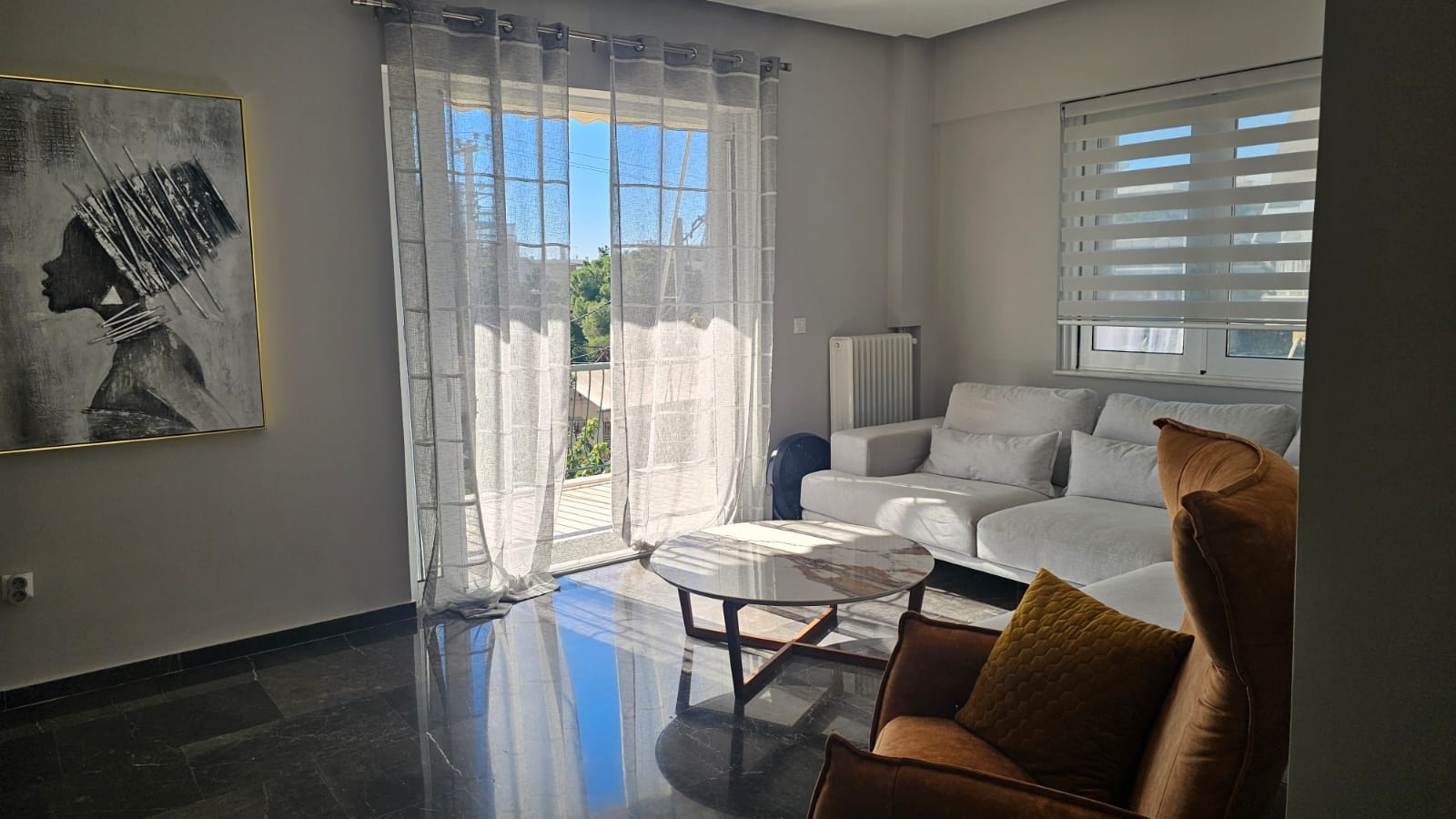 A 75sqm Apartment nestled in Voula, set in a quiet and tranquil street, very near to a large park and just 650m from the Voula beach.