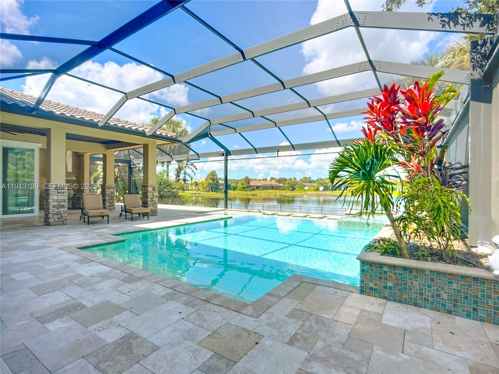 Enjoy resort-style outdoor living with a covered lanai, summer kitchen, heated saltwater pool, and spa—perfect for Florida living year-round.