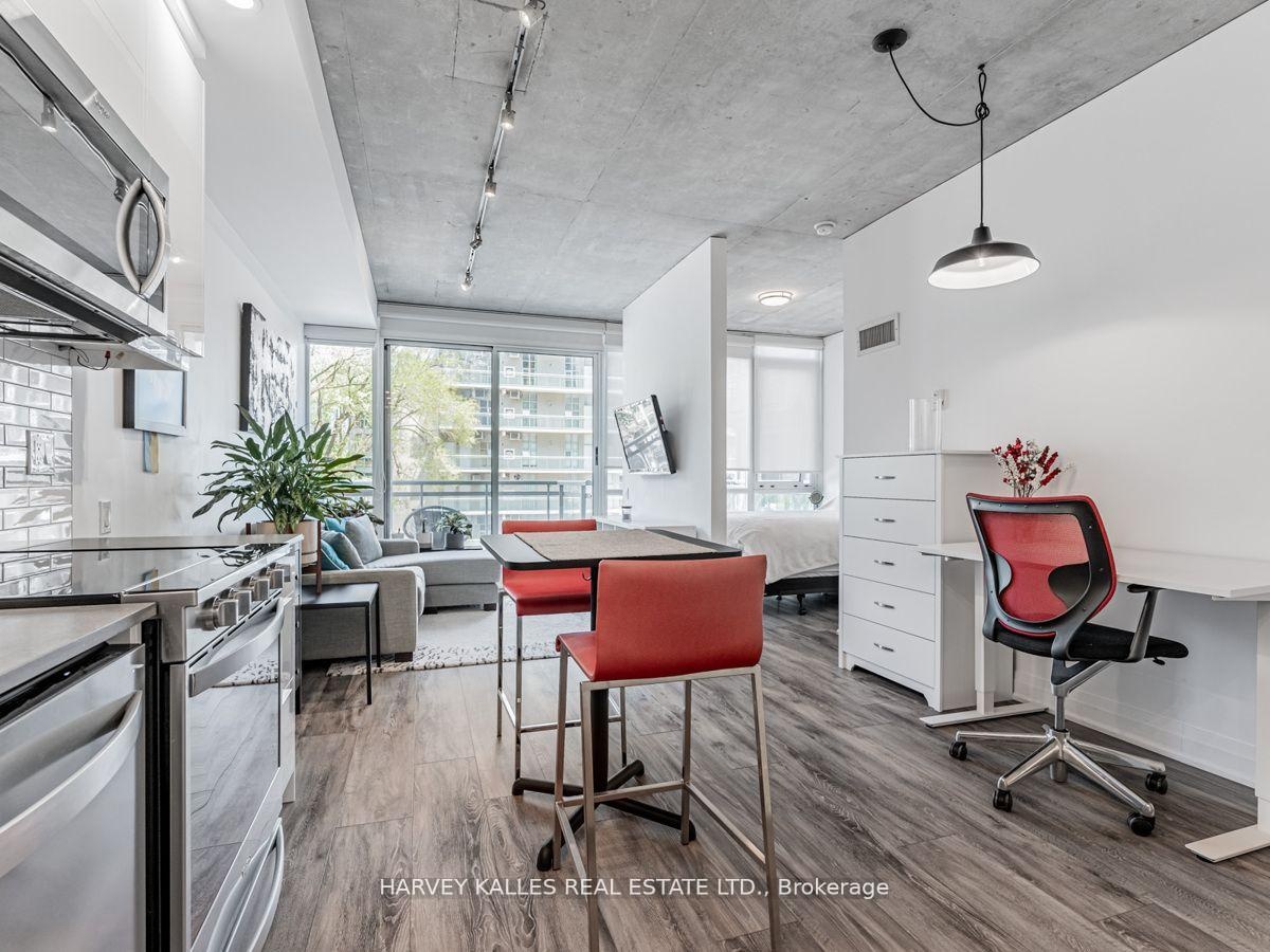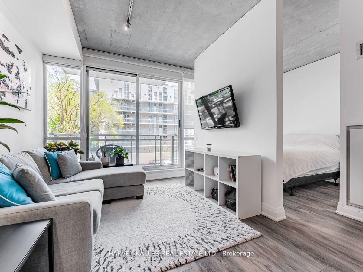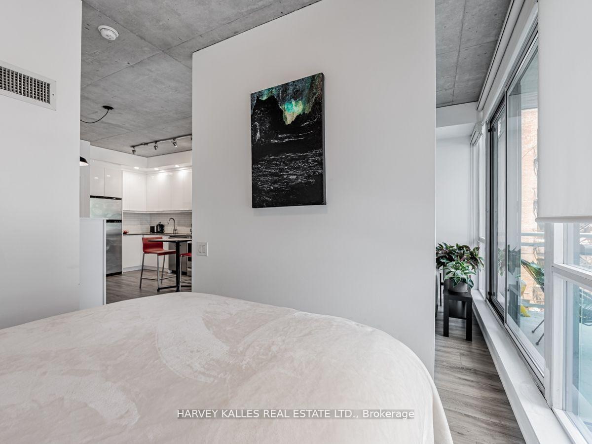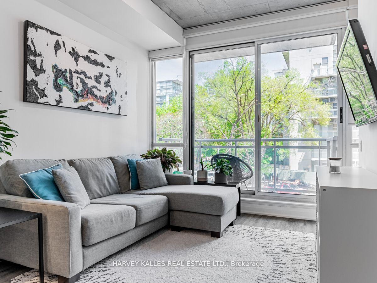 Updated, fully furnished unit in a quiet, boutique building on a tucked-away street, steps to King West. Ideal for downtown professionals, the unit features wide plank floors, 9 foot exposed concrete ceilings, a renovated kitchen, updated bathroom, pot lights, and a bright east-facing balcony. Offered fully furnished with bedding, towels, cookware, glassware, utensils, and kitchen appliances- move in with just a suitcase! TTC streetcar at your doorstep. Walk to King West offices, Farm Boy, 1Hotel, Liberty Village, Victoria Memorial Square, top restaurants, fitness studios, Trinity Bellwoods, and waterfront trails. Rent includes hydro, internet and storage locker. One (1) Year Term Only. AAA Tenant. Available February 15th onwards. Available unfurnished $2,200/month. Parking available for lease separately $200/month.
