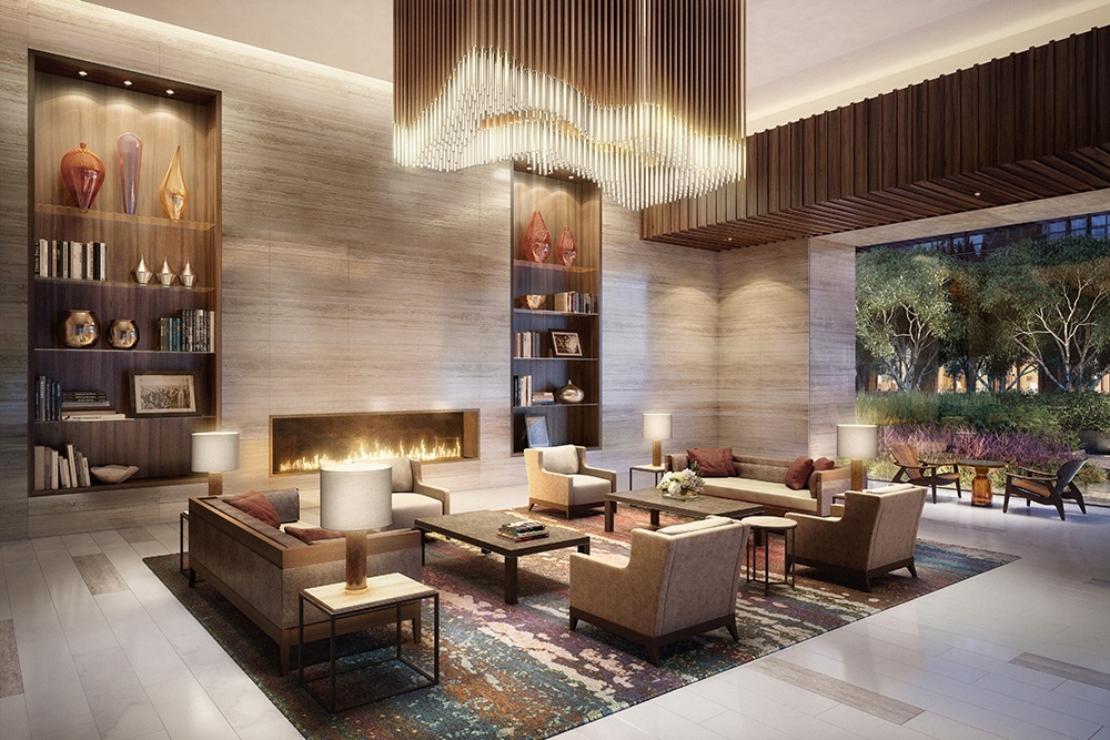 Additional conveniences include an in-unit washer and dryer and year-round zoned climate control provided by a four-pipe fan coil HVAC system.