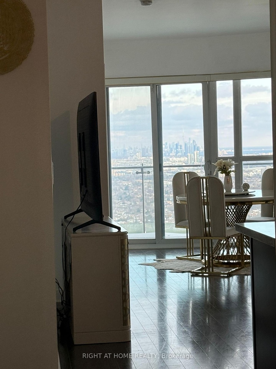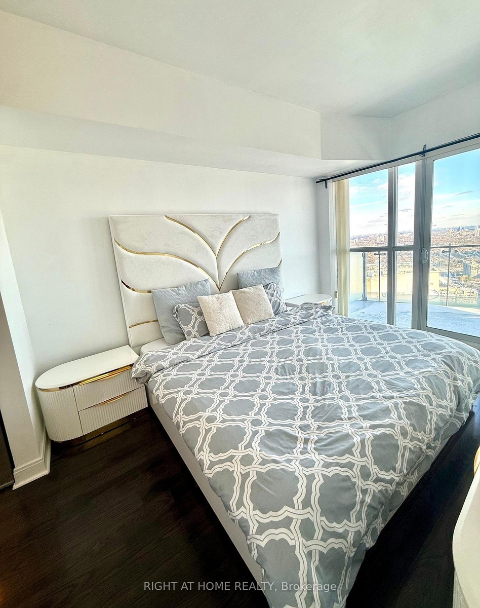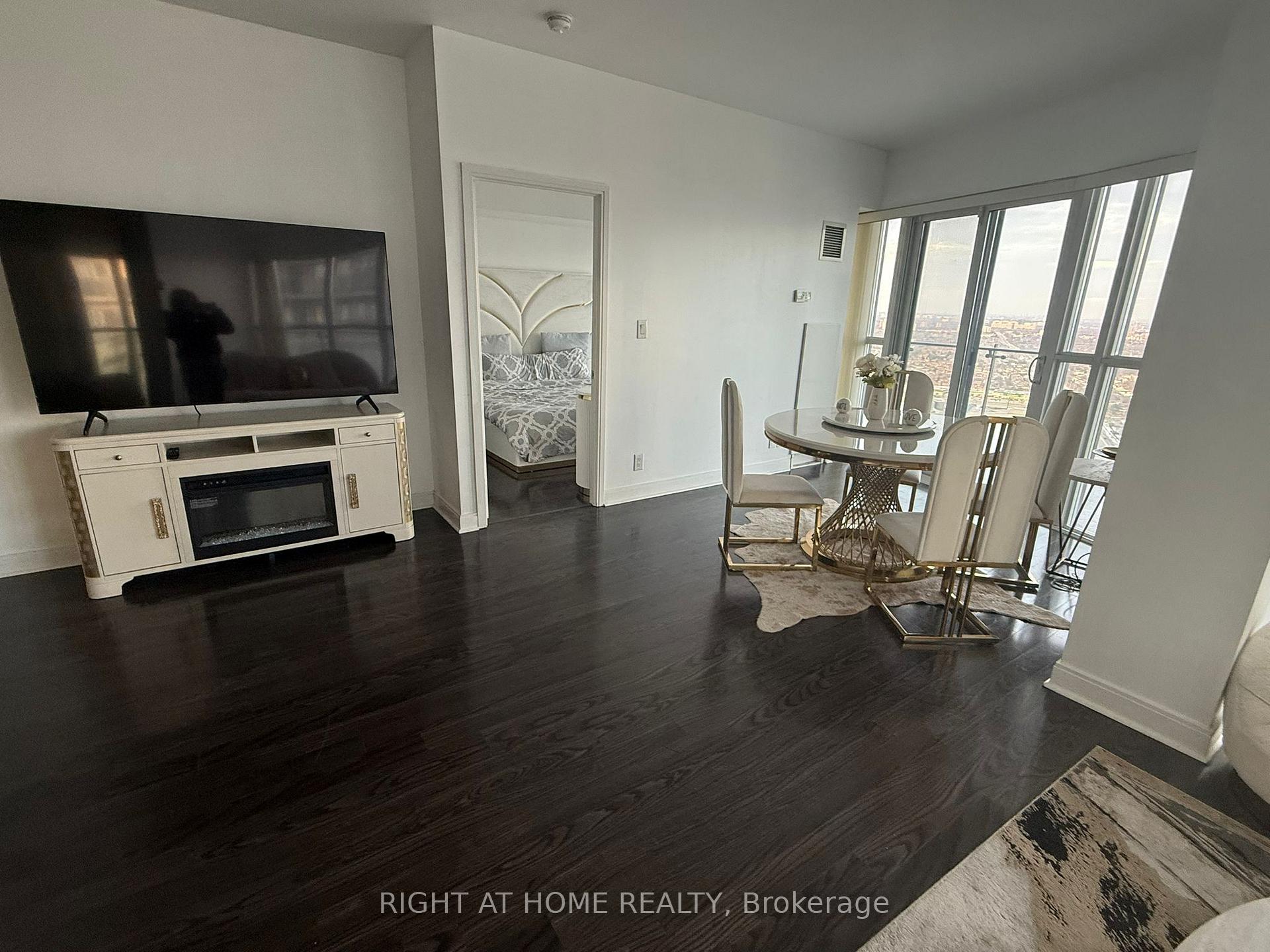 COMPLETELY FURNISHED Luxury suite with breathtaking, unobstructed Toronto skyline views from every room! Features a spacious, high-ceiling layout, two full washrooms, and a rare wrap-around balcony with access from every room. Upgraded with stainless steel Samsung appliances, including an air-fryer range. One of the building's most desirable floor plans, Ultra safe with fob-restricted floor access and only 8 suites per level. 24 hour concierge and gatehouse entry ensuring upmost privacy and safety! Largest amenities in all of Mississauga including exclusive playground, gym, indoor and outdoor pool and more! Includes Complete King size bedroom set, Queen Size bed set, Dining Table, Sofa love and coffee tables and a Fireplace!