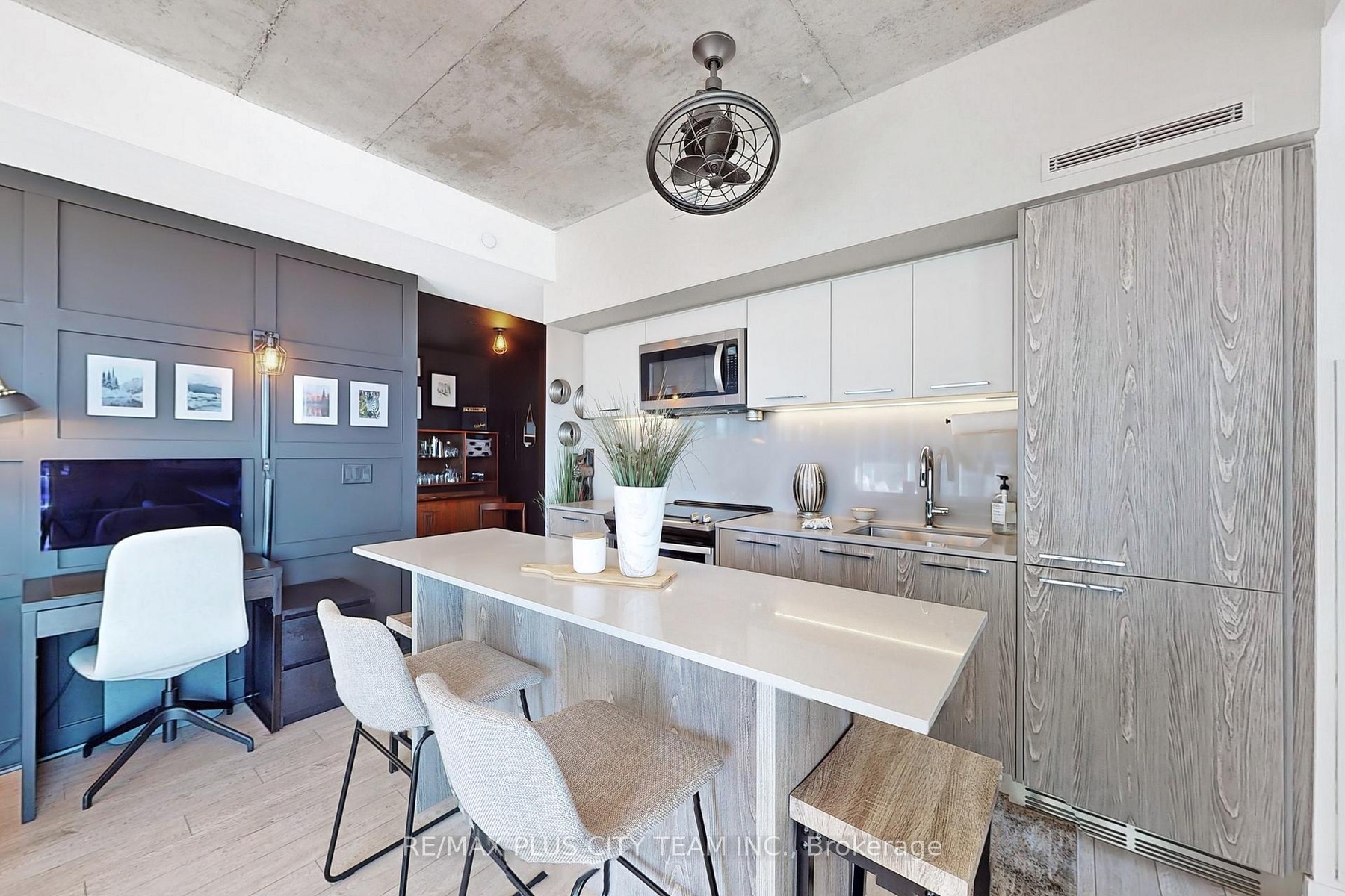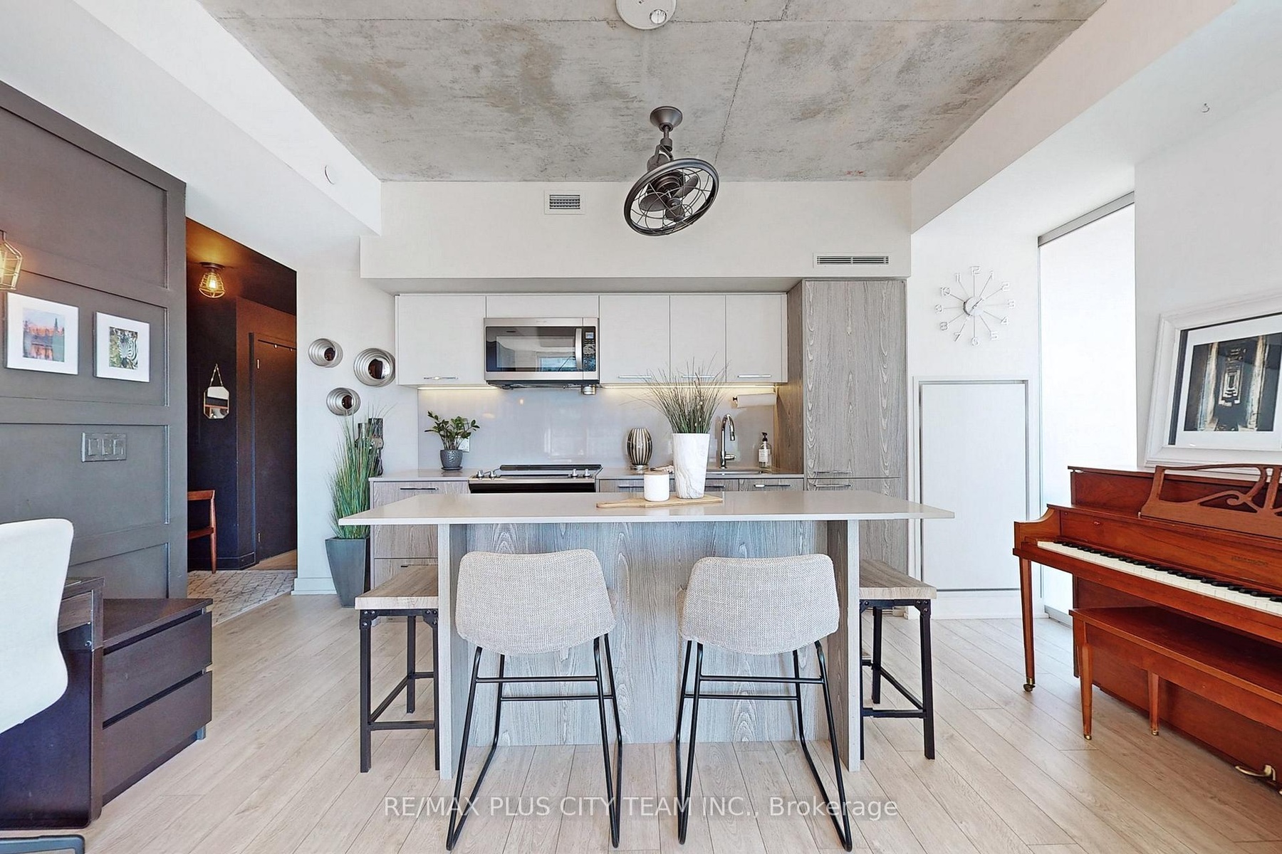 Welcome to Riverside Square, where modern loft-style living meets urban convenience. This fully furnished 2-bedroom + den, 2-bathroom corner suite offers an expansive open-concept layout filled with natural light from floor-to-ceiling windows. The space features exposed concrete ceilings, a sleek contemporary kitchen with integrated appliances, a central island, and stylish finishes throughout. The den provides added versatility-perfect for a home office or creative space. Building amenities include a rooftop infinity pool, fitness centre, billiards room, rooftop deck with BBQs, visitor parking, and meeting and party rooms, offering everything you need for an elevated downtown lifestyle. Ideally located just steps from Queen Street East, this vibrant community puts you within walking distance of restaurants, cafes, bars, shops, parks, and the Broadview Hotel, with easy access to TTC transit and the Don Valley Parkway. With a Walk Score of 92, everything you need is right at your doorstep. Simply unpack and enjoy the best of Toronto's east end lifestyle in this bright, beautifully designed urban retreat.