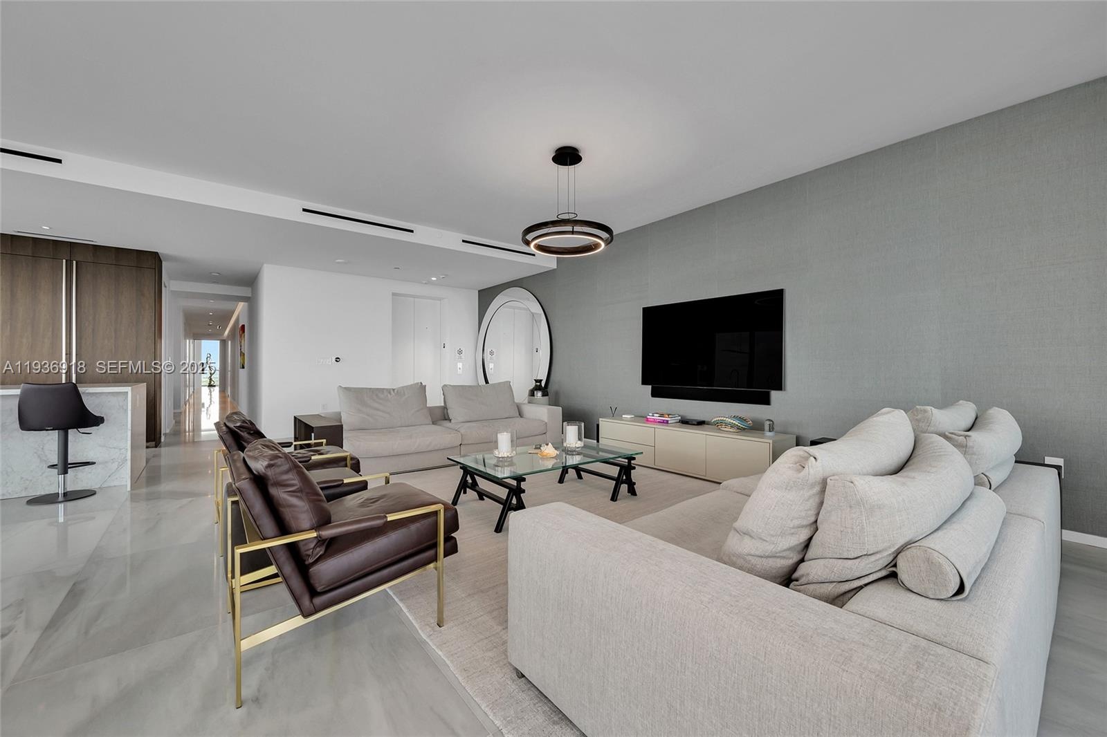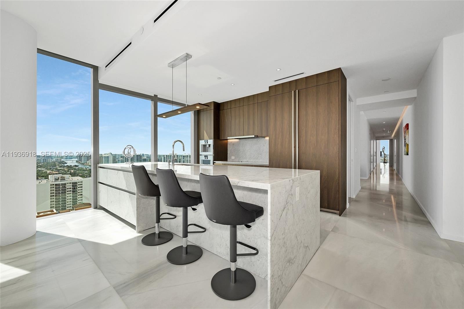 Seller motivated, Turnkey residence, South East corner on the 30th floor with a unique floor plan that offers bigger bedrooms than any other unit in the building including a linen closet. This 3Bed, 3.5 baths has the best panoramic views, completely unobstructed to Golden beach. Residence comes with high end furnishing as well as the highest upgrades like Marble floors, Boffi custom Kitchen and Shadetec window treatments throughout the residence that create a seamless blend of modern coastal luxury and refined comfort. Sitting directly on the sand enjoy stunning sunrise coffee and sunset lounging effortlessly from your residence. The building features 24 hr. concierge, facial recognition access, and resort style amenities that include beach service, an east and west pool decks, spa pavilion with a yoga studio, sauna, ice room and Gym.