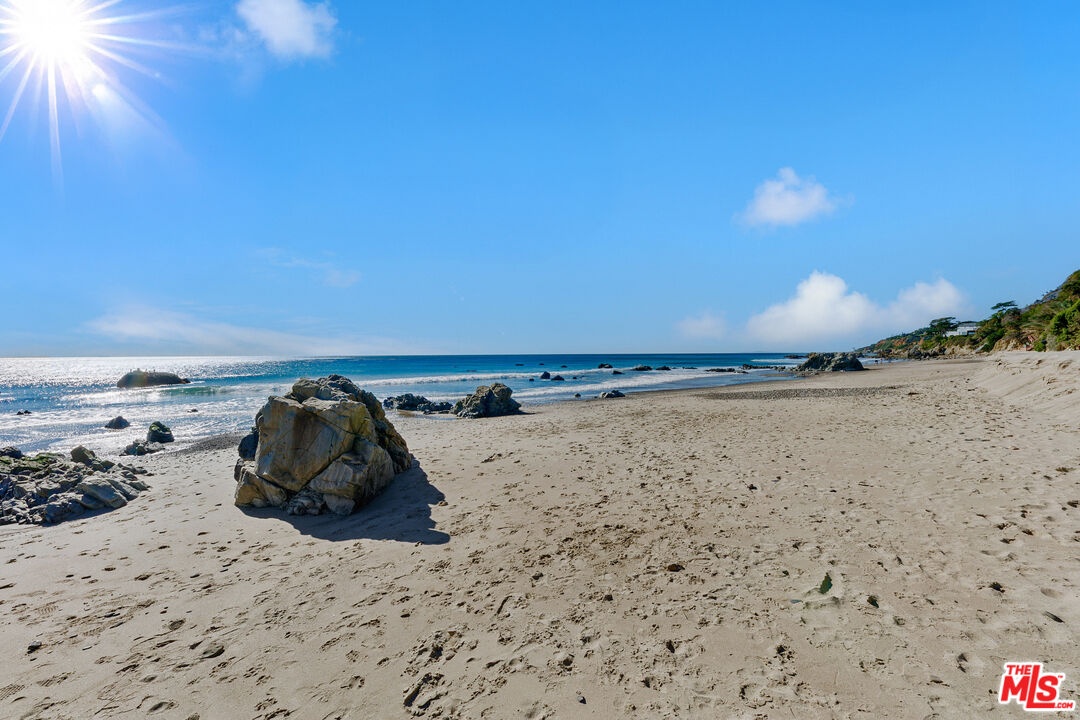 Ocean-view Cape Cod residence available now for lease on Upper Broad Beach. Situated on a quiet cul-de-sac in one of Malibu's most sought-after neighborhoods, this four-bedroom home offers sweeping coastal views, convenient beach access, and a relaxed yet refined atmosphere. The interior features an open floor plan with generous volume, wide-plank wood floors, and recessed lighting throughout. The living room showcases vaulted ceilings, a fireplace, and expansive sliding glass doors that open to a sun-soaked balcony with endless ocean views ideal for indoor-outdoor living. An open-concept kitchen with a breakfast bar flows with ease into an impressive dining room with direct access to the backyard. The primary suite is a peaceful retreat, complete with its own ocean-view balcony, spacious walk-in closet, and en-suite bath with soaking tub and walk-in shower. On the lower level, a private guest suite offers an en-suite bathroom and a separate entrance. Two additional bedrooms, a third full bathroom, and an attached two-car garage complete the layout, allowing flexibility for family living, guests, a home office, or a home gym. Verdant outdoor spaces surround the home, featuring a hedged front lawn and a lush backyard with a deck, expansive brick patio, and gazebo set beneath mature trees. Moments from Lechuza Beach access and just minutes from the shops and dining at Trancas Country Market, this home offers the best of Malibu coastal living.