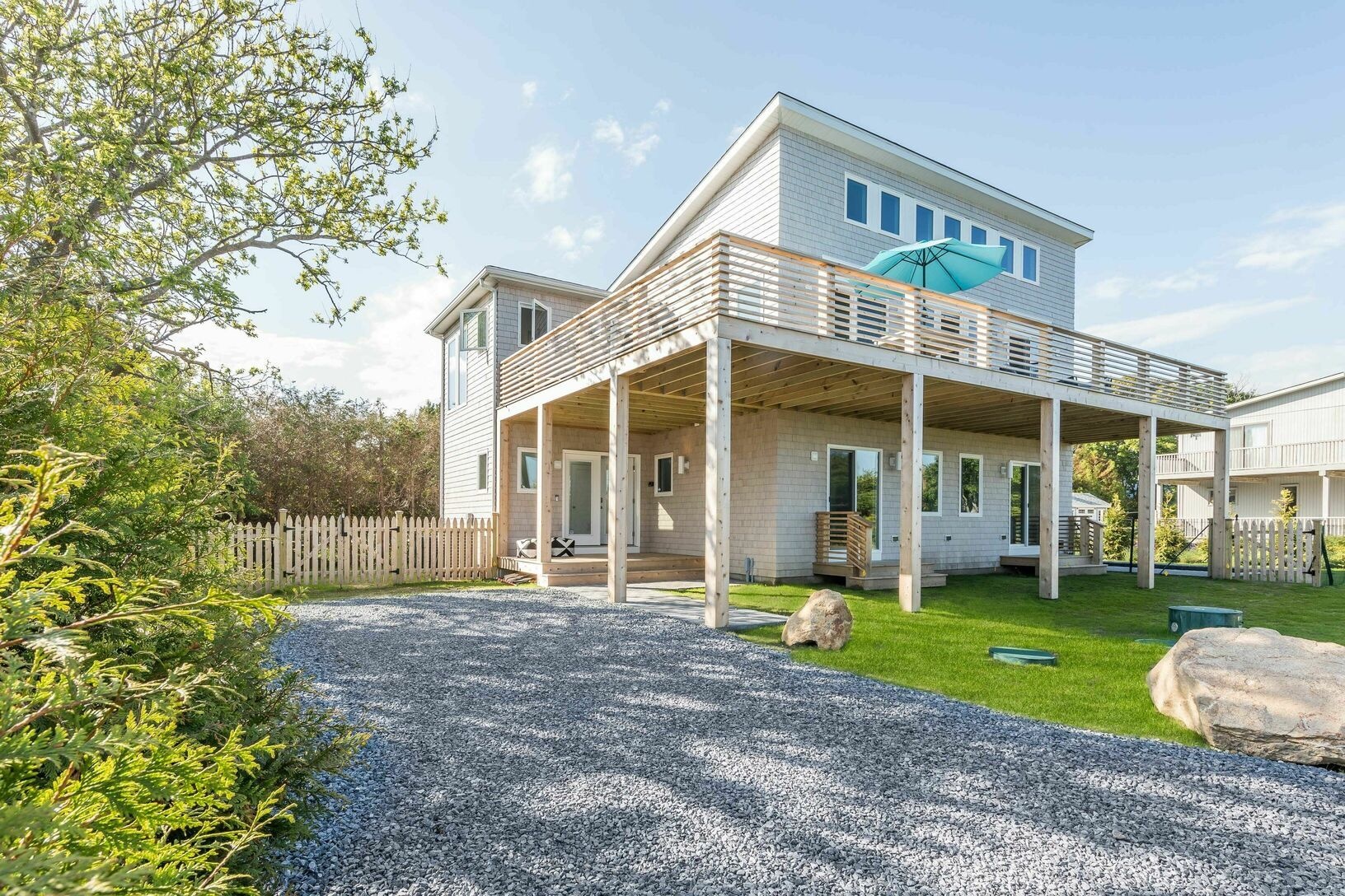 Brand new 4 bedroom, 3 1/2 bath Montauk home directly across from the ocean with Hither Hills ocean beach rights. This upside down house has an open concept kitchen and great room with a wall of windows and sliders allowing access to a large wrap around deck and unobstructed ocean views. A gunite pool and outdoor shower just adds to the fun.