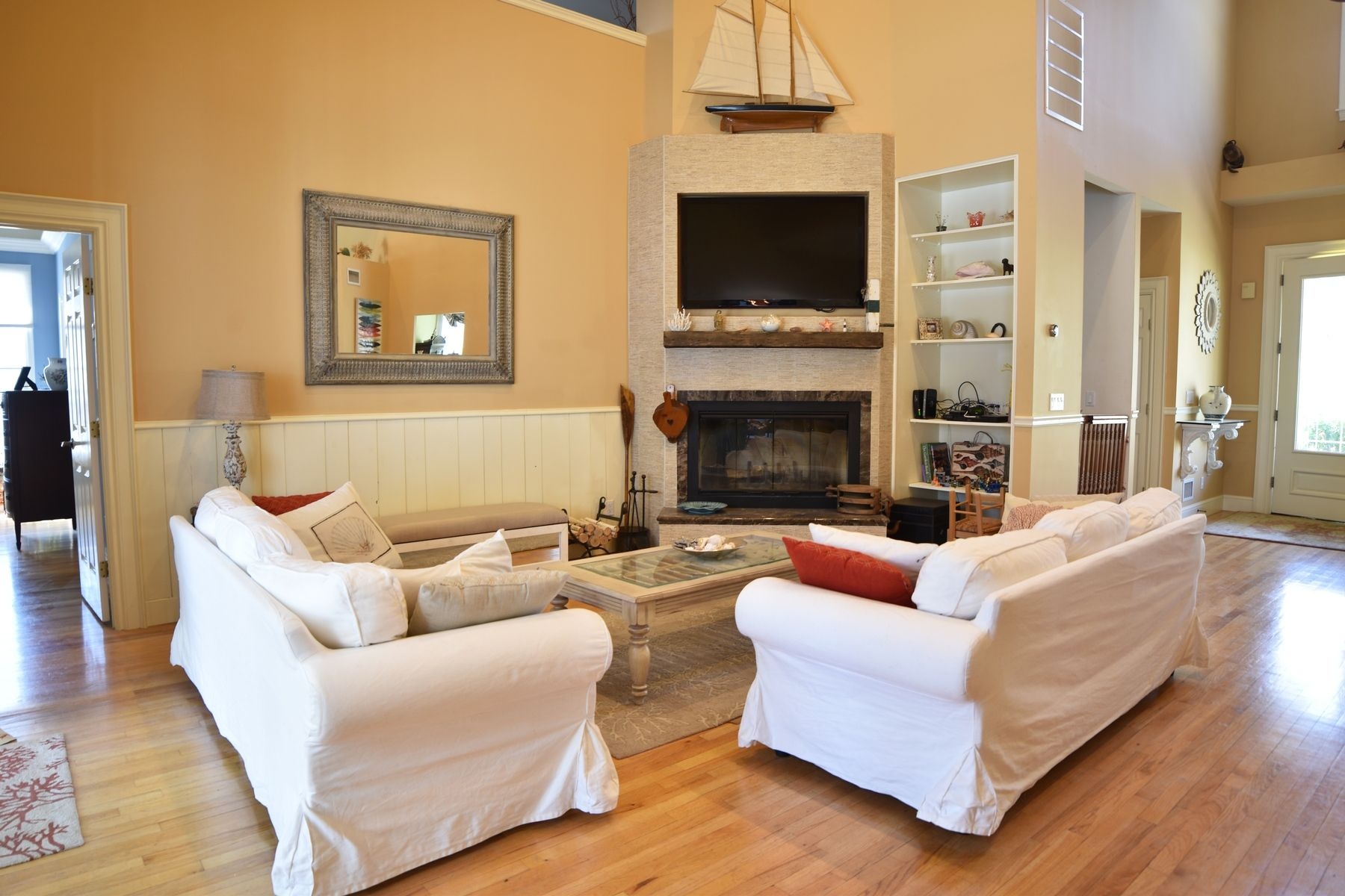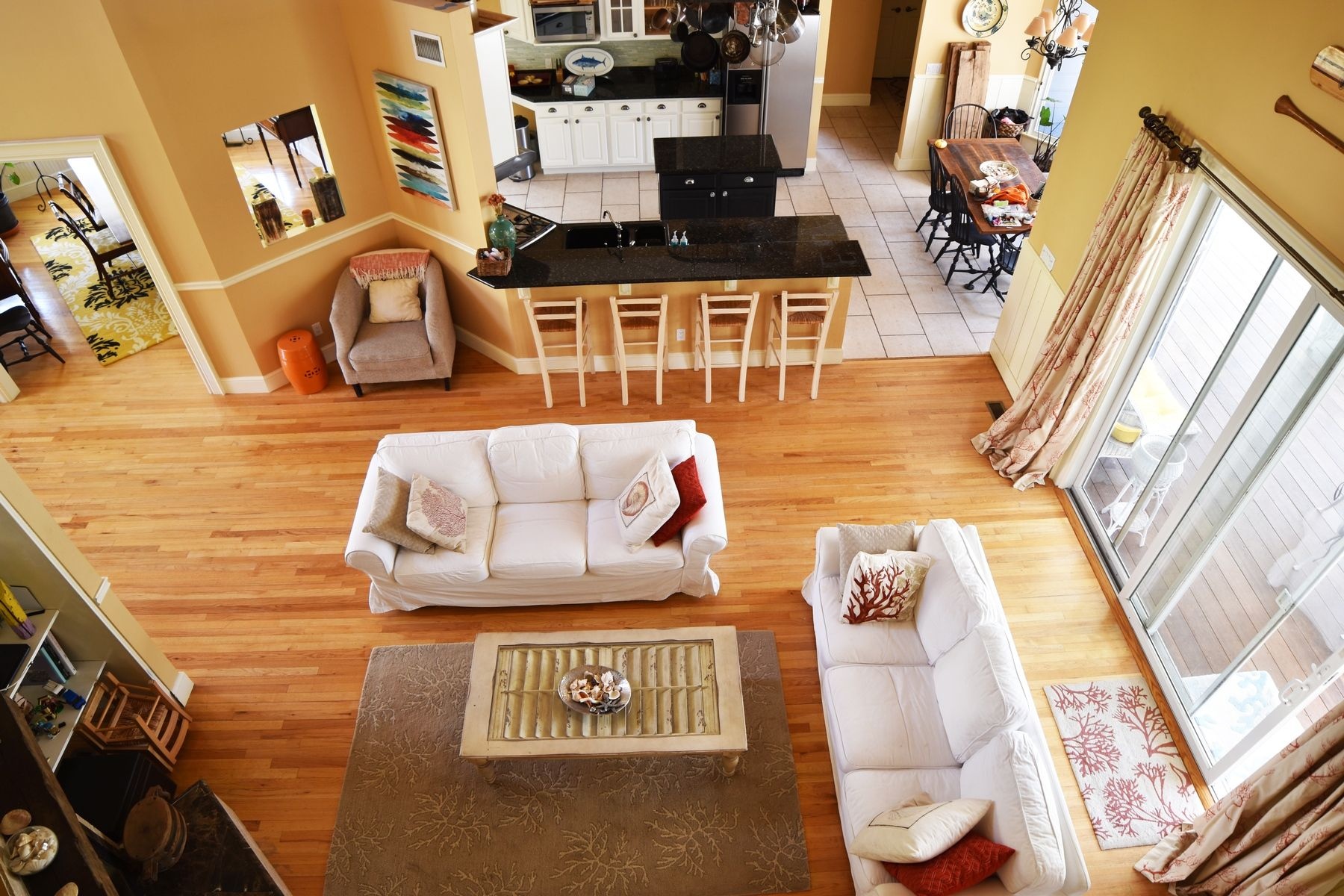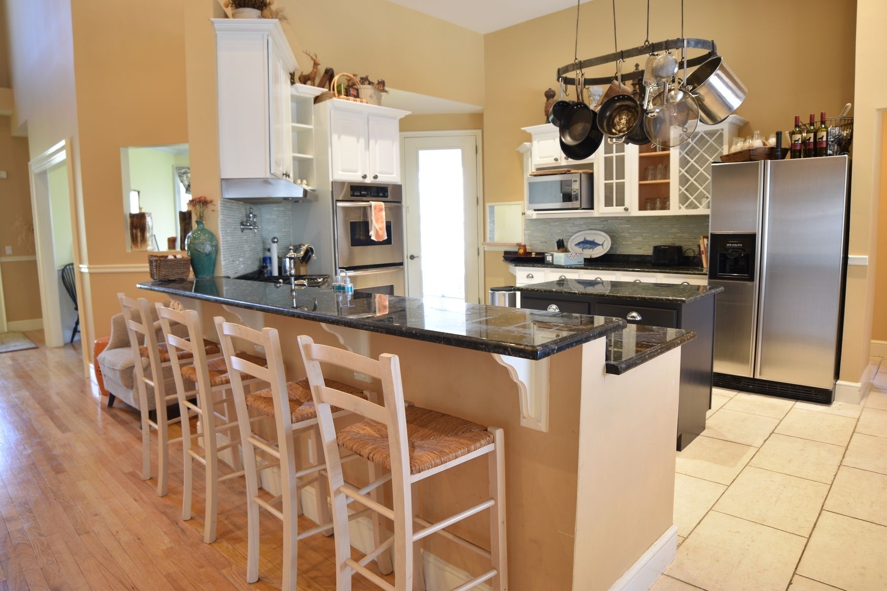 With 4 bedrooms and 3 baths(first floor master) open living room, eat in kitchen, covered porch, formal dining room, heated pool, outside cooking area with BBQ and pizza oven, and outside shower. Very private and acess to beach close by.